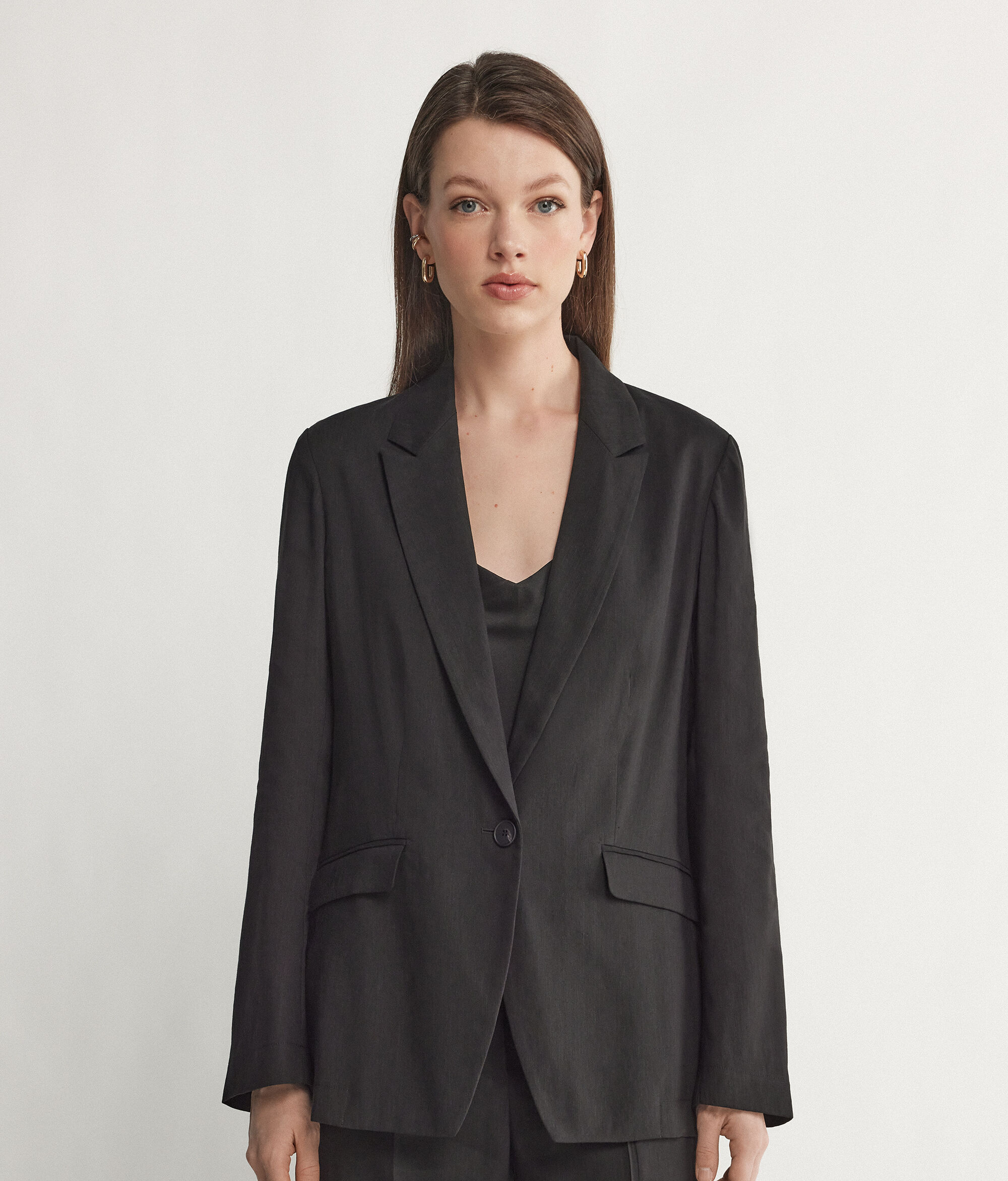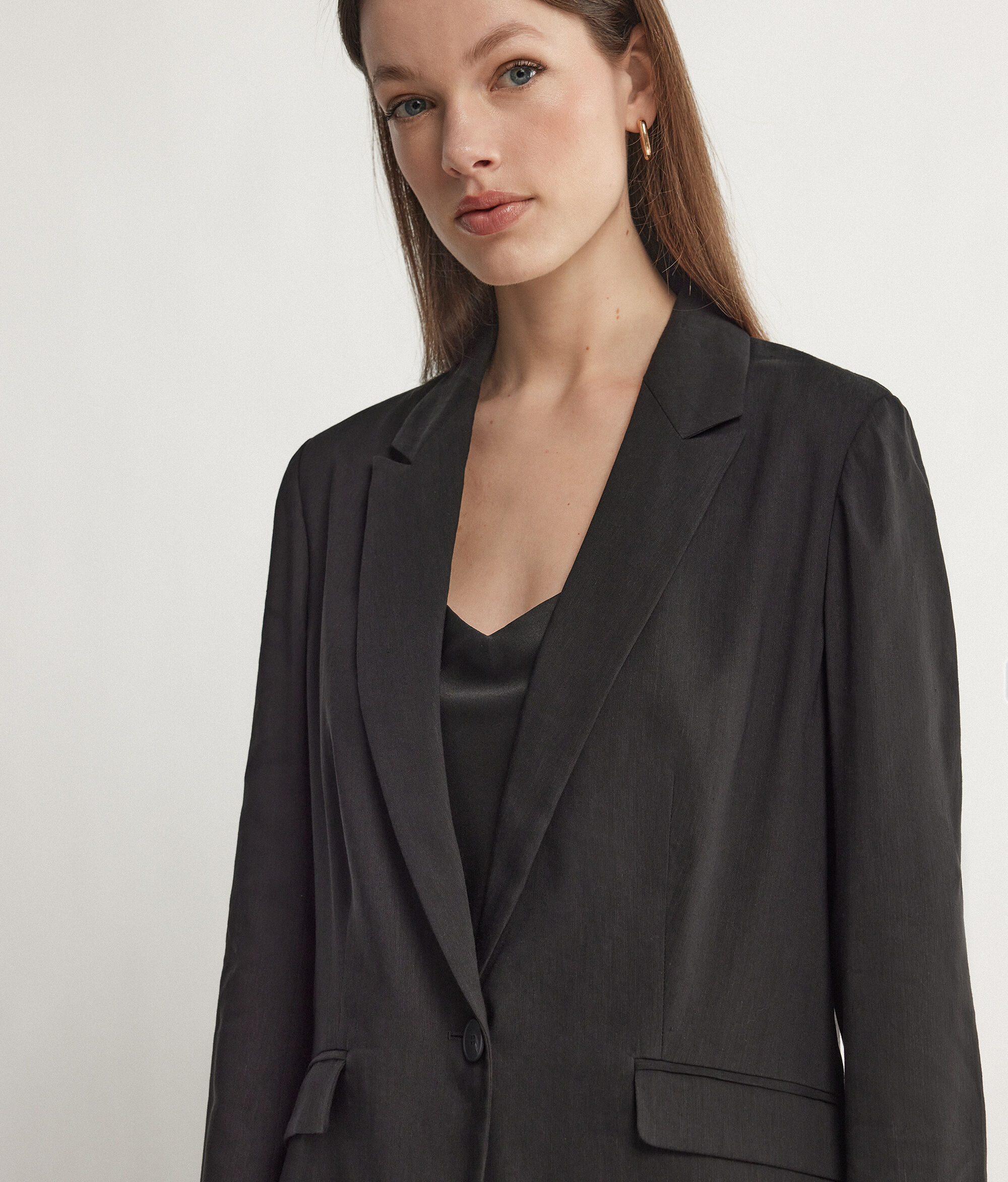 Einreihiger Blazer aus Leinen und Viskose