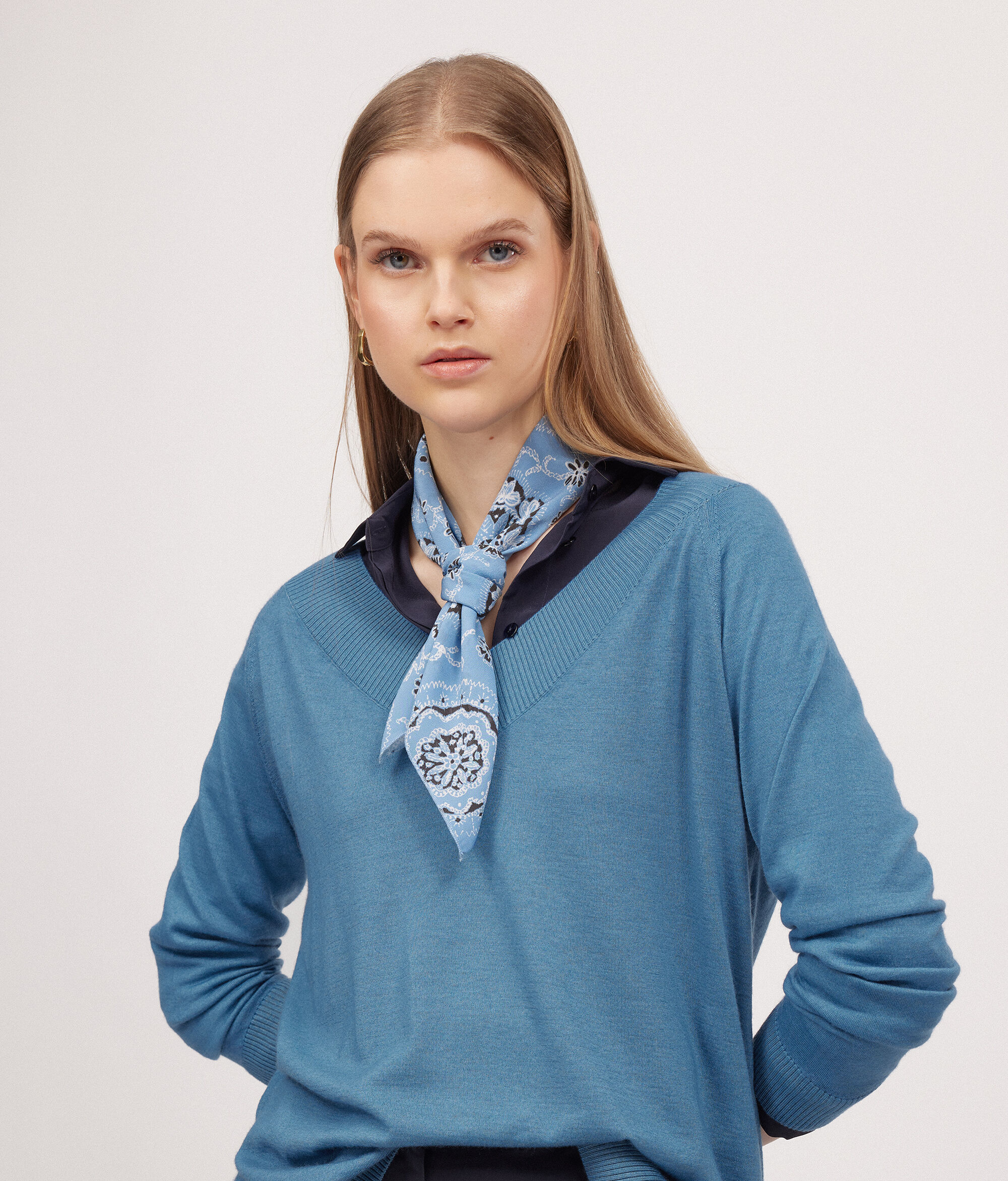Entdecken Sie das Falconeri-Tuch aus reiner bedruckter Seide. Das anschmiegsame farbige Accessoire wird Ihre Frühlings-Outfits gekonnt abrunden.