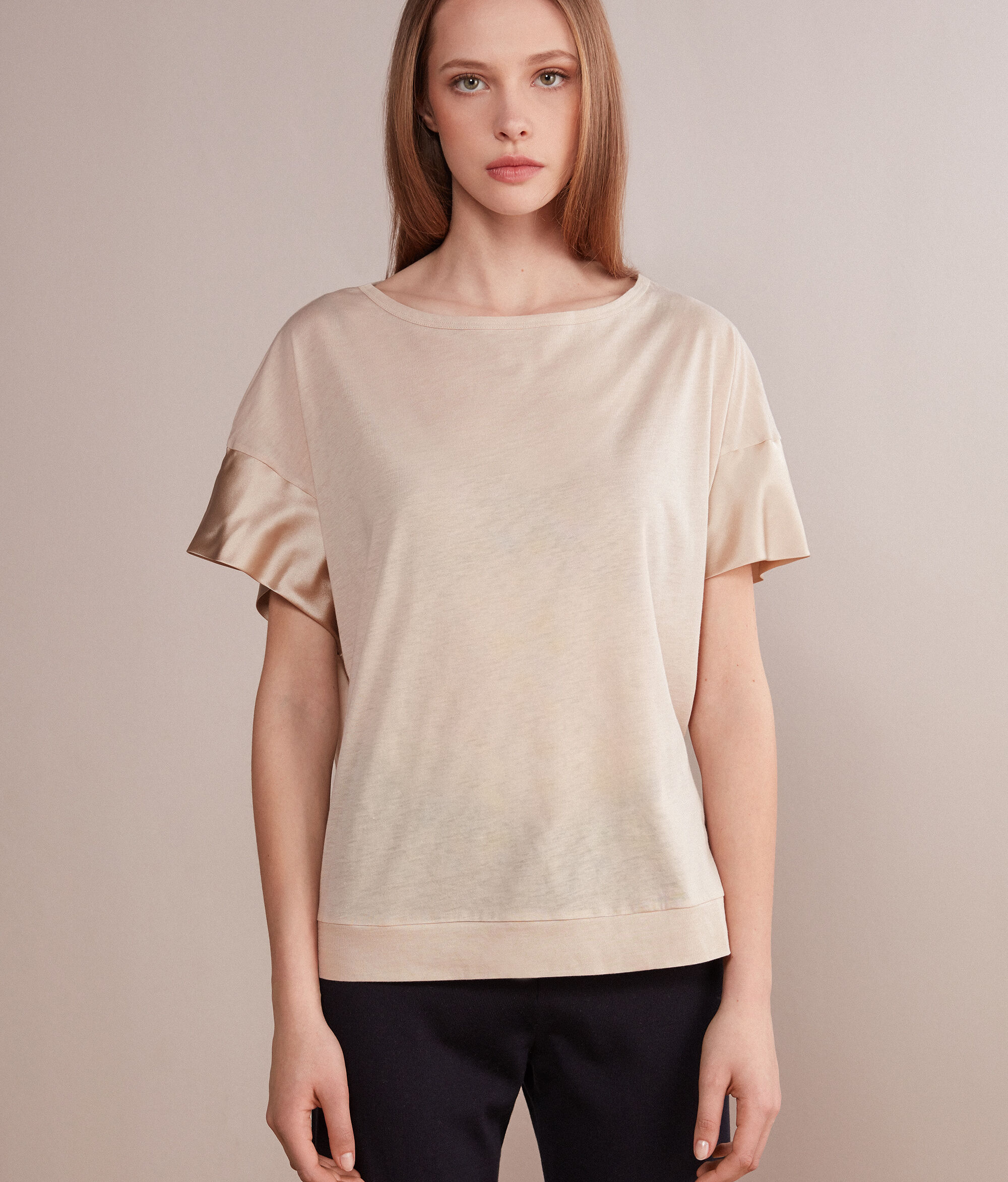 T-Shirt aus Fresh Seide mit Satinärmeln
