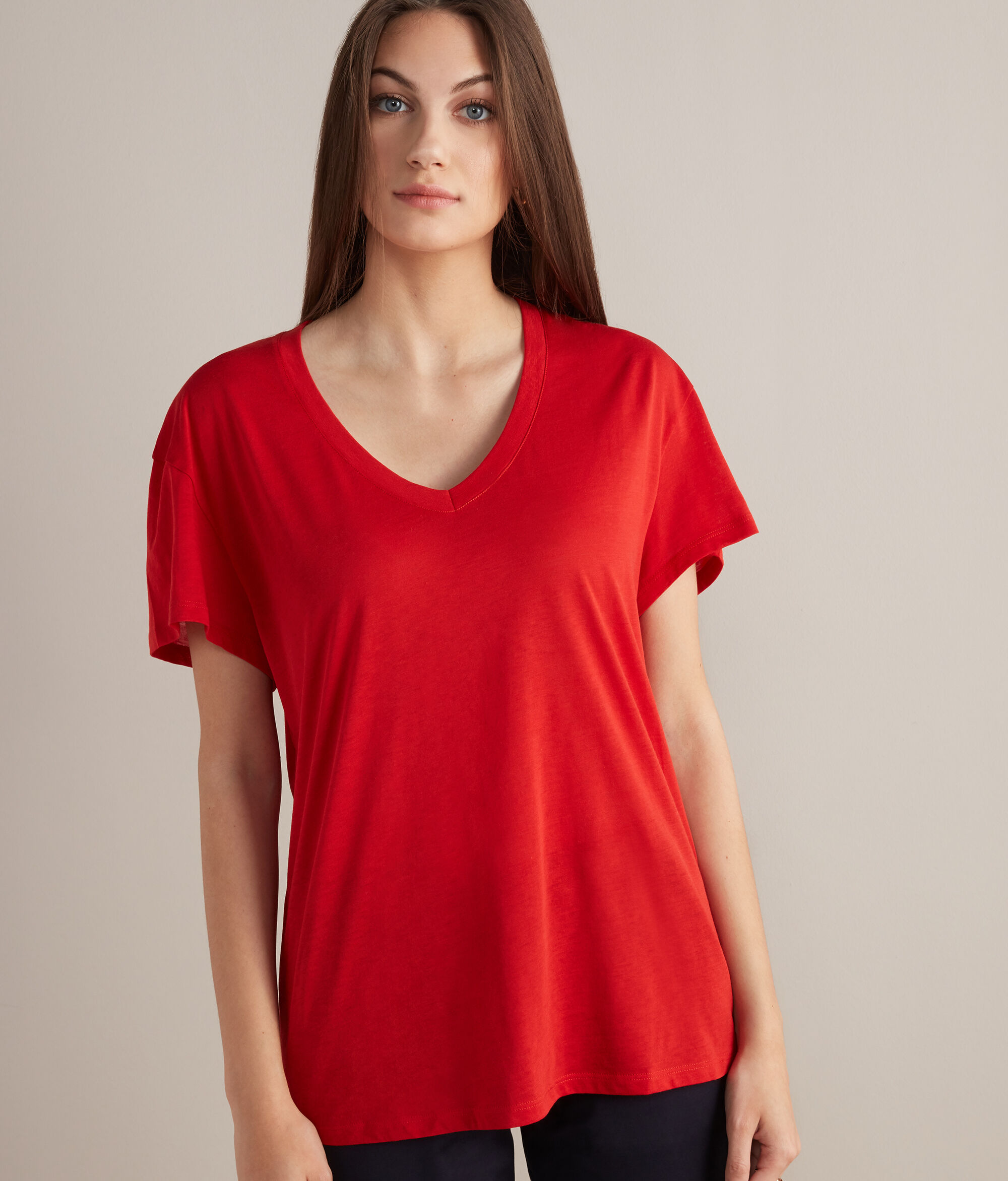 T-Shirt mit V-Ausschnitt aus Fresh Seide