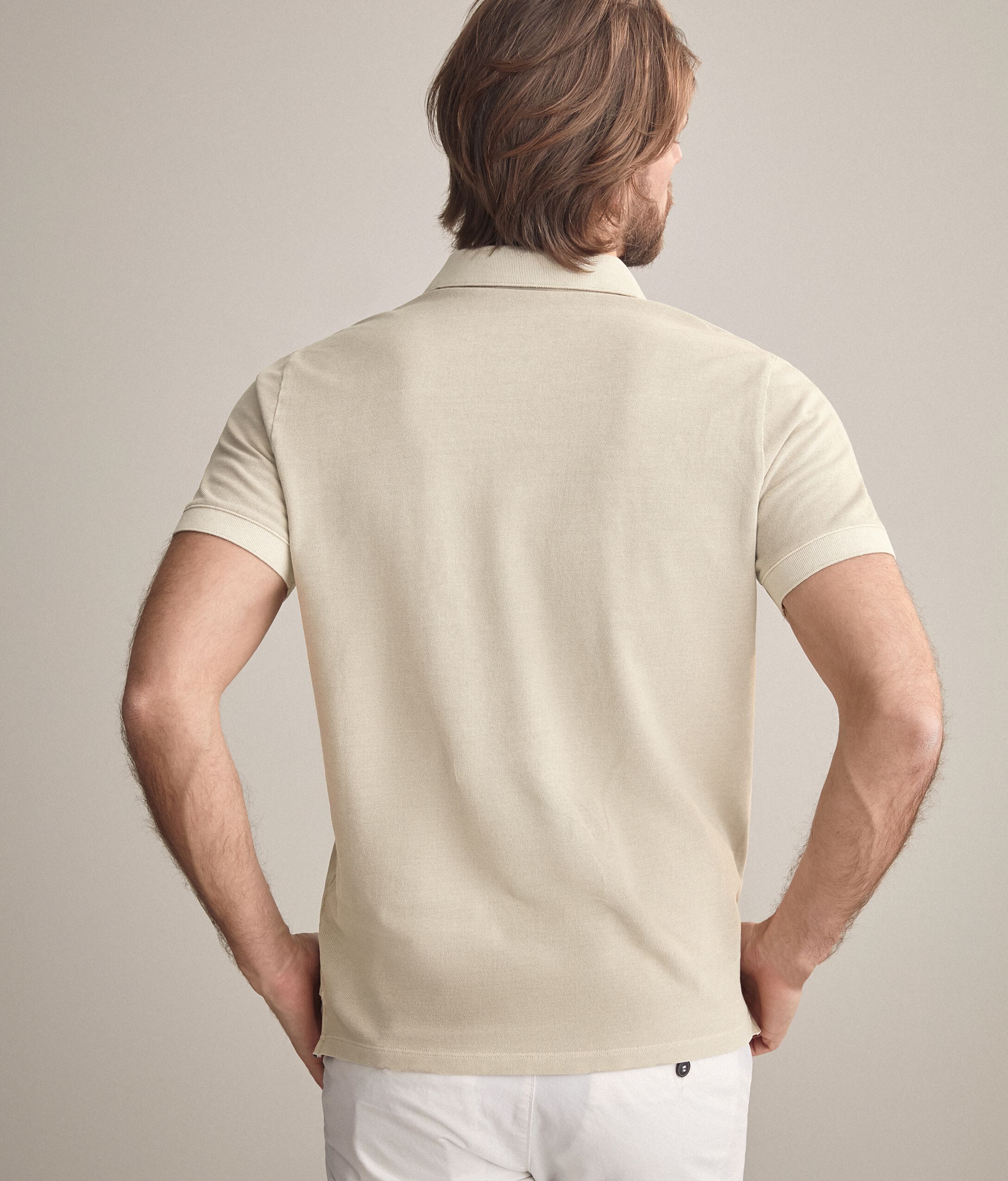 The sporty feel of the short-sleeved pure cotton piqué polo shirt combines with the marbled effect of the garment-dyed fabric. Stylish details that make a versatile and timeless piece unique. This cool fabric was made for summer. Regular fit and a pleasure to wear. Classic collar with three buttons. Model is 184 cm tall and wears a size 50 Chest: 98cm / Waist: 82cm / Hips: 99cm