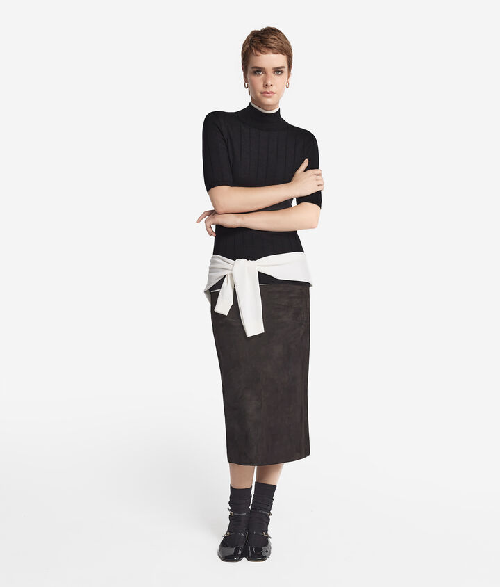 Breit gerippter Rollkragenpullover mit kurzen Ärmeln aus Kaschmir Ultrafine