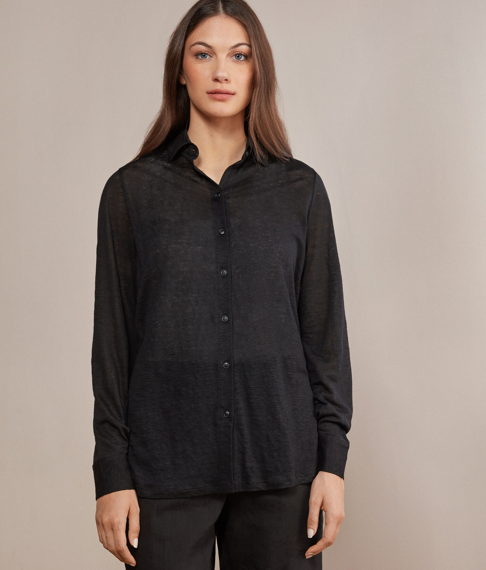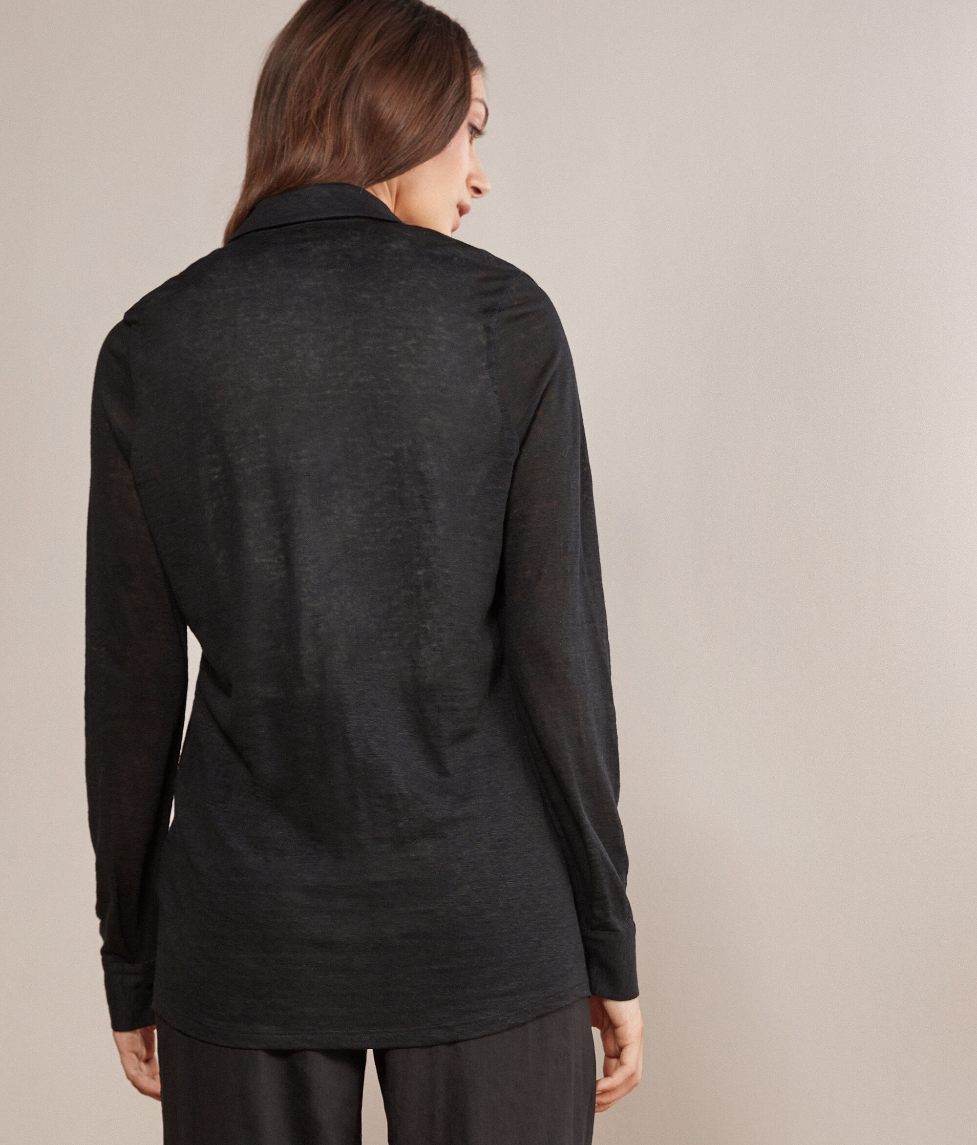 Von minimalen Formen bis hin zu klassischen Volumen zeigt die Bluse den typischen Stil für Frühling und Sommer. Das Couture-Design interpretiert den zeitlosen Stil auf moderne Weise neu, während die gekonnte Handwerkskunst durch die klaren, essentiellen Linien unterstrichen wird.
