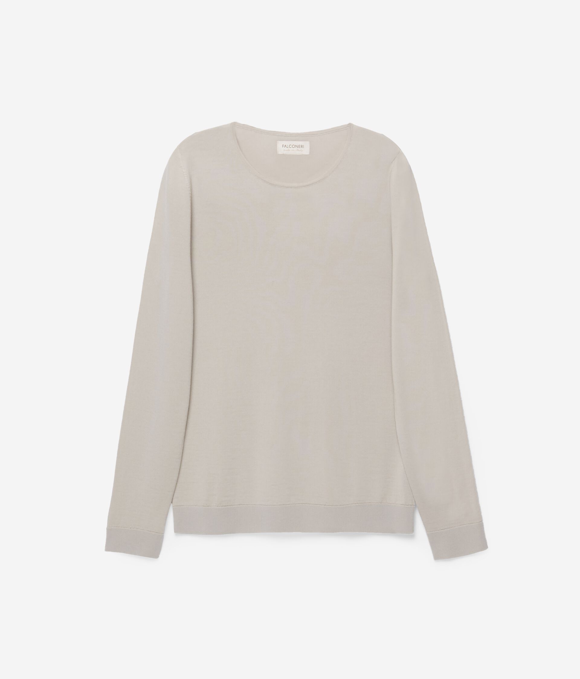 Rundhalspullover mit langen Ärmeln, komplett aus Merinowolle gearbeitet. Normale Passform.