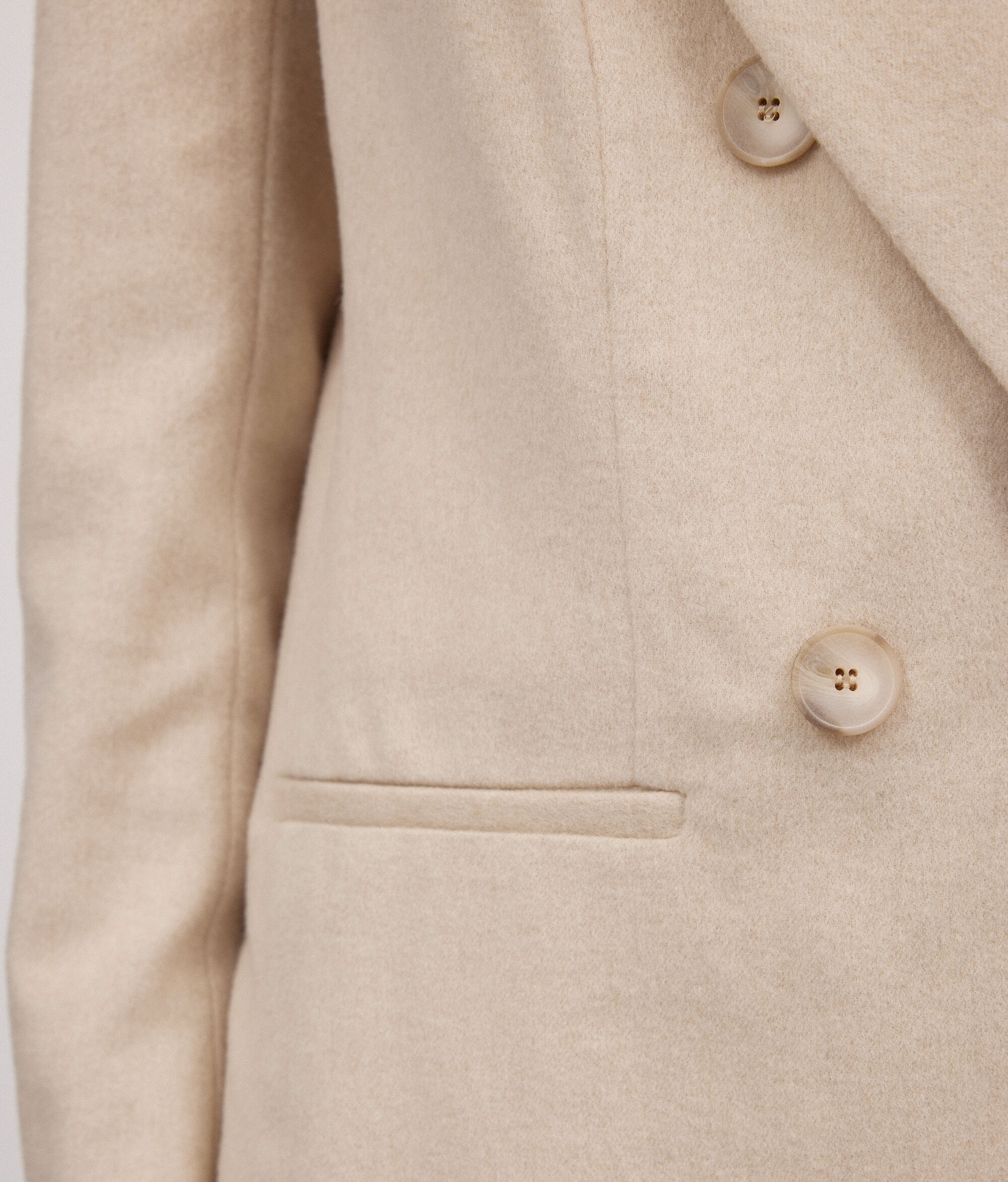 Die leichte, zweireihige Jacke aus Kaschmir hat einen Reverskragen, eine Knopfleiste und Leistentaschen. Schulterpartie, Länge und Passform sind normal.