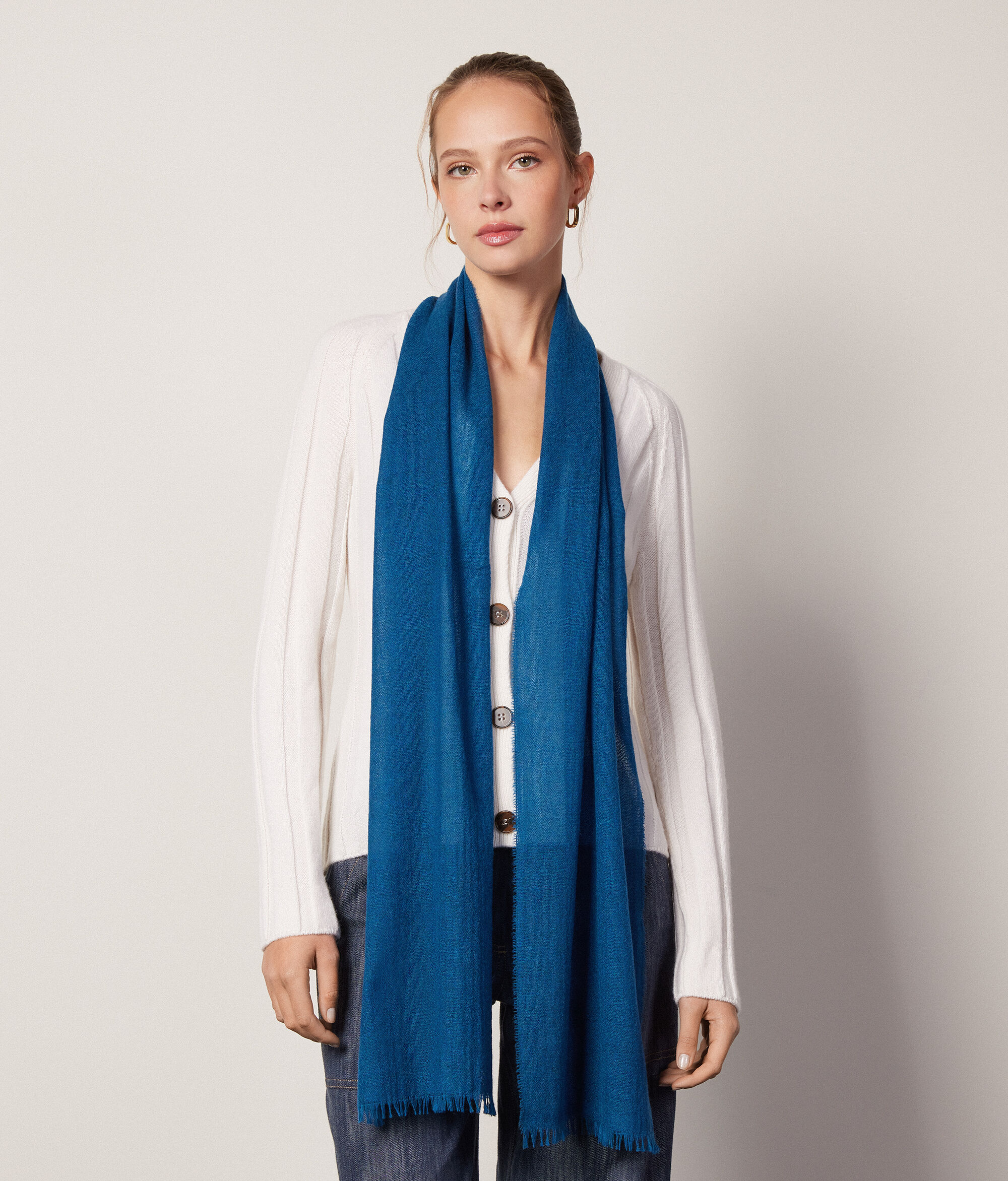 This warm and enveloping cashmere scarf pairs perfectly with our collection of outerwear.