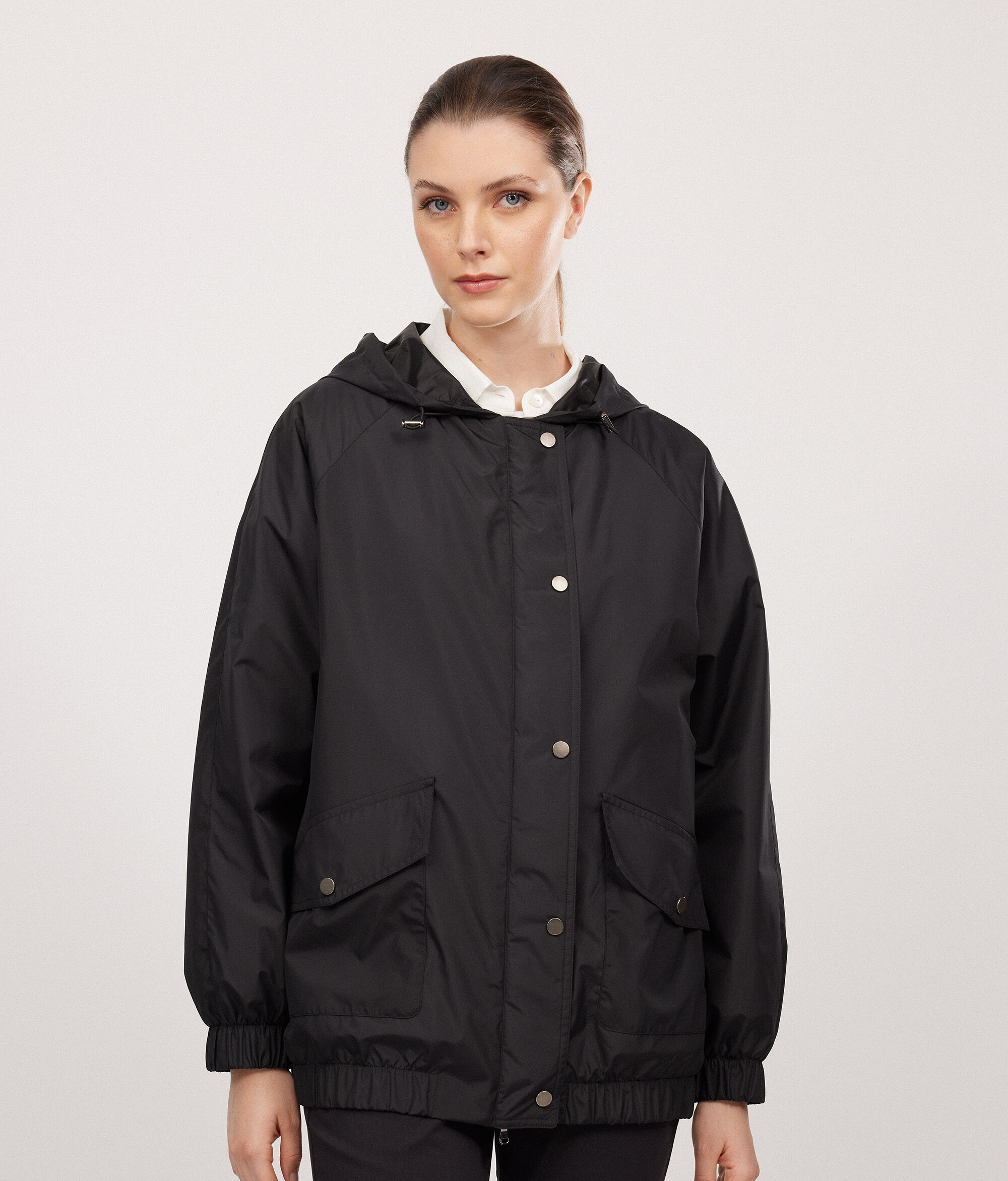 • Drawstring hood with cord lock