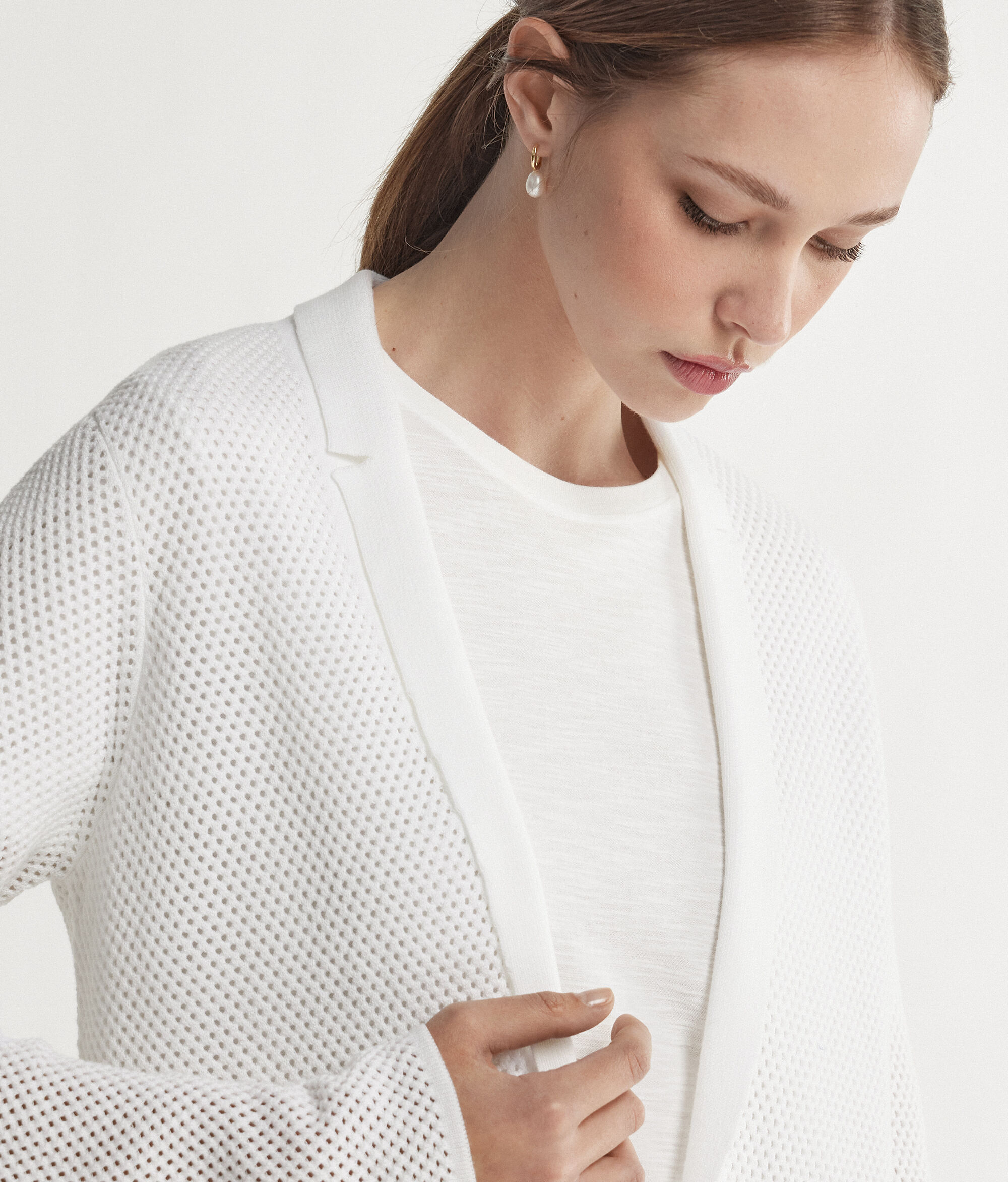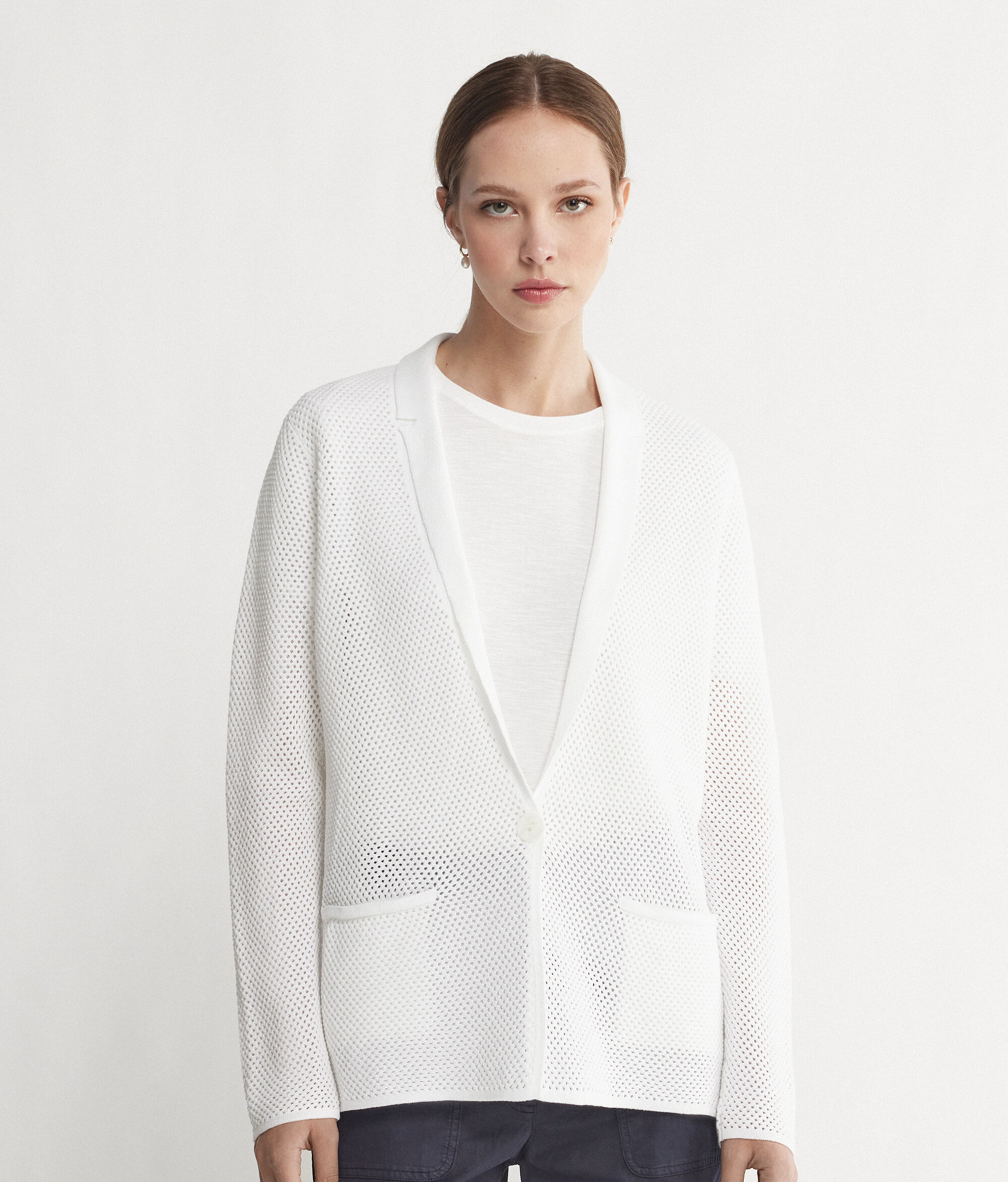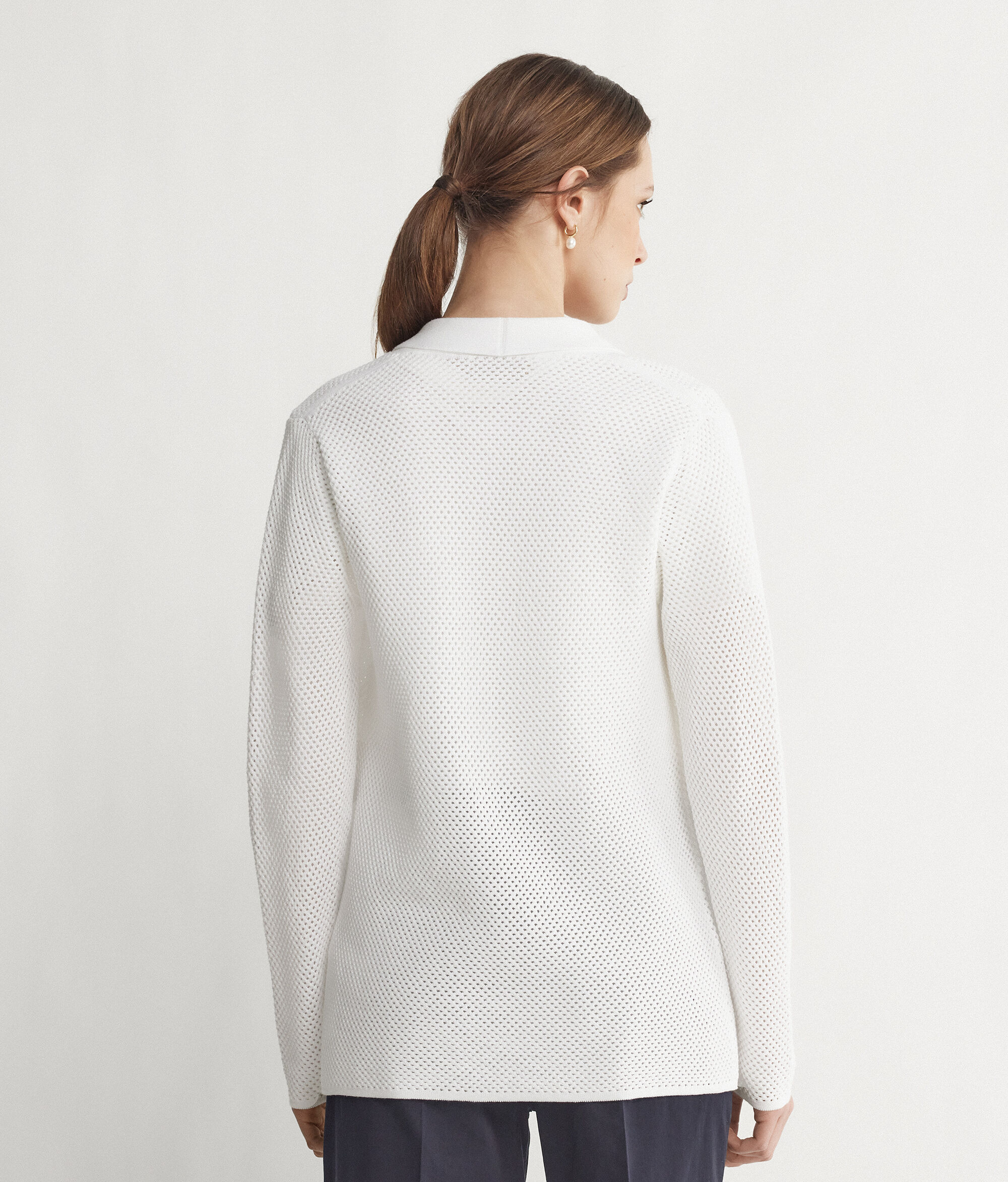 The crochet-knit jacket by Falconeri beautifully expresses the love and passion for details that has always characterised the brand. The central button closure and welt pockets make the garment practical and ideal for completing a flawless look!