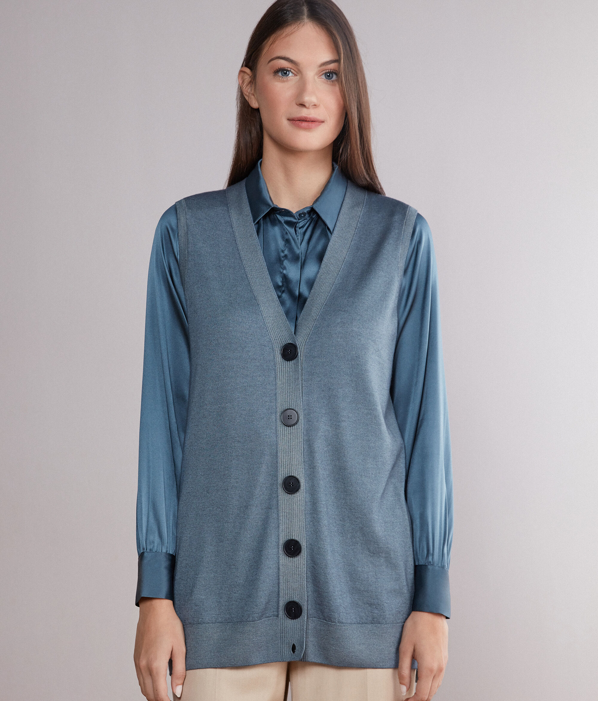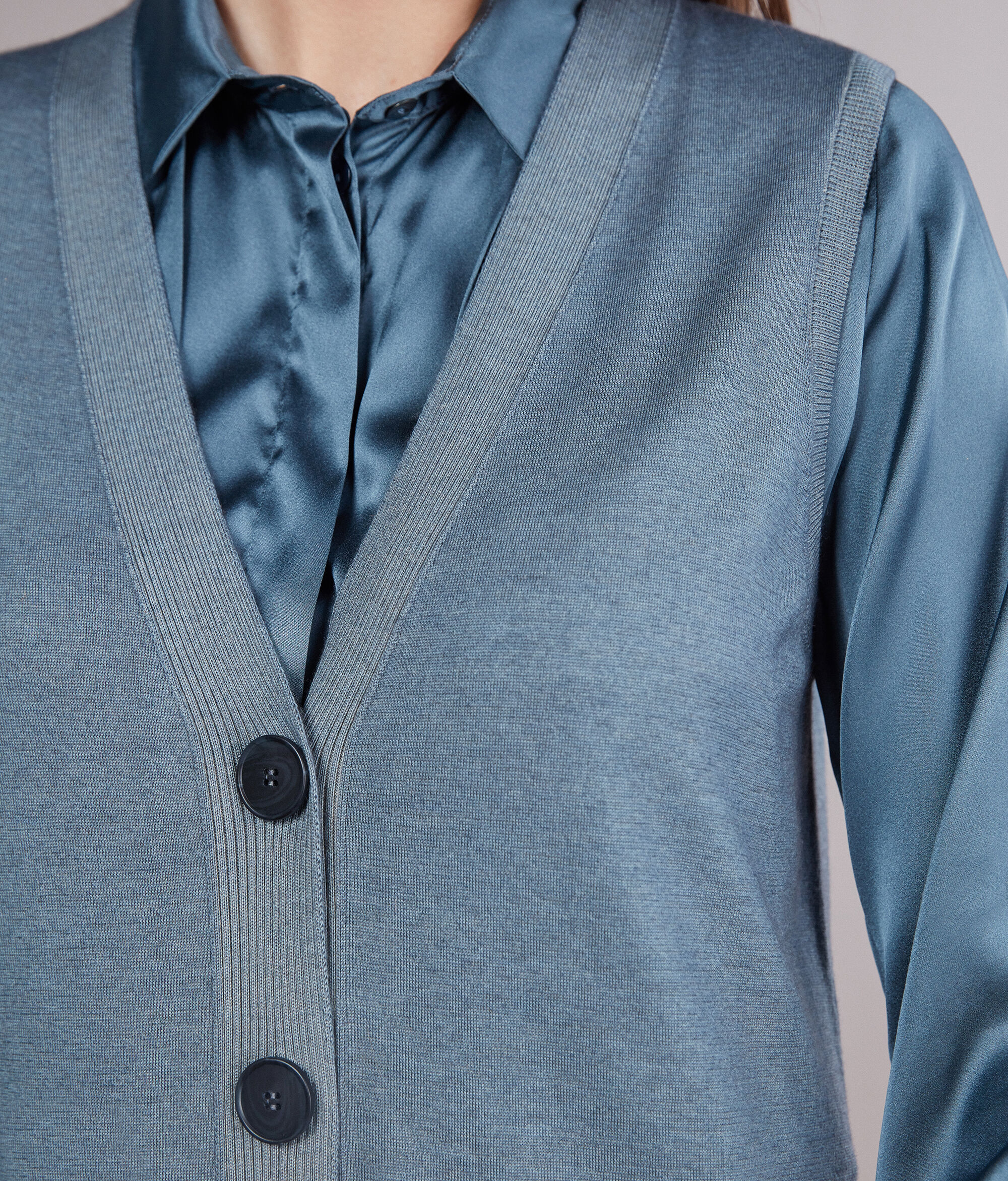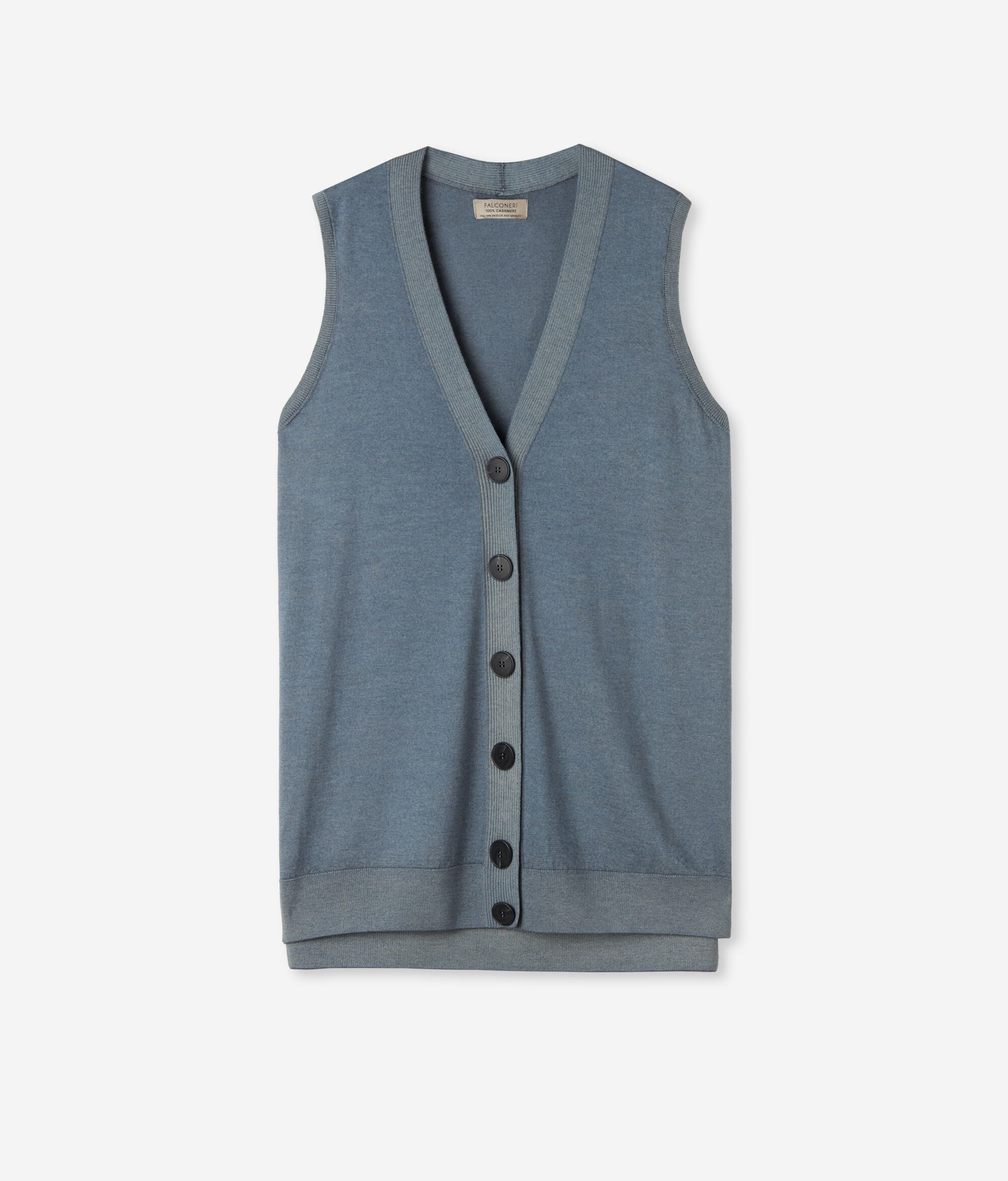 Le choix de matières emblématiques comme le pur cachemire ultra-léger ainsi que l'équilibre des formes et des volumes illustrent l'amour de la Maison pour les matières de qualité supérieure et les détails soignés. Le nouveau gilet signé Falconeri est une pièce indispensable à toute garde-robe féminine : en effet, loin d'être un simple complément d'habillement, il servira de base pour créer une tenue.