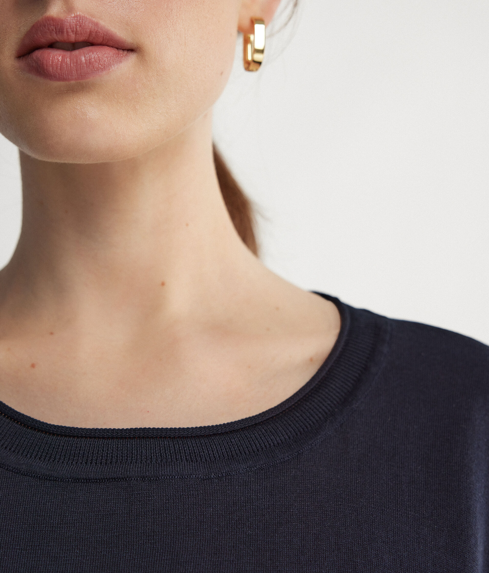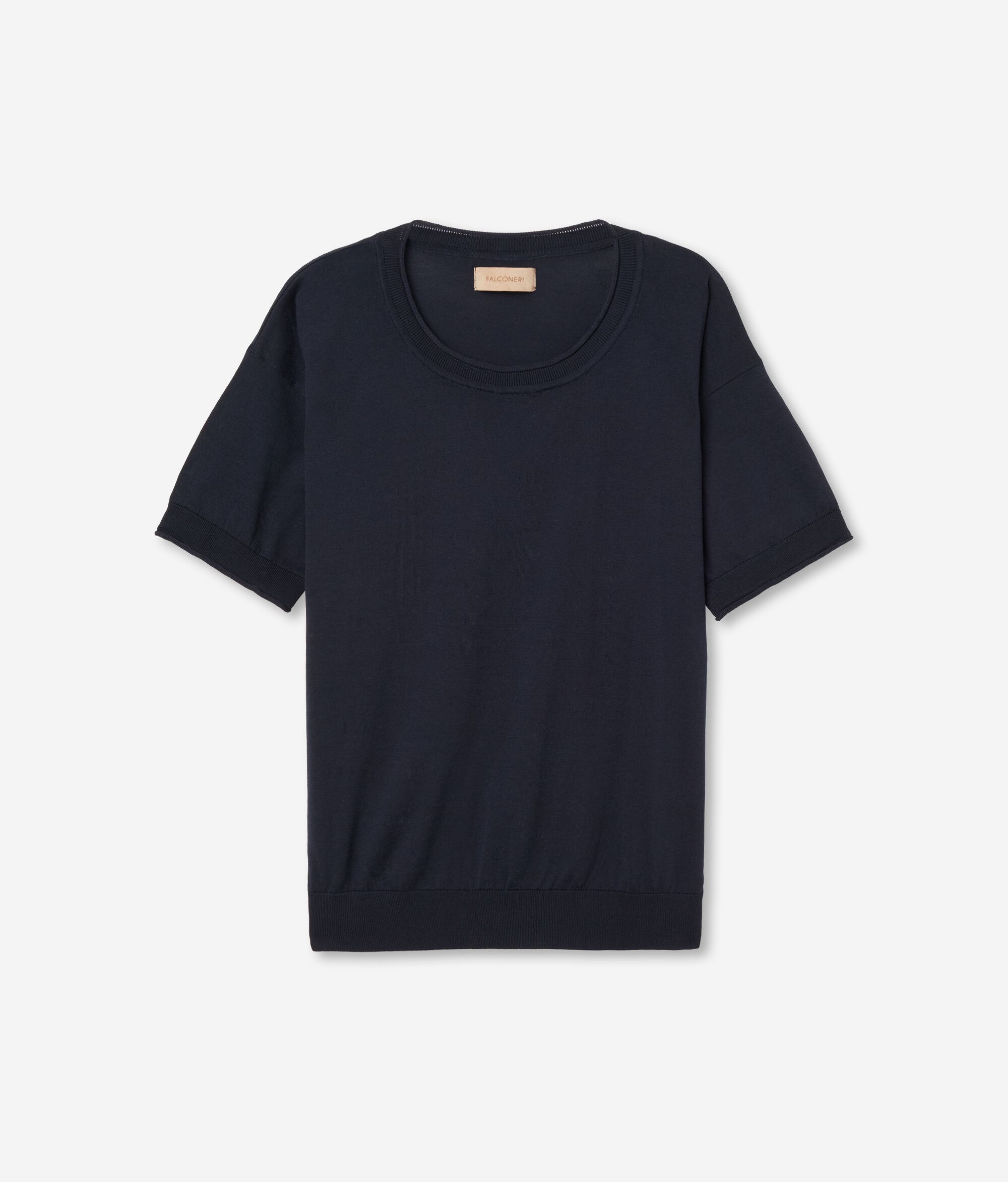 Pour les amatrices de style essentiel, Falconeri propose ce nouveau T-shirt à col rond et manches courtes. Ses lignes simples et épurées garantissent une polyvalence maximale, pour un vêtement indispensable à toute garde-robe féminine.