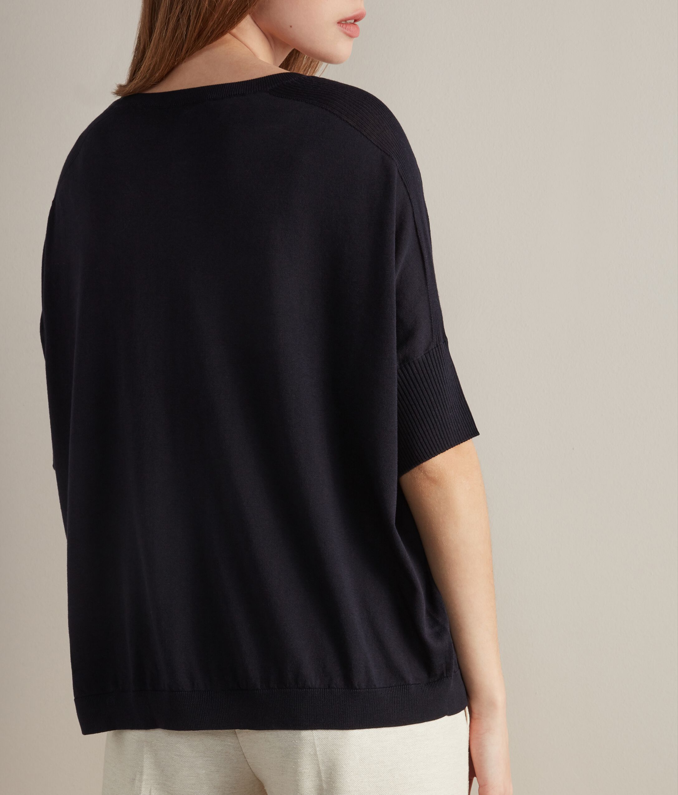Une matière soie et coton de qualité sublime les formes généreuses de ce maxi-pull aux lignes fluides et agréables. Sa polyvalence en fait une pièce unique et indispensable qui s'harmonisera avec tout type de tenue.