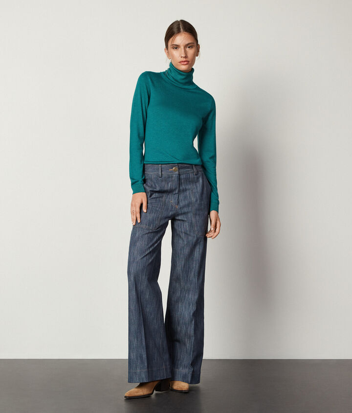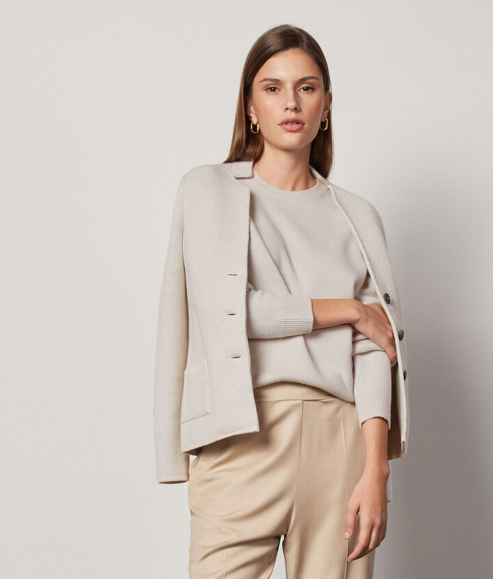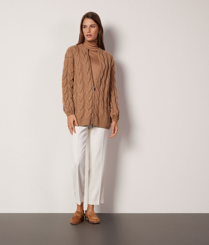 Μάξι Ζακέτα από Ultrasoft Cashmere με Σχέδιο Πλεξίδες, Φερμουάρ και Στρογγυλή Λαιμόκοψη