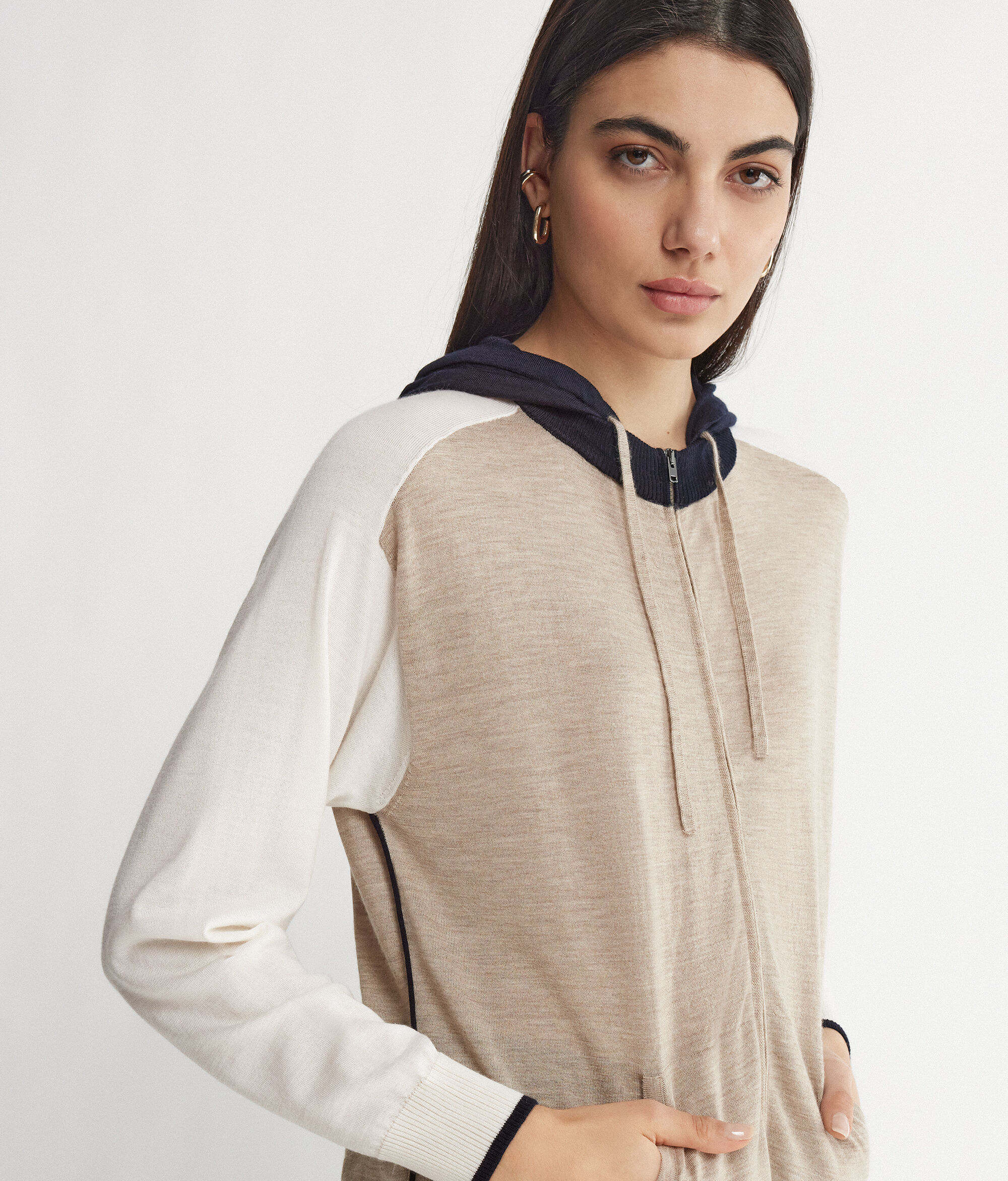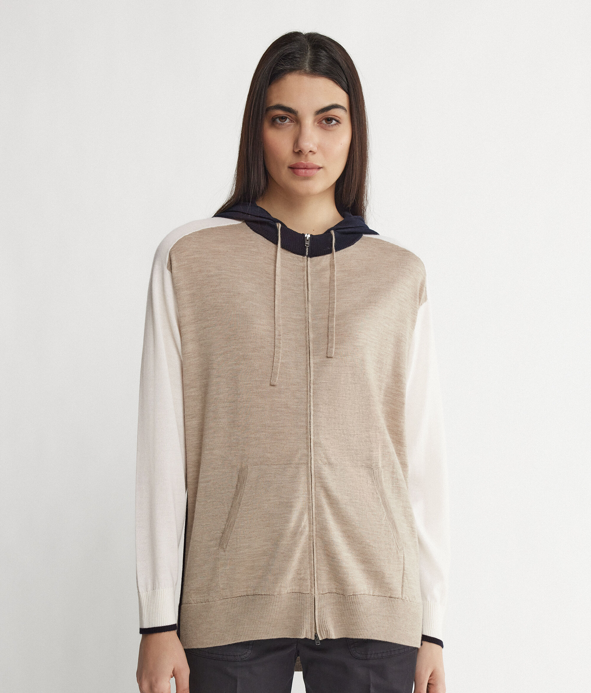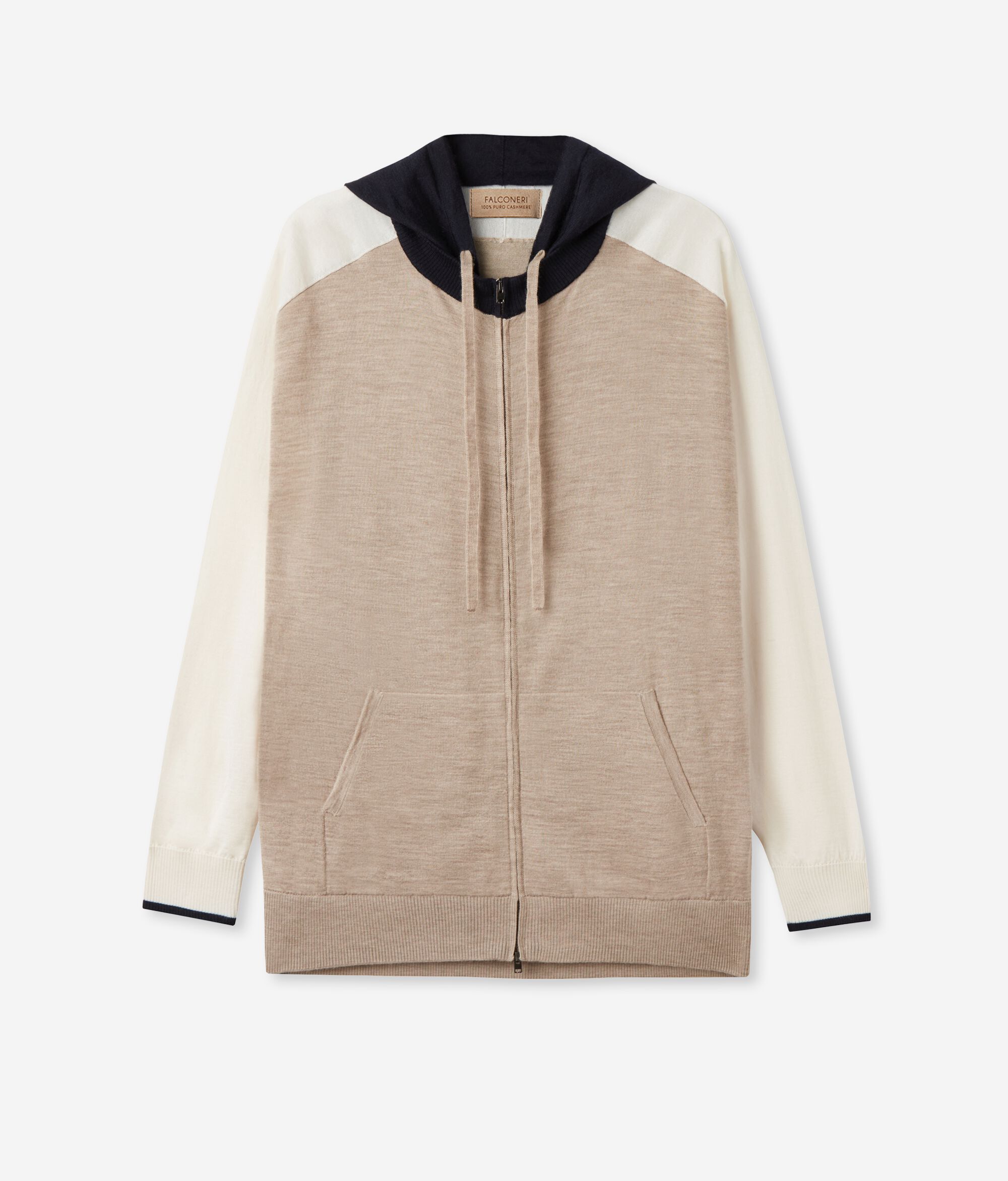 The luxury and fineness of the cashmere come together with the informal feel of this Falconeri colour-block sweatshirt. Perfect for relaxation time, it is made even more practical with the central zip fastening and the two large pockets on the front.