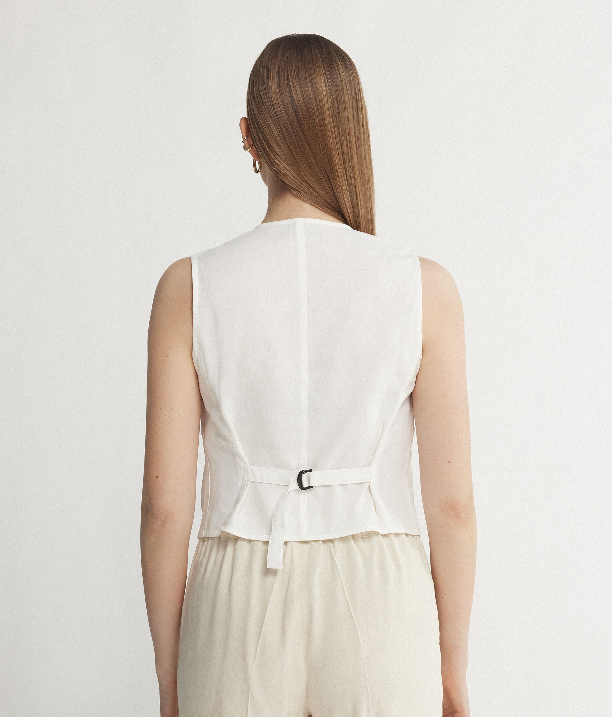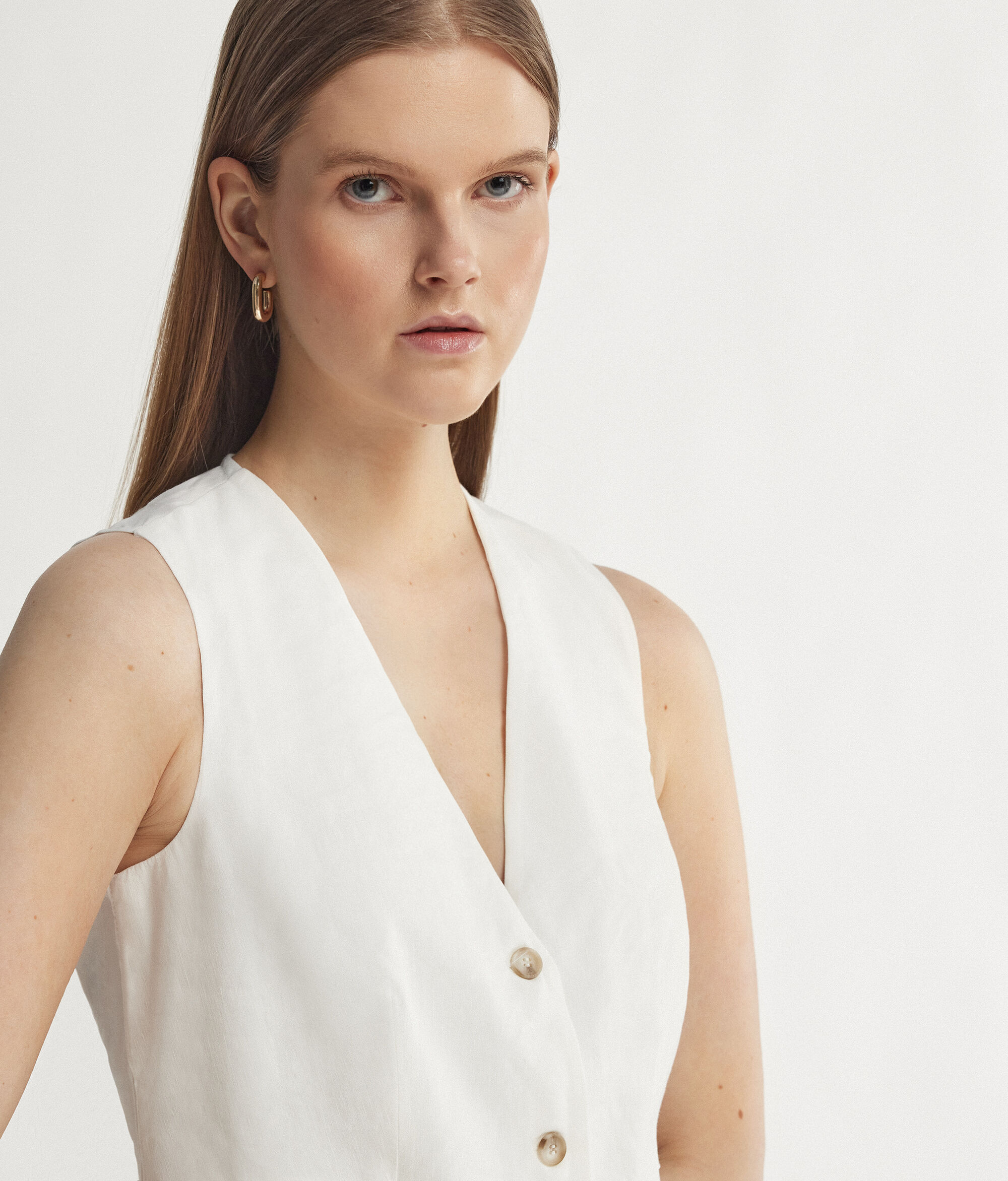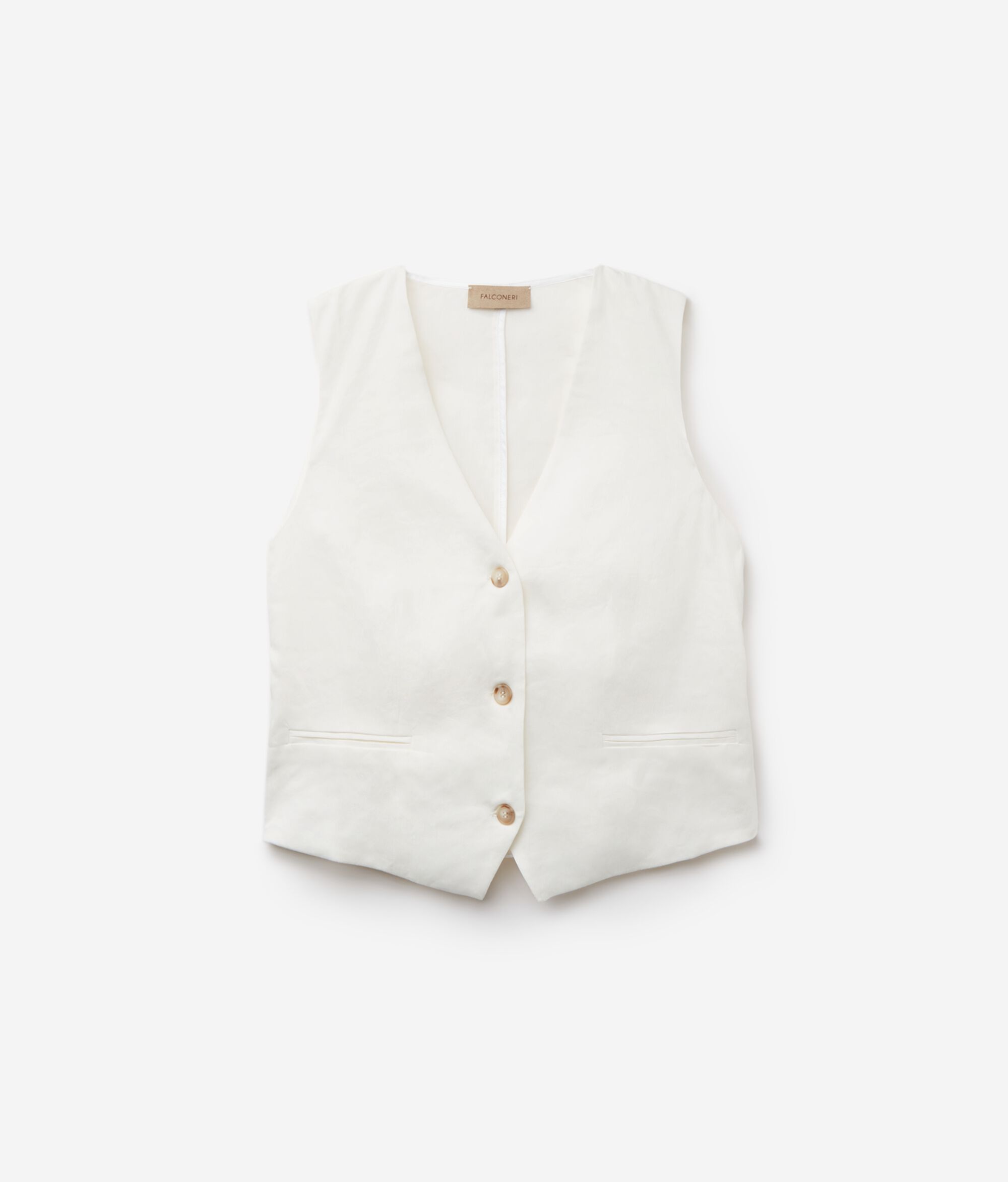 The waistcoat is undoubtedly an iconic garment ideal for wearing mid-season. This Falconeri V-neck offering is embellished with an adjustable strap at the back and a visible button closure at the front. A tailored design perfect for wearing with a T-shirt or shirt.
