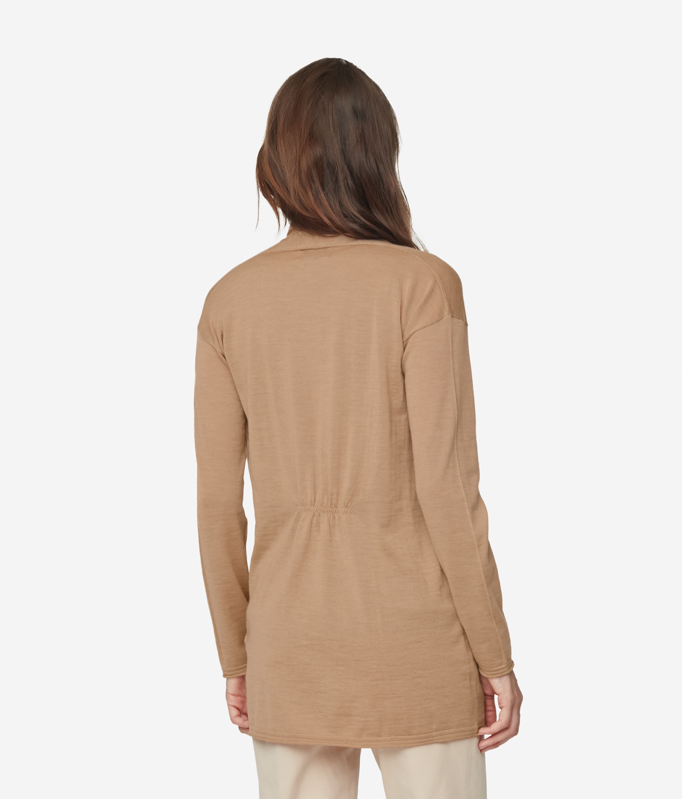 Long-sleeve long open cardigan in 100% Ultrafine Cashmere with a shawl-collar and seamless construction. The sleeves feature a tubular-design decoration and the back is gathered for a more comfortable fit. Please note that this item is fitted, we advise purchasing a larger size. Model is 179 cm and wears a size M Chest: 88 cm / Waist: 67 cm / Hips: 94 cm