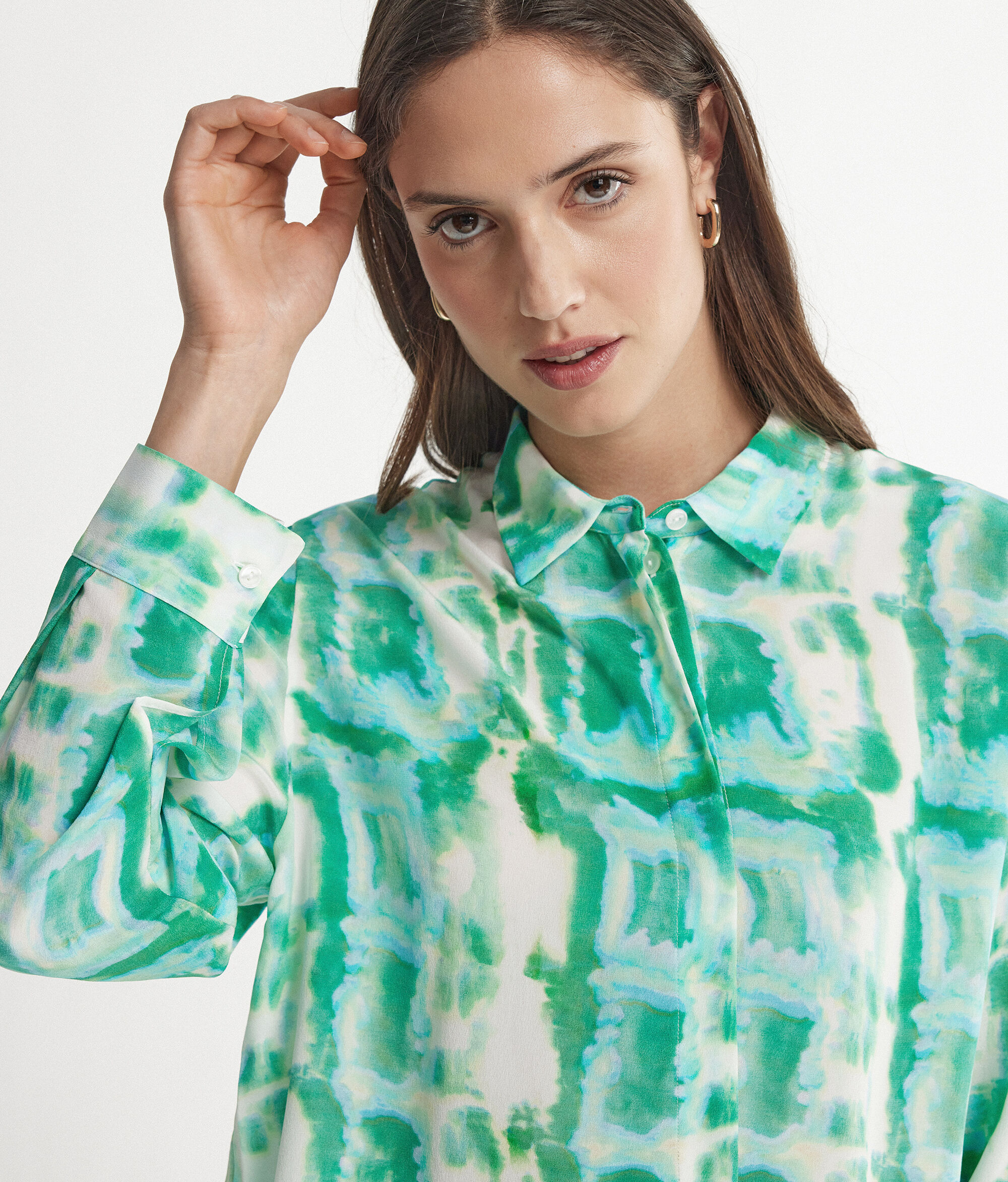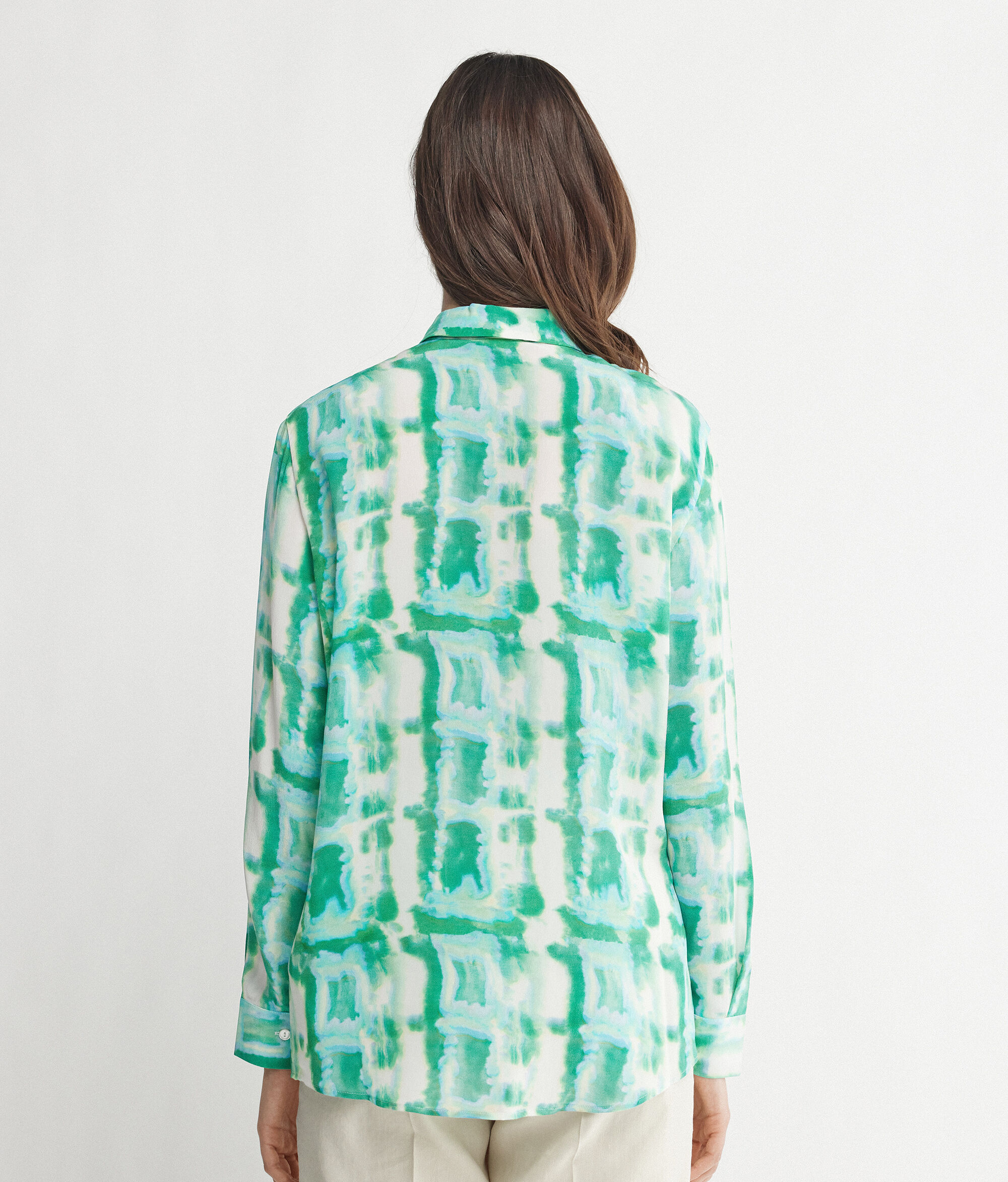 The luxury of silk adds an iconic and precious touch to the refined feel of this printed shirt. The tailored details enrich the garment, affording it a touch of femininity. The regular lines of the shoulders and the ethereal volumes pair with the cool and smooth touch of the silk, making it a pleasant fit.