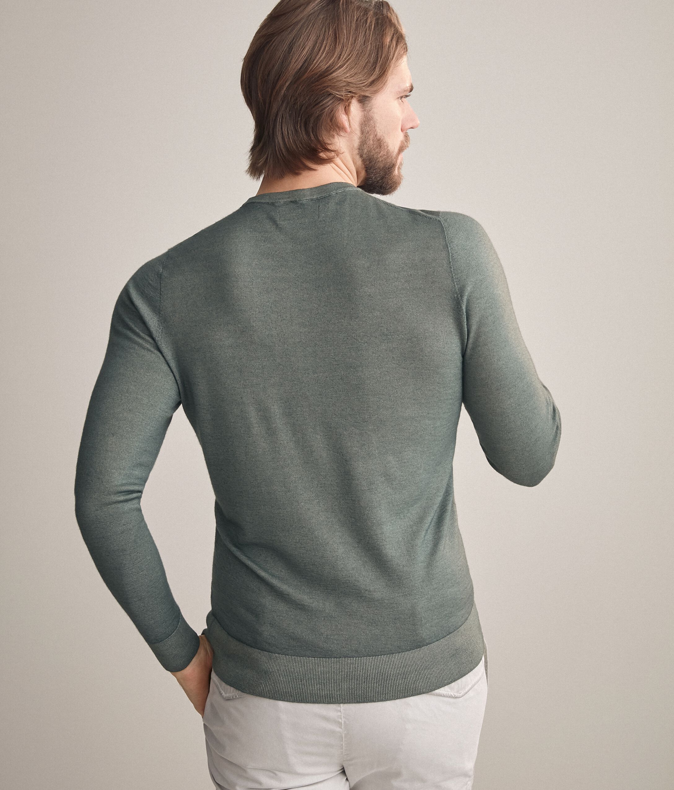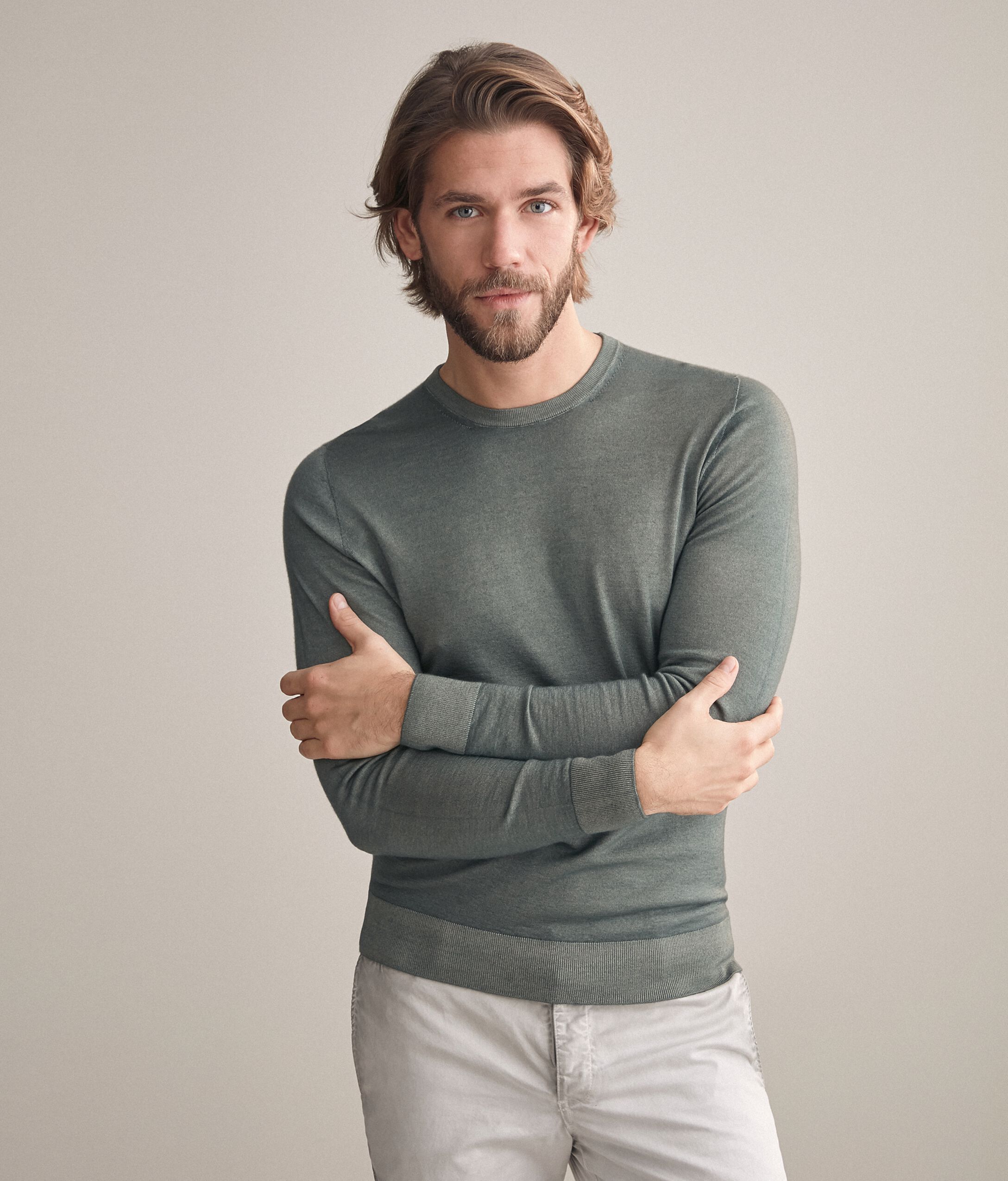 Crew neck sweater in 100% Ultrafine Cashmere. Ultrafine Cashmere, the iconic Falconeri yarn, enhances the simple style of this piece. The particular garment-dyed color gives this luxurious knit a marbled-effect. Regular fit, more fitted across the chest. Model is 184 cm and wears a size Large Chest: 98 cm / Waist: 82 cm / Hips: 99 cm