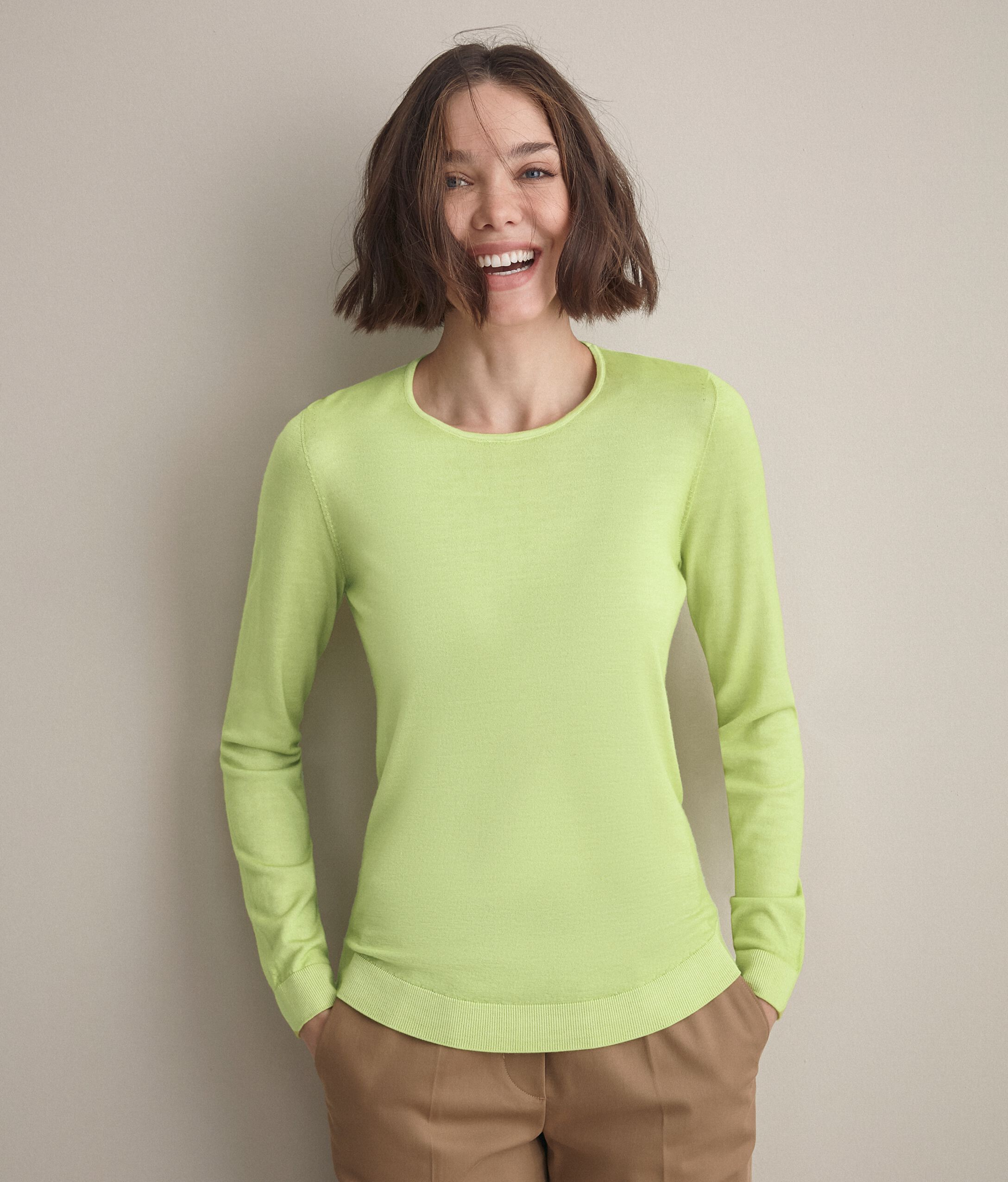 Ultrafine Cashmere crewneck sweater with a slightly-rounded hemline. A classic item that would be perfect under a jacket. Regular fit. Model is 179 cm and wears a size M Chest: 88 cm / Waist: 67 cm / Hips: 94 cm