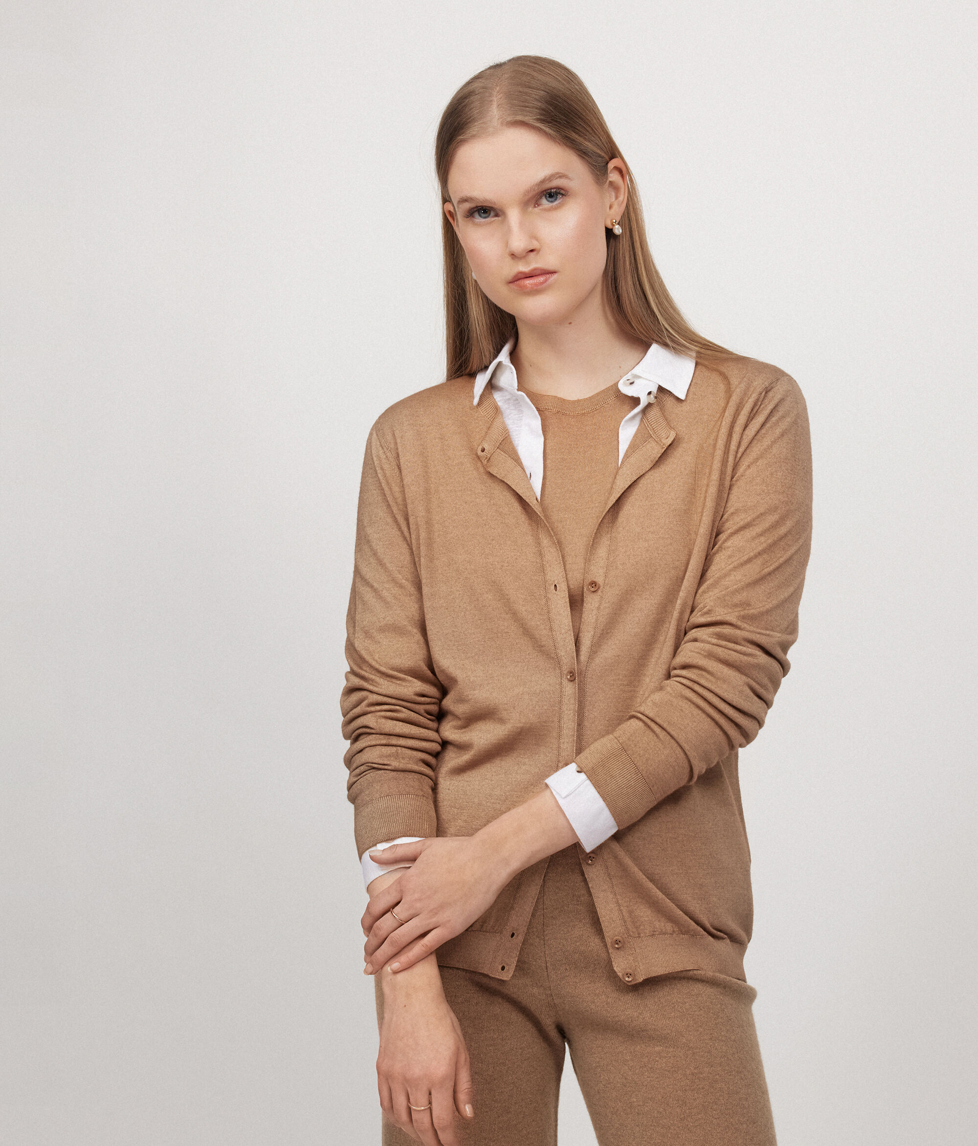 Sold outUltrasoft Cashmere Buttoned Cardigan€249.00Select your colorIce MelangeDark Grey MelangeBlue Smoke+ 5
