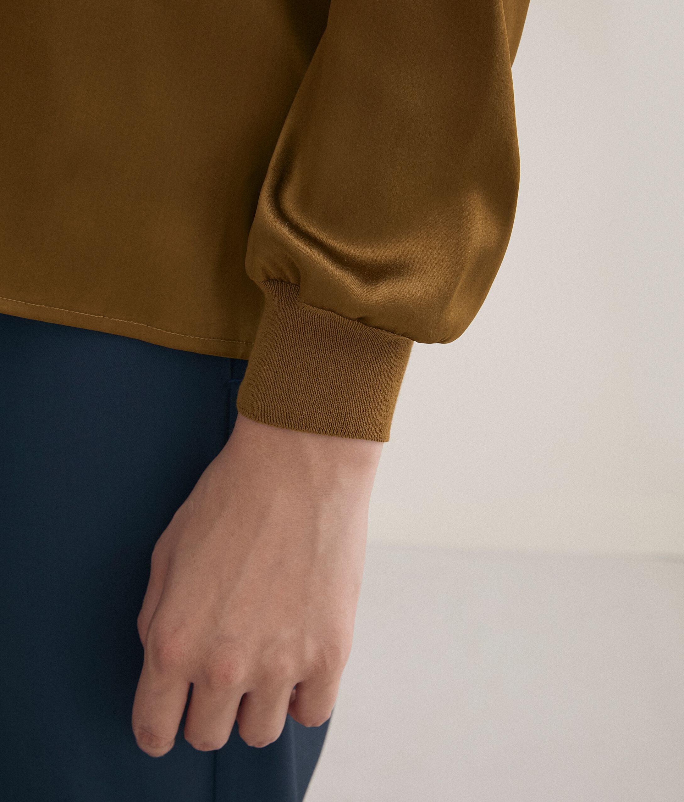 Μπλούζα με στρογγυλή λαιμόκοψη απο μετάξι σατέν. 'Εχει χαλαρή, άνετη εφαρμογή και μανσέτες από βαμβακερό ζέρσεϊ .