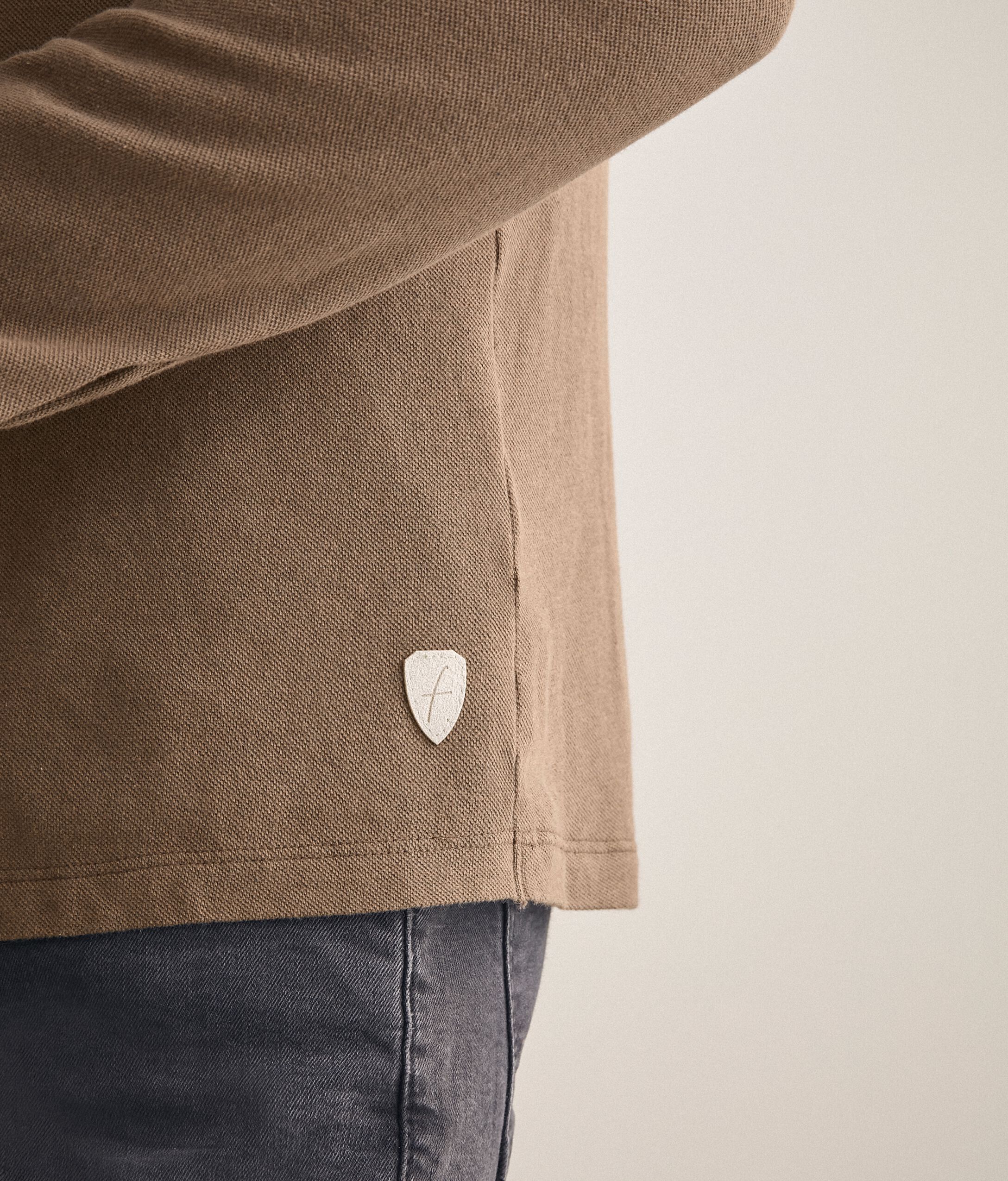 Πουκάμισο από βαμβάκι και μετάξι. Η πικέ υφή και το μείγμα λεπτού βαμβακιού και μεταξιού ενισχύουν την μαλακή του αίσθηση. Εχει κανονική εφαρμογή Το μοντέλο έχει ύψος 1,86 μ./ 73 ίντσες και φοράει μέγεθος 50 Στήθος: 98 εκ. / Μέση: 82 εκ. / Περιφέρεια: 99 εκ.