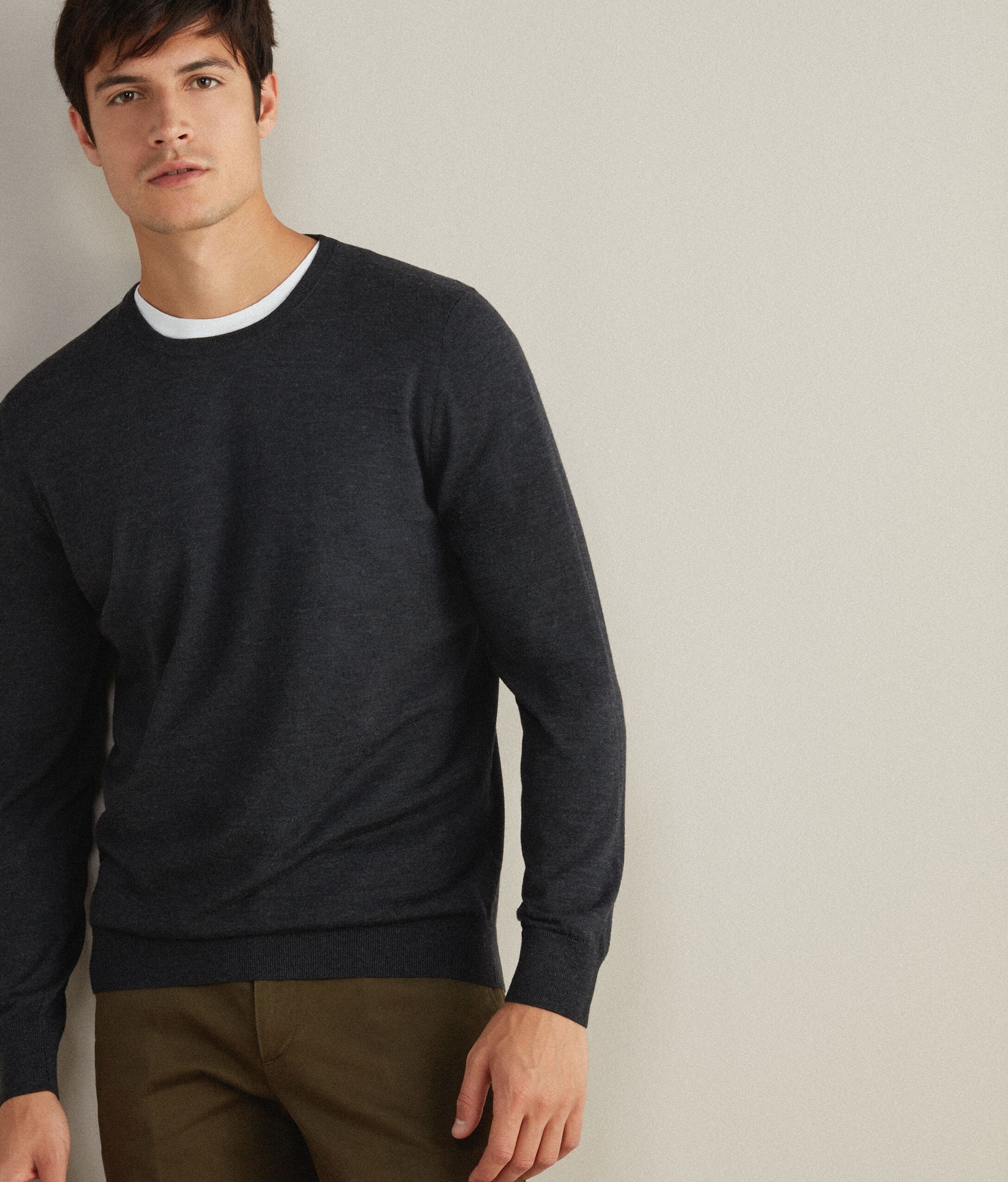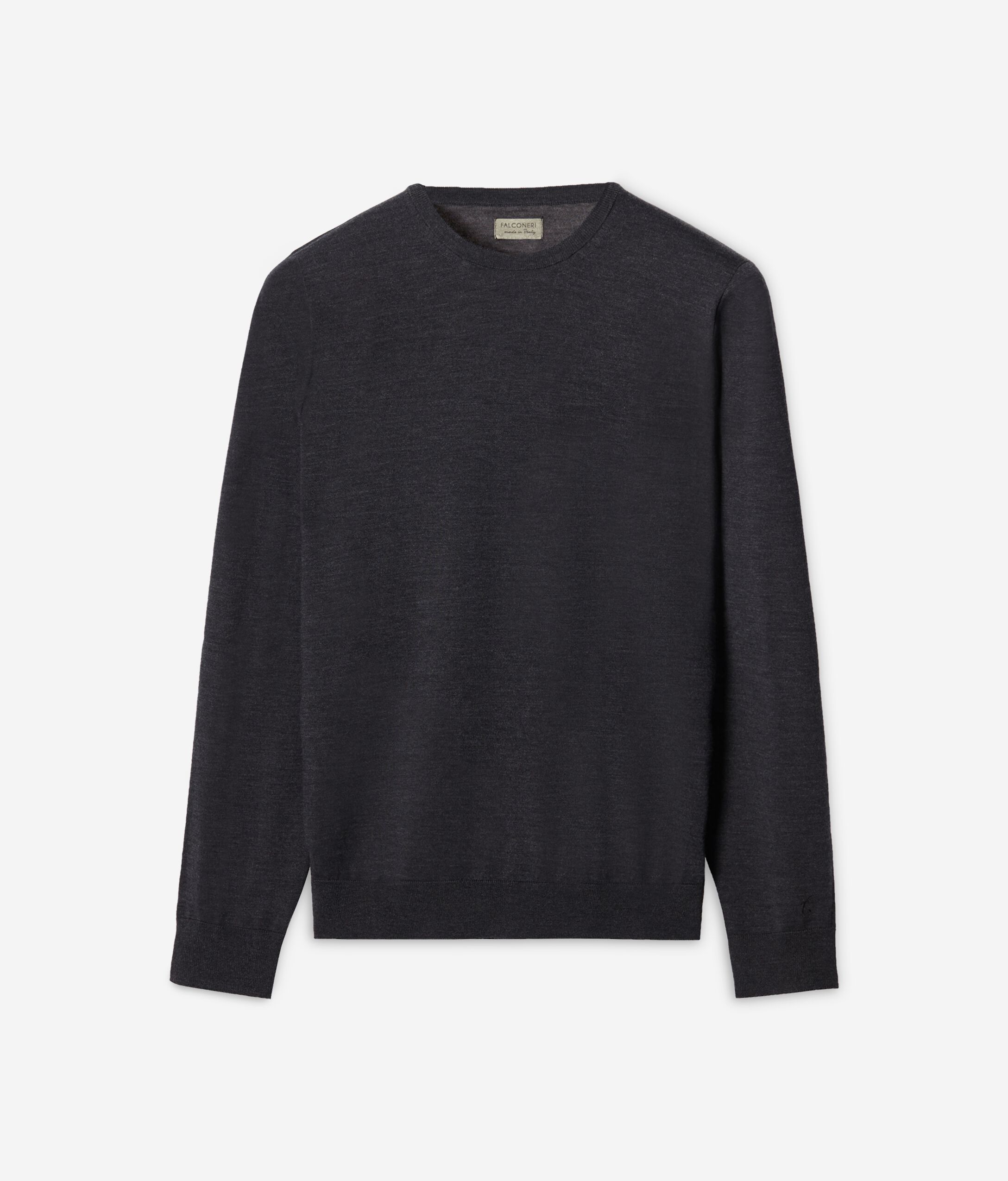 Μακρυμάνικο πουλόβερ με στρόγγυλη λαιμόκοψη από μαλλί μερινό.