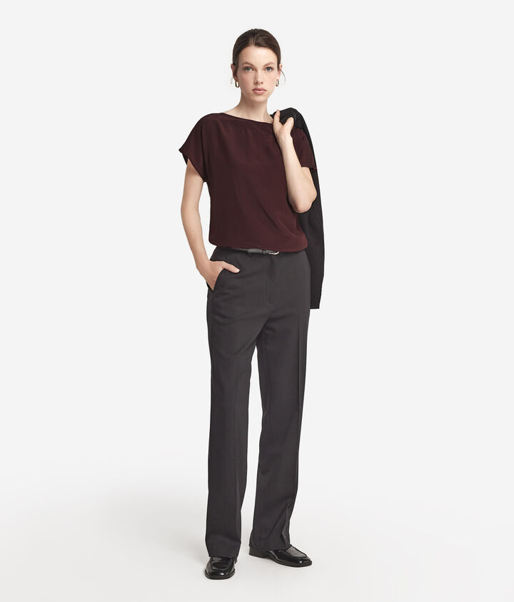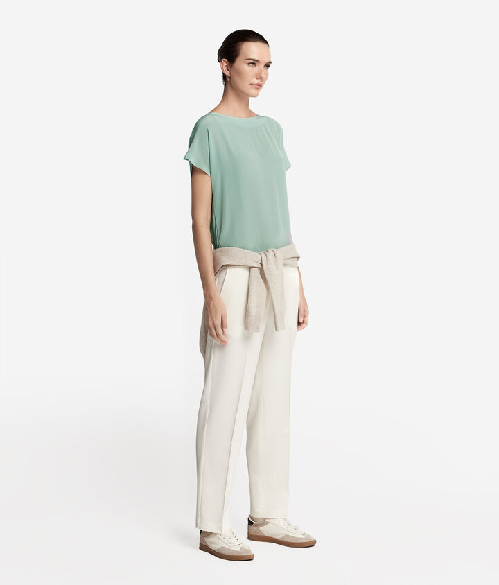 NovitetiMajica kratkih rukava s ovratnikom s lađa-izrezom od svile i modala88,00 €Odaberite svoju bojuBoja timijanaBijelaBoja alabastera+ 10Odabrana boja: Boja timijana