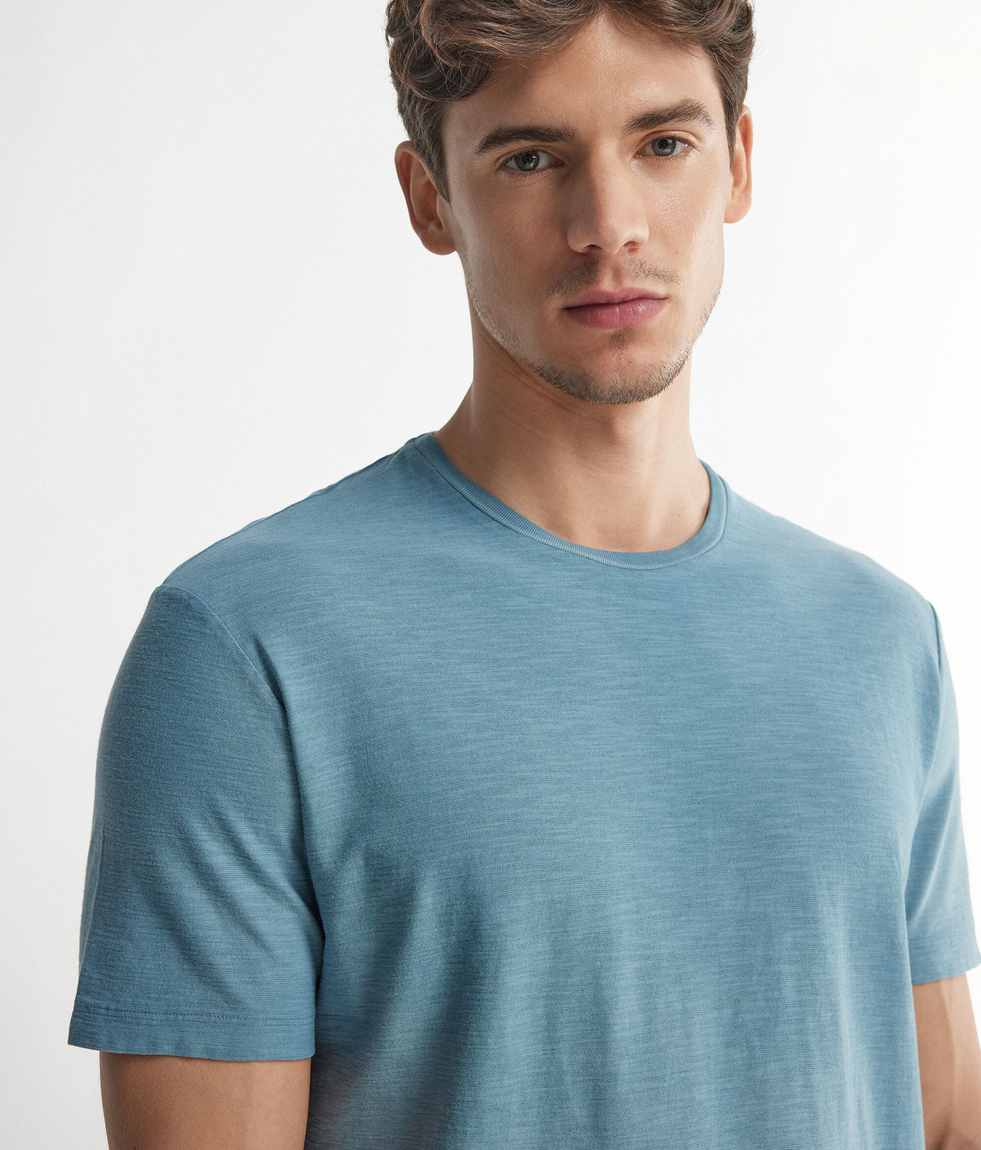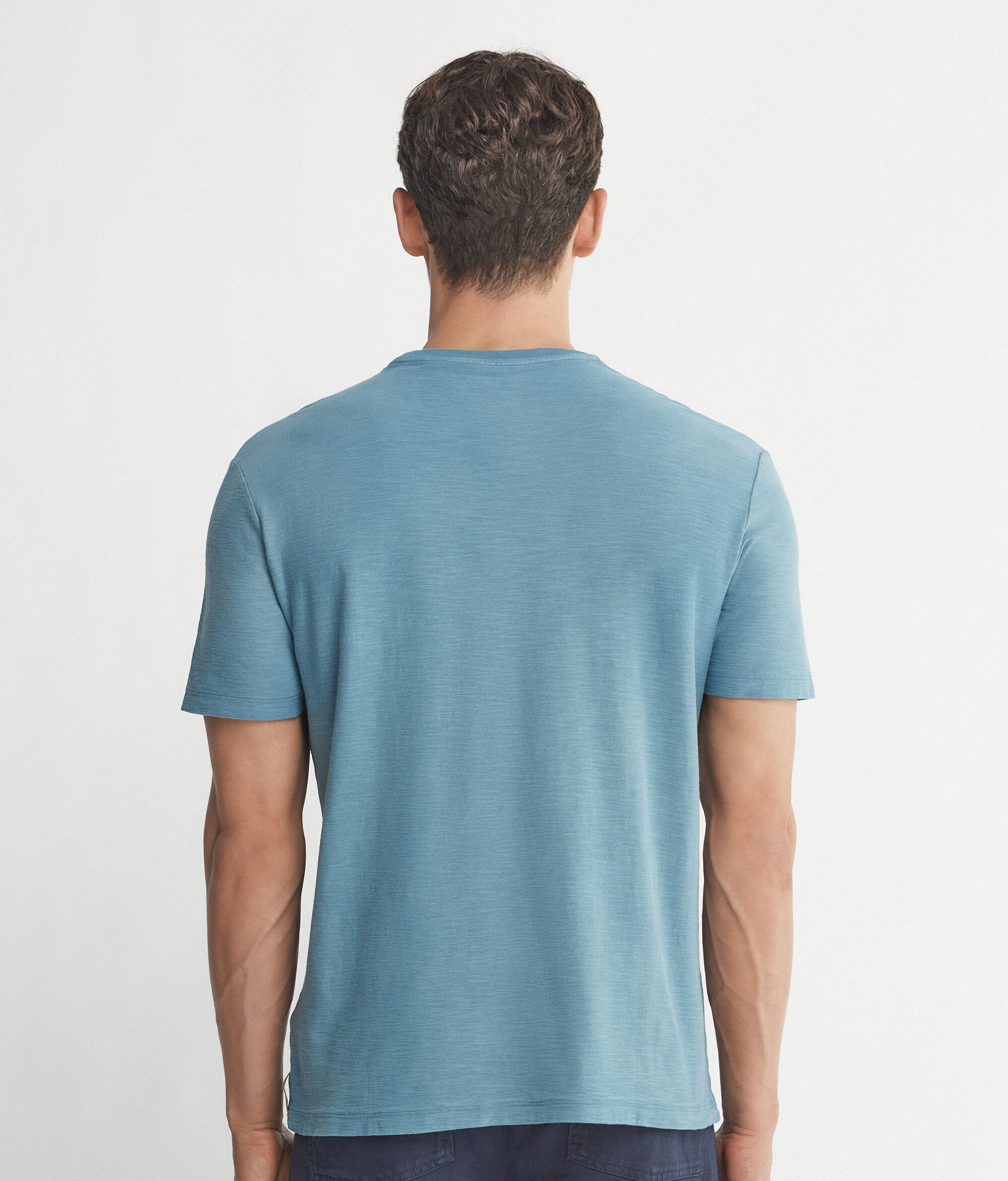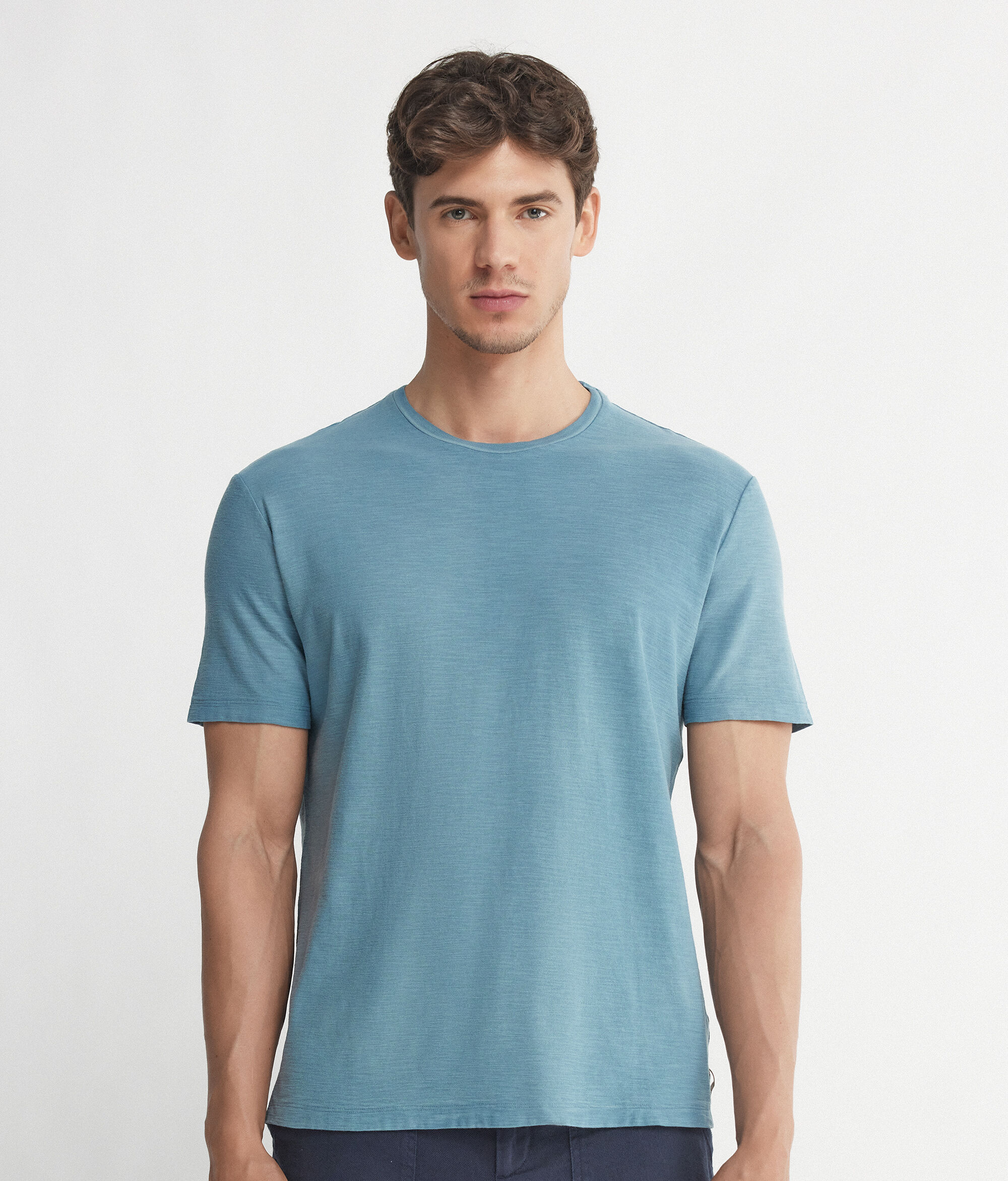 • The uneven texture and imperfections in the garment-dyeing, created by the cotton's special twisted finish, lead to a marbled effect that gives the garment a unique look