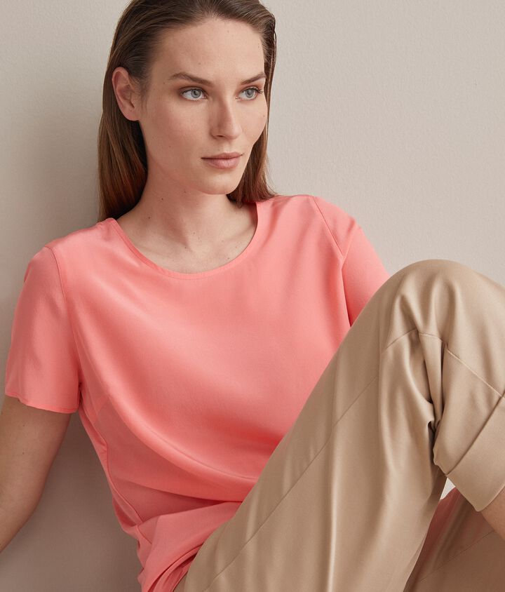Silk and Modal Boat-Neck T-Shirt38000,00 FtSelect your colorFuchsiaWhiteALABASTER BEIGE+ 10Selected color: Fuchsia