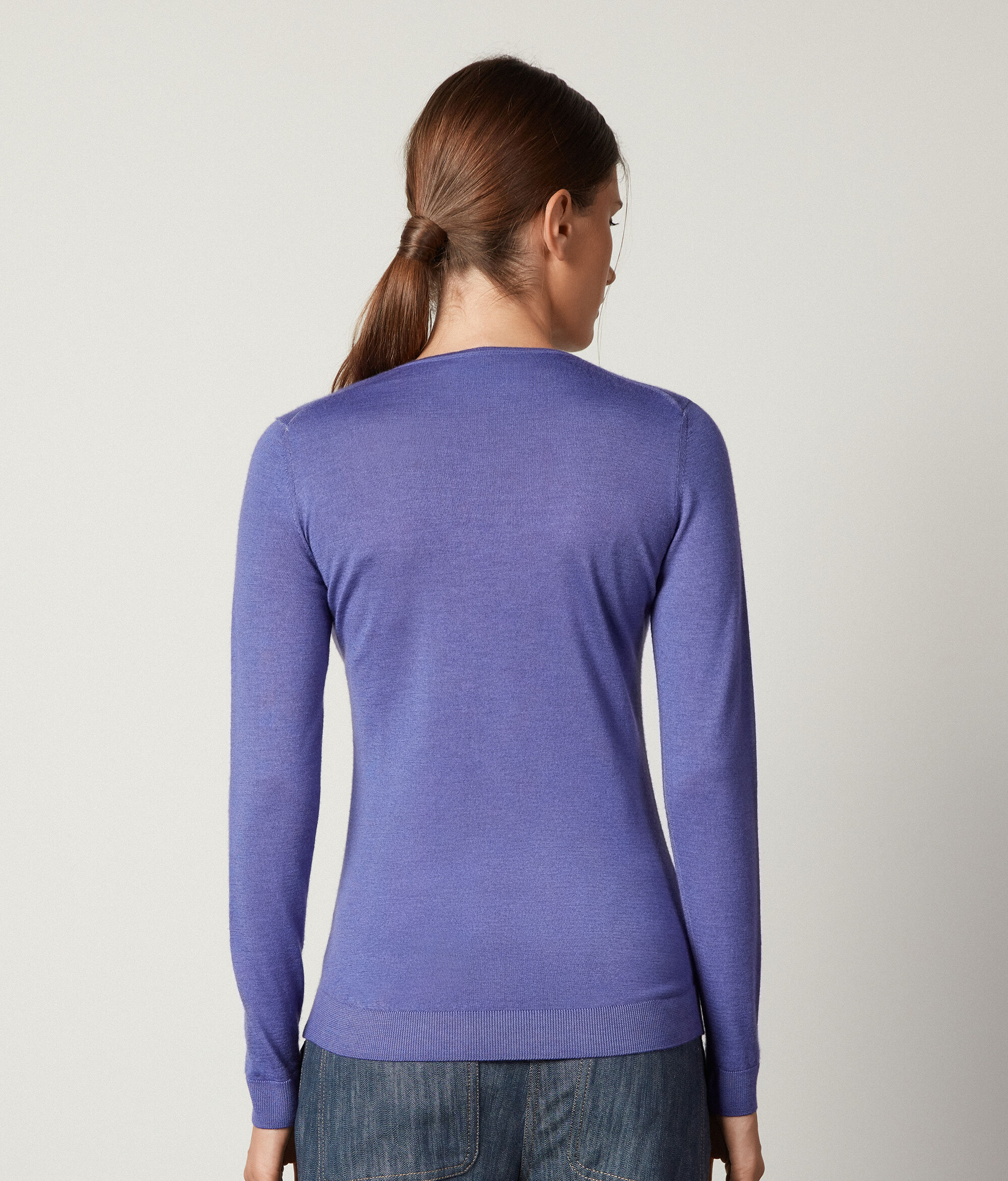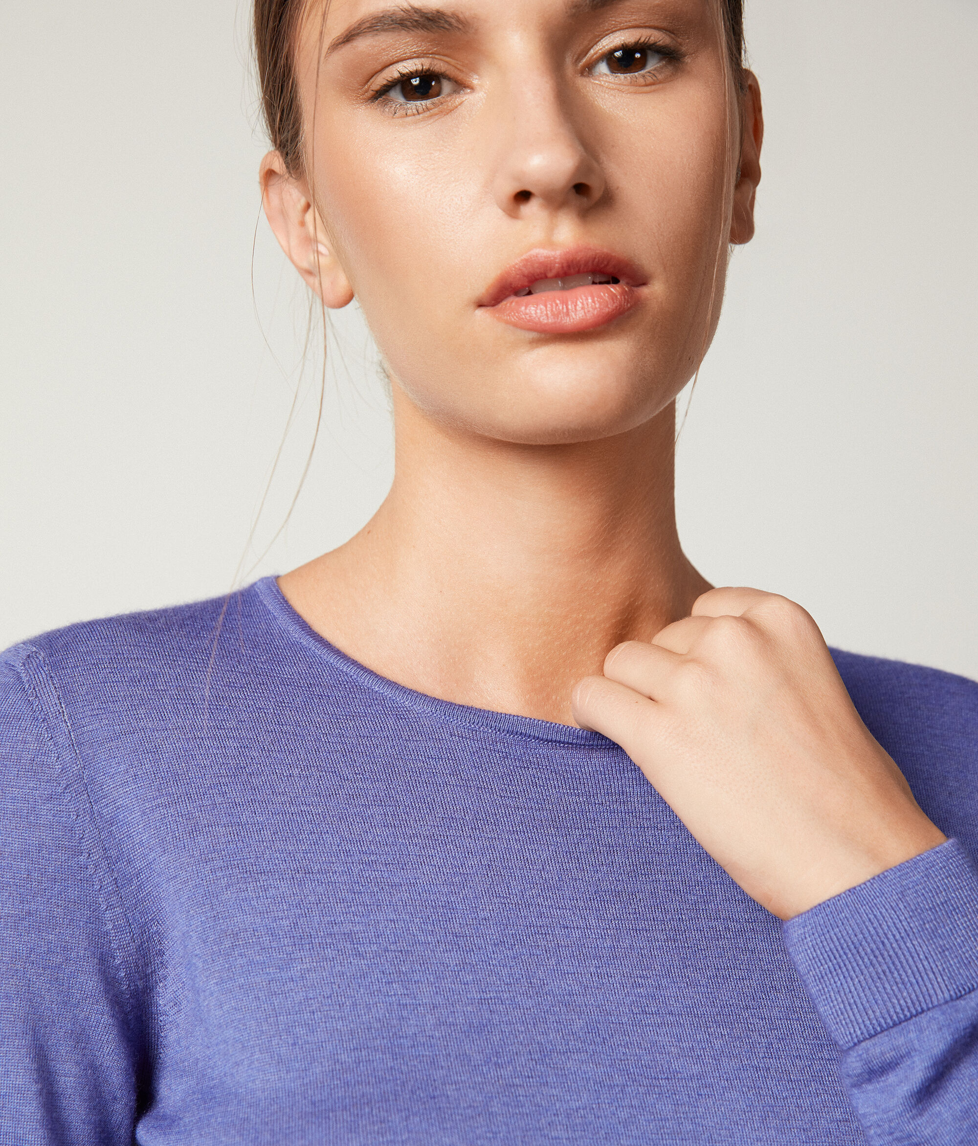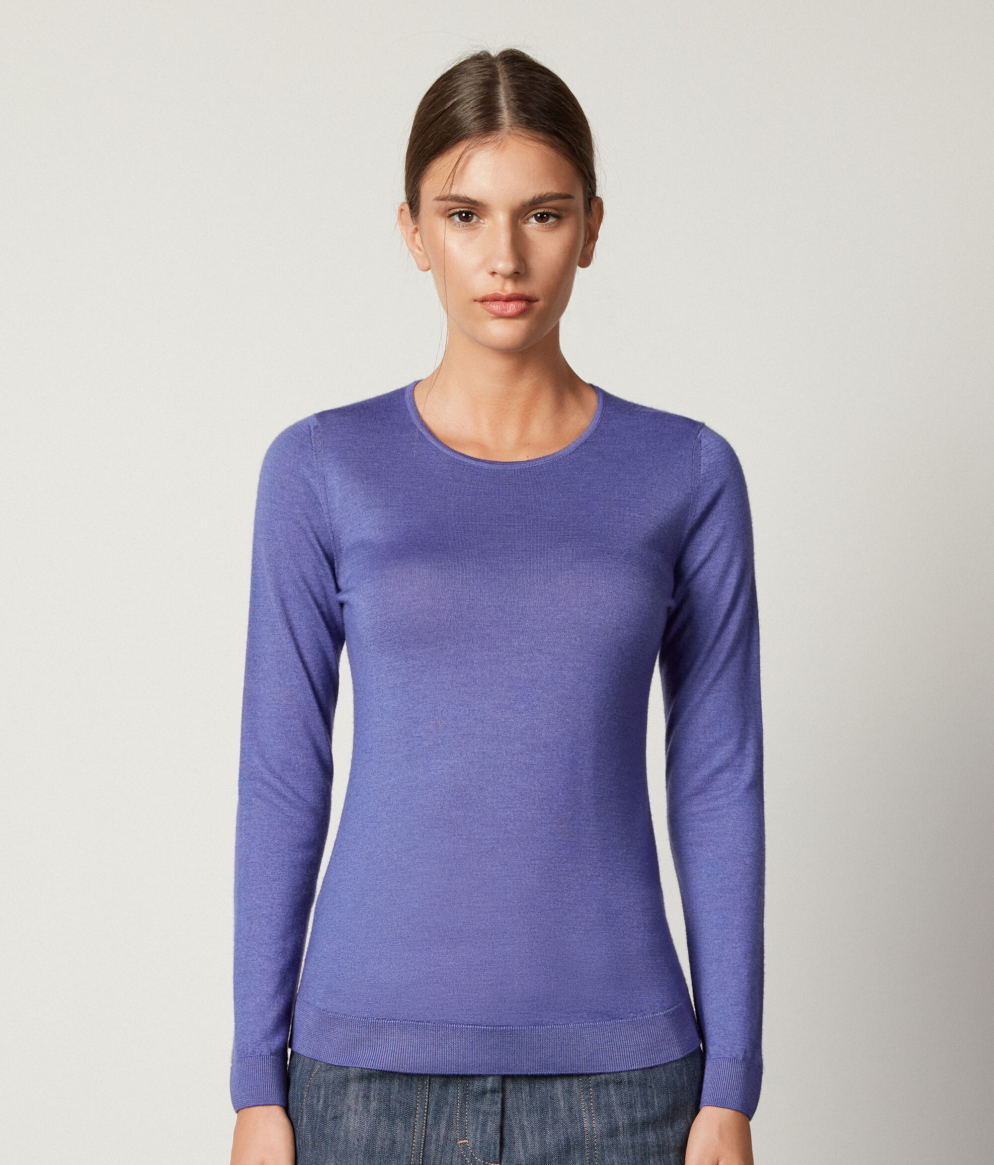 Ultralight Cashmere crewneck-jumper with a slightly-rounded hemline. A classic item that would be perfect under a jacket. Regular fit. Please note that this item is fitted, we advise purchasing a larger size. Model is 180 cm tall and wears a size MChest: 88cm / Waist: 67cm / Hips: 94cm