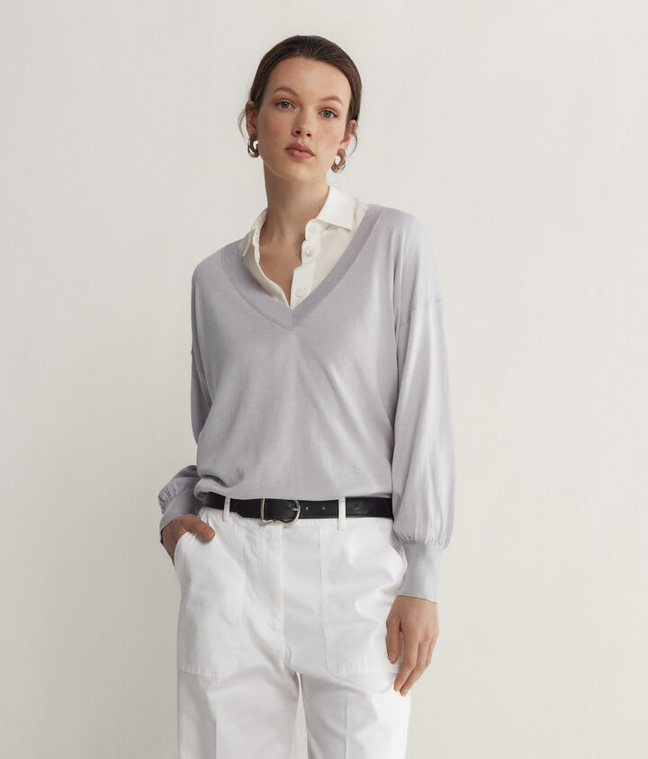 Maglia Scollo a V in Seta e Cotone a Palloncino128,00 €Seleziona il coloreSaleBiancoBlu Navy+ 1Colore selezionato: Sale