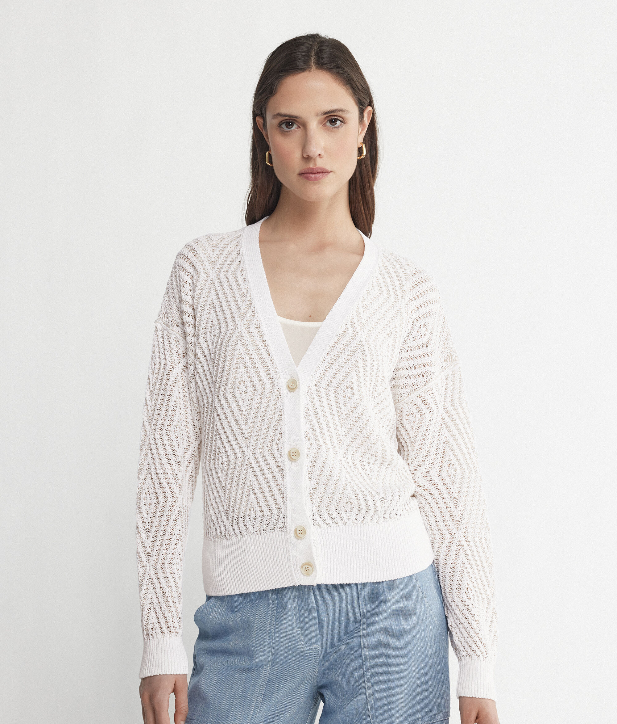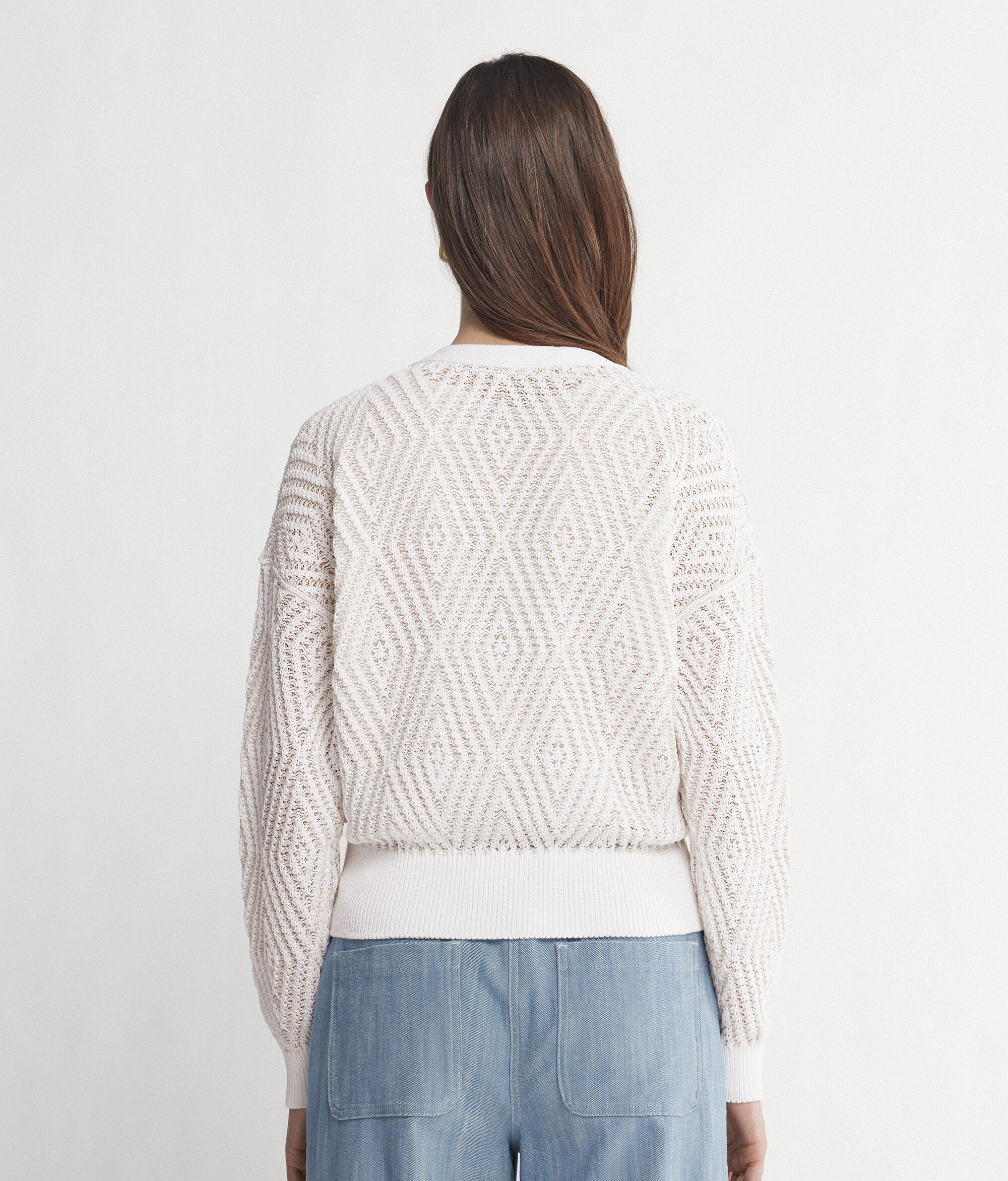 Dal gusto fine e romantico il nuovo golfino Falconeri si propone come capo versatile e senza tempo. La lavorazione a rombi e l'attenzione ai dettagli ne esaltano l'eccezionale qualità rendendolo perfetto per un guardaroba pratico ed essenziale.