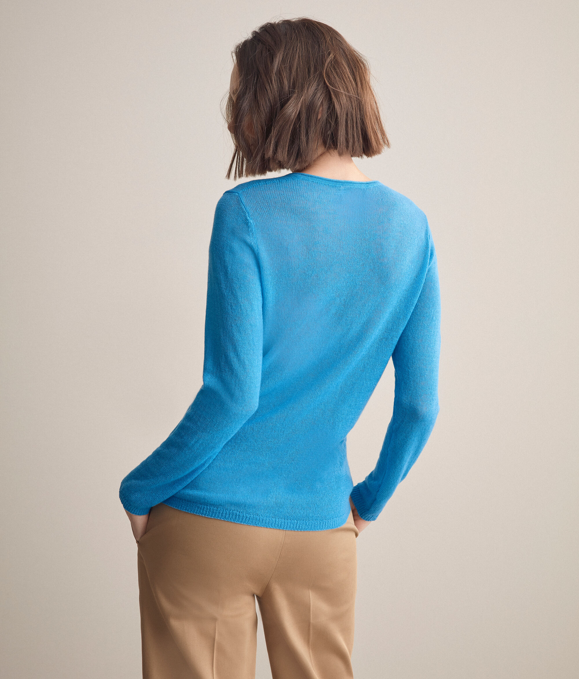 Come una soffice nuvola questa maglia in cashmere cardato 2/46 regala una morbida coccola ad uno stile essenziale e sofisticato. Modello con scollo a V che disegna una silhouette slim in leggerissima trasparenza, ideale come caldo capo di mezza stagione o come sottogiacca. La modella è alta 179 cm e veste una taglia MPetto: 88cm / Vita: 67cm / Fianchi: 94cm