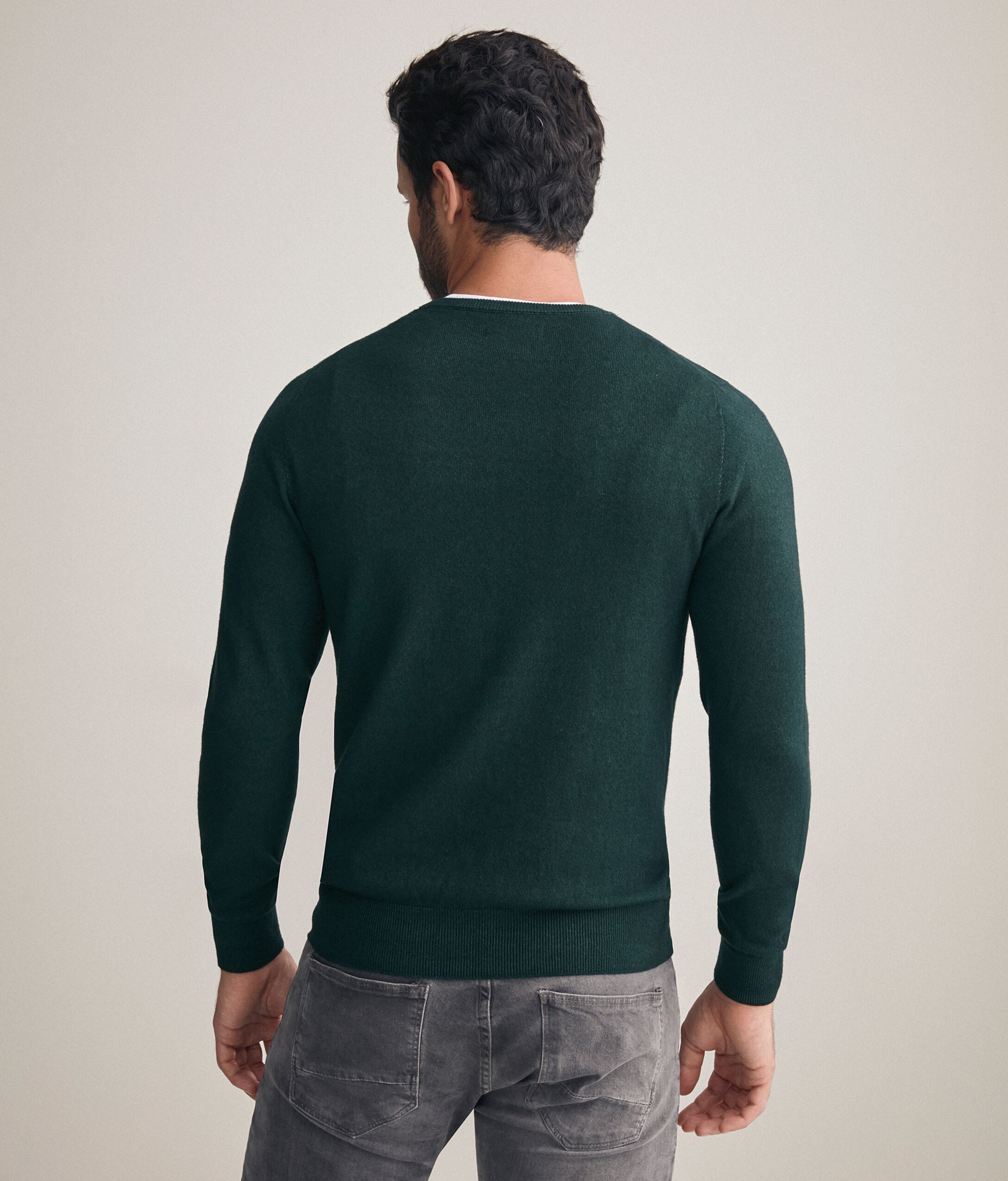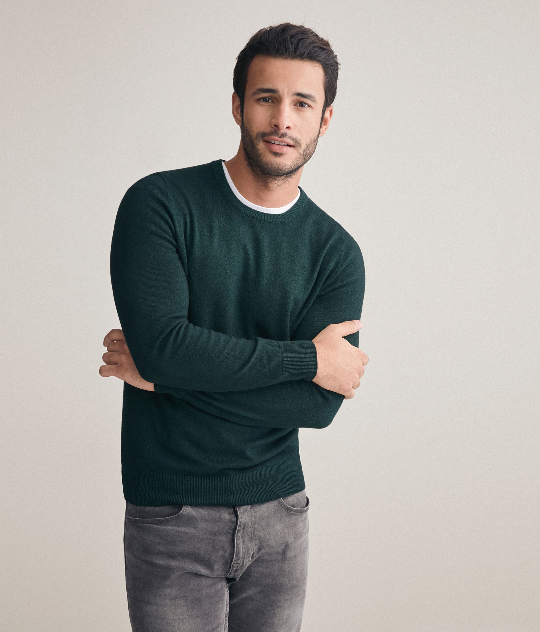 Maglia girocollo realizzata in cashmere ultrasoft, rifinita con una tintura in capo old che conferisce un effetto marmorizzato. Le rifiniture a coste su scollo, polsi e fondo donano al capo un sapore sportivo. Capo confortevole con vestibilità regolare. Il modello è alto 184 cm e veste una taglia 50Petto: 98cm / Vita: 82cm / Fianchi: 99cm