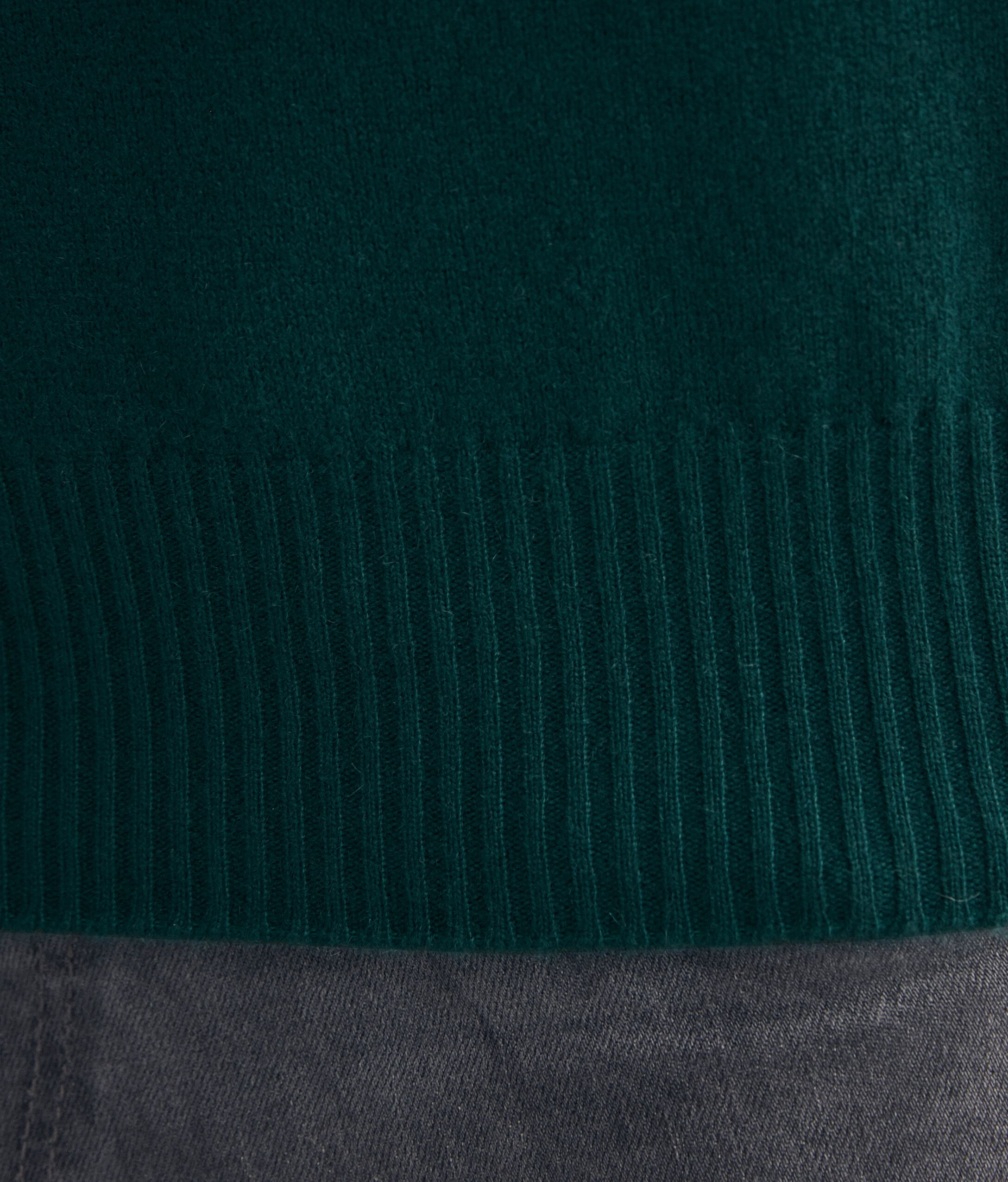 ウルトラソフトカシミヤ製のタートルネックセーターです。ネックライン、カフスと裾の仕上げにより、アイテムにスポーティテイストが加わっています。