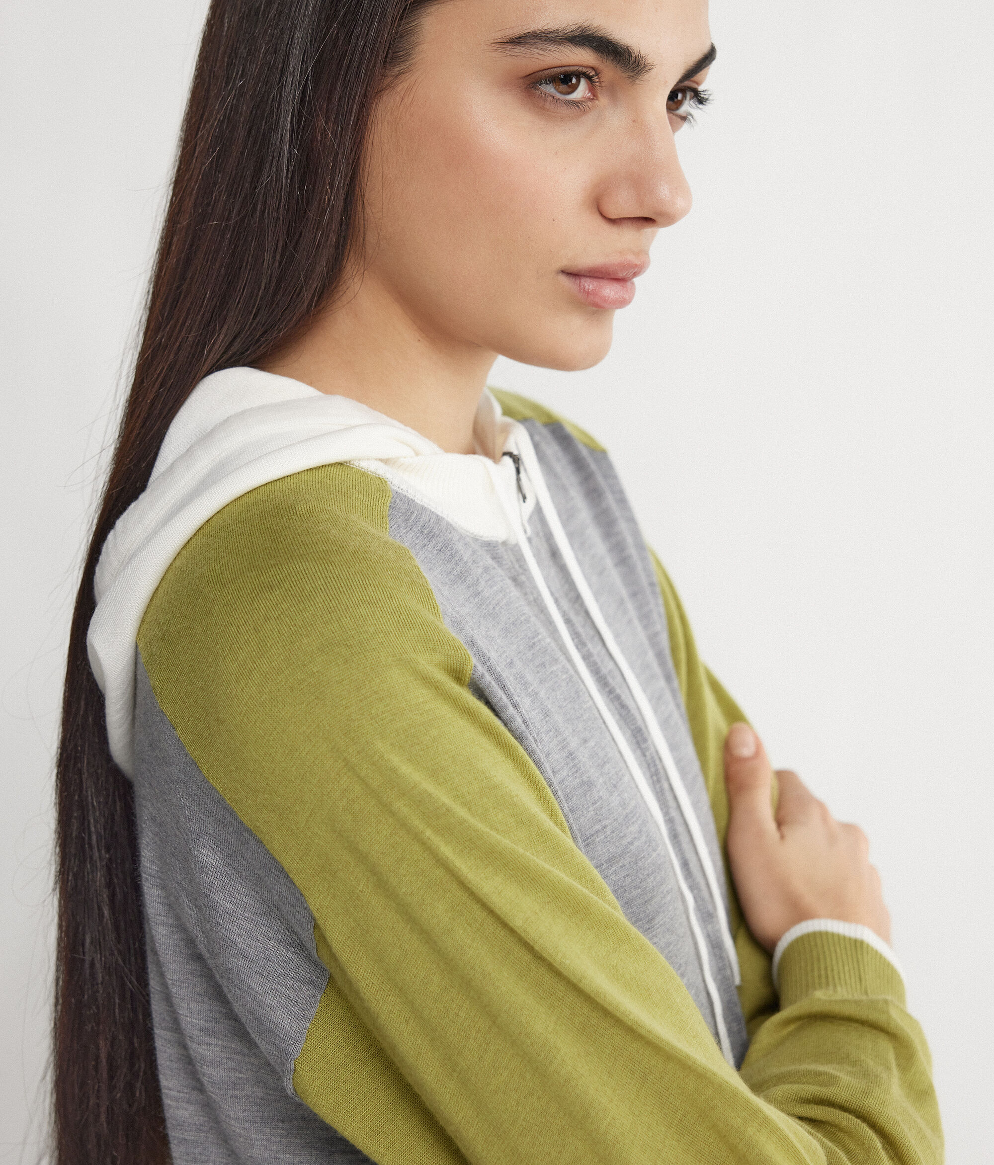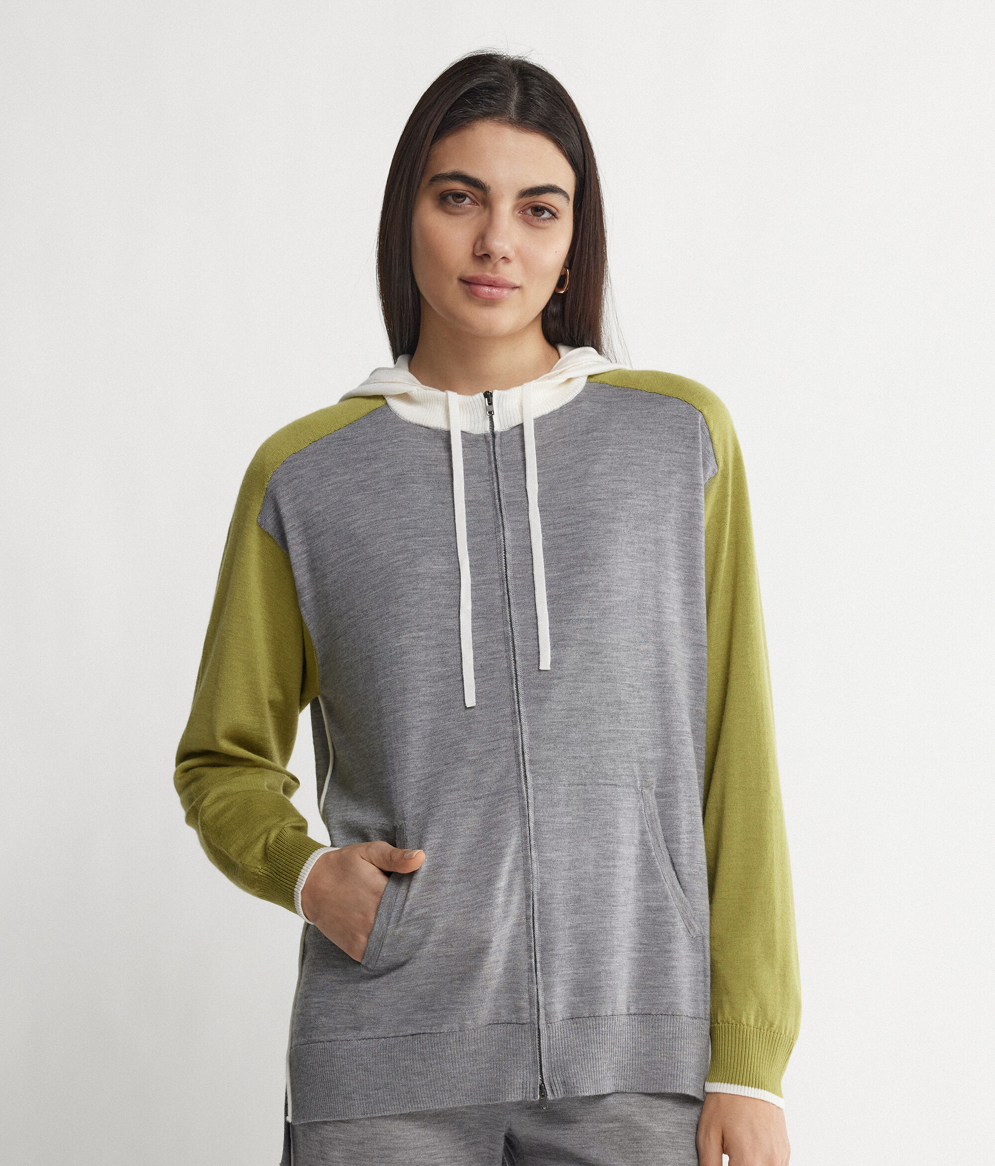 上質なカシミヤの高級感とカジュアルなテイストを融合し、カラーブロックデザインで仕上げたFalconeriのスウェットシャツ。リラックスしたひと時を過ごすのに最適で、中央のファスナー開閉や2つの大きなフロントポケットがさらに実用性を高めています。