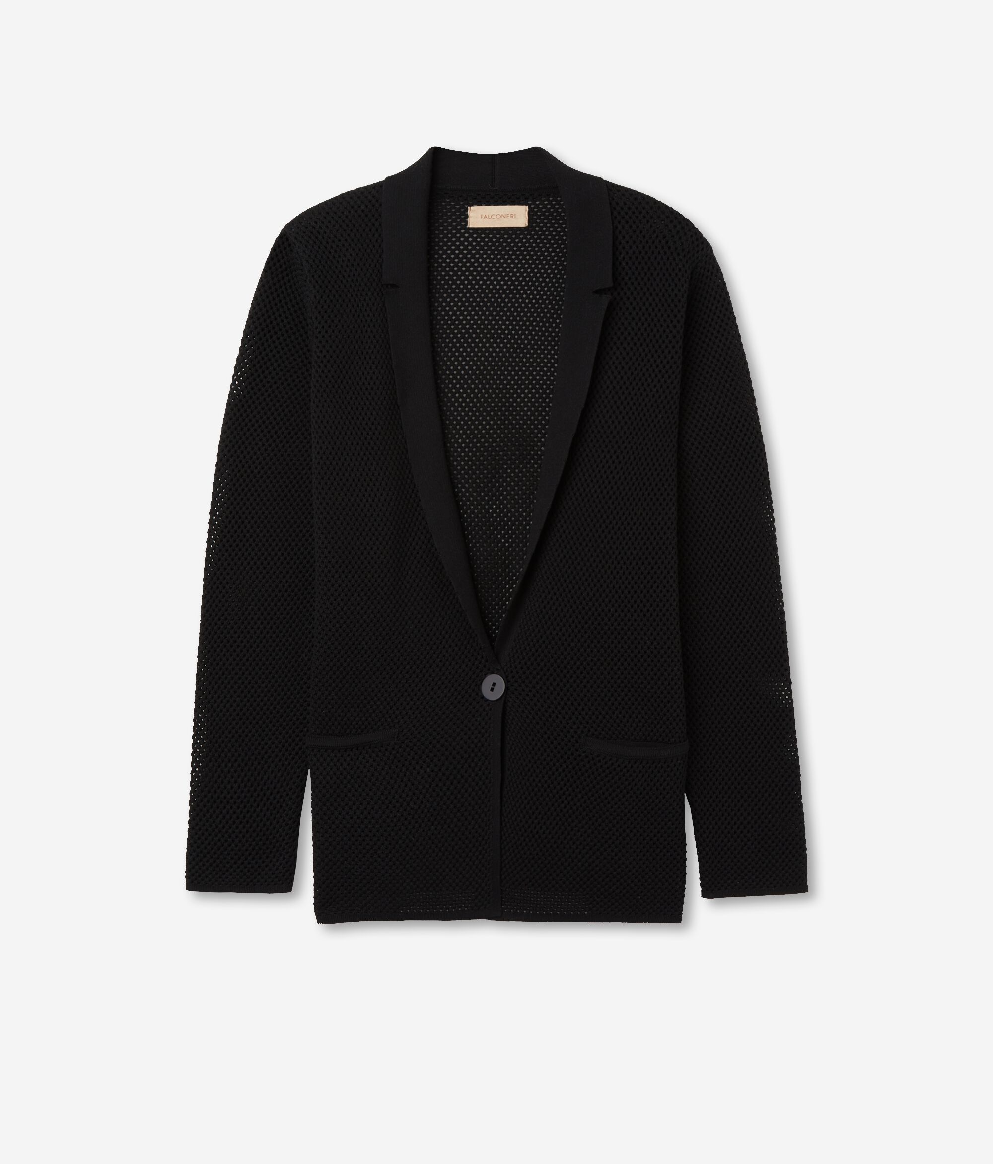 Falconeriが提案するクロシェ編みのジャケット。昔からブランドの特徴であり続けるディテールへのこだわりと情熱を、最良の形で表現したアイテムです。中央のワンボタンで開閉。ウェルトポケットをあしらって、非の打ちどころのないルックを演出する実用的な一着に仕上げています。