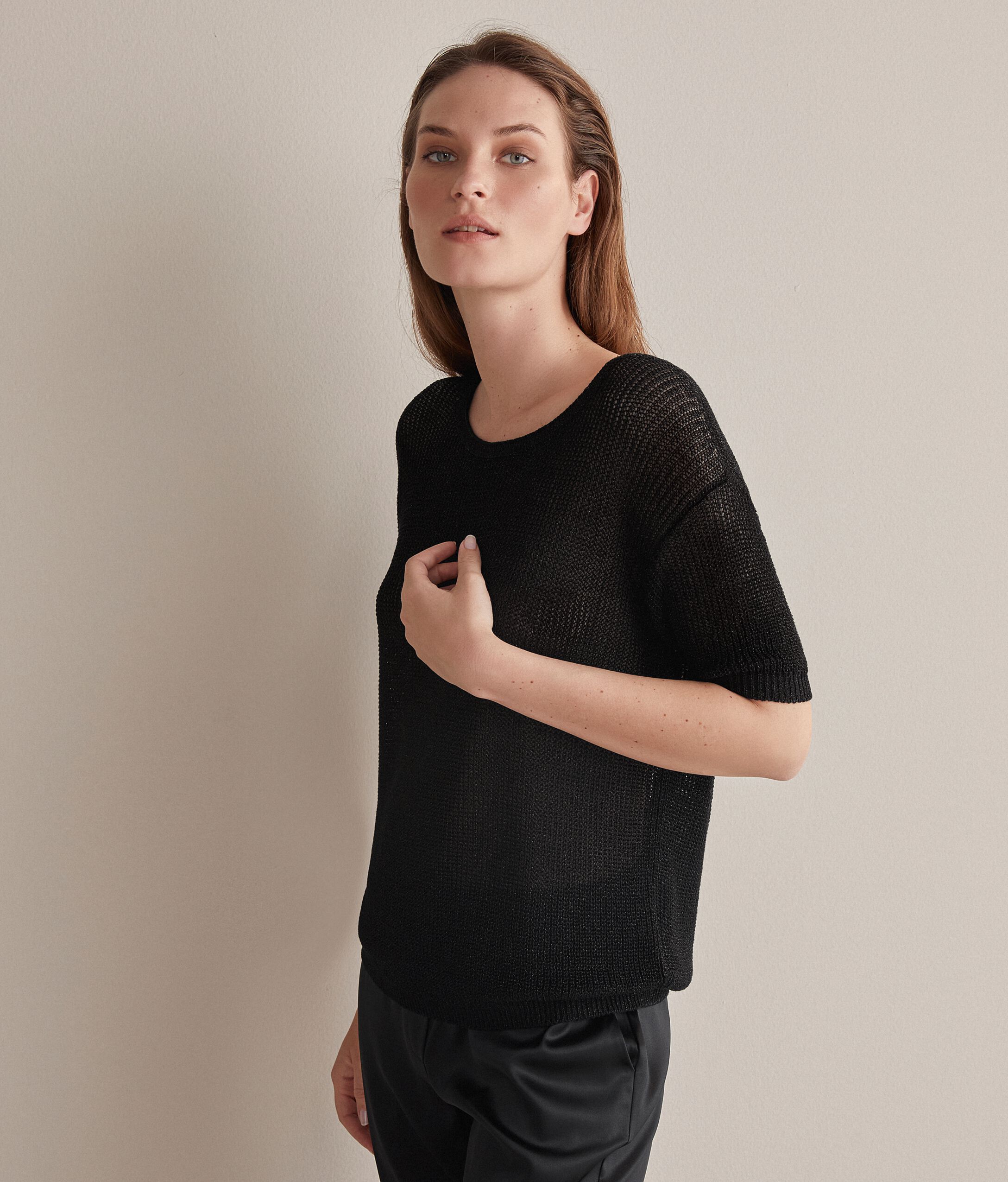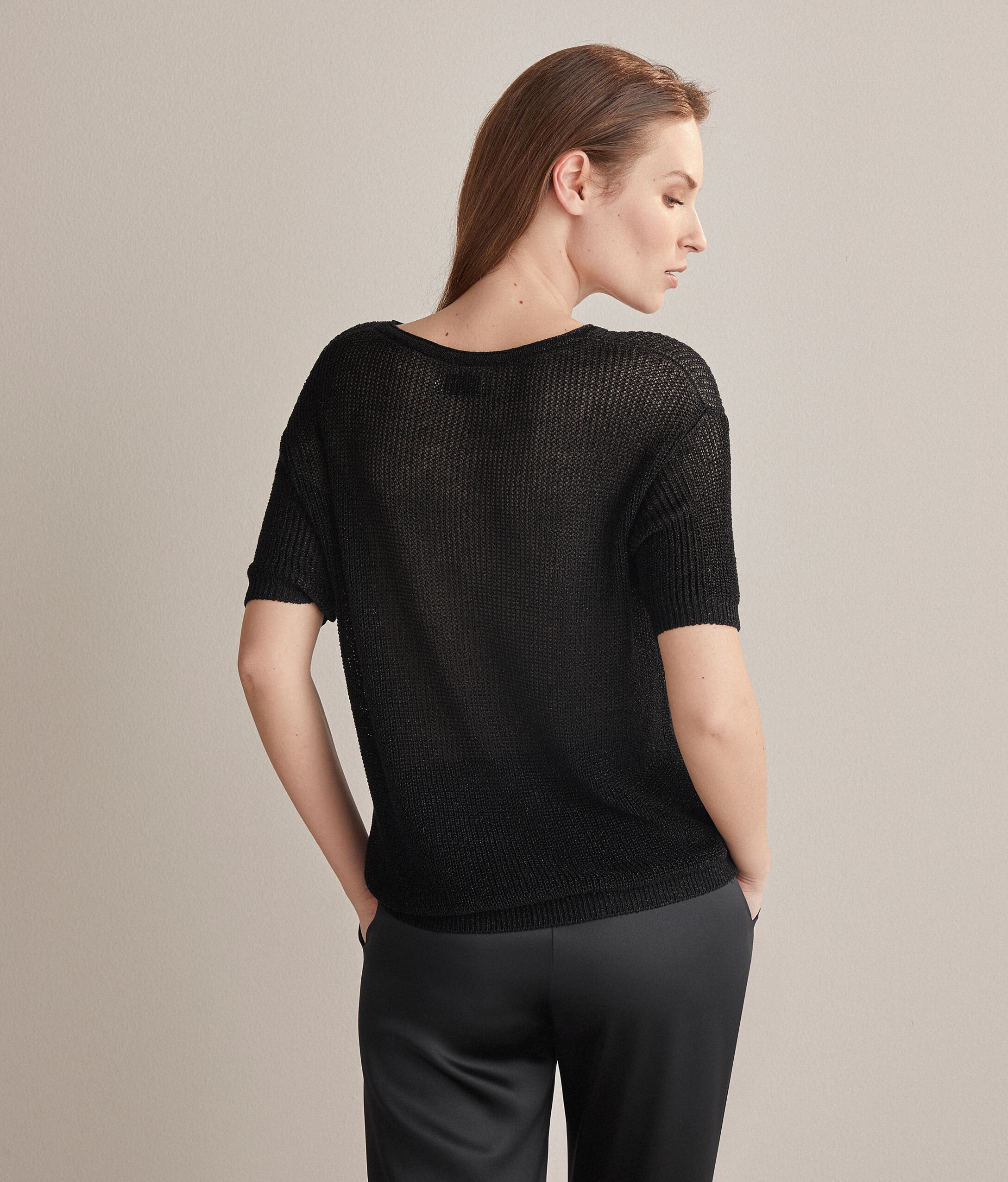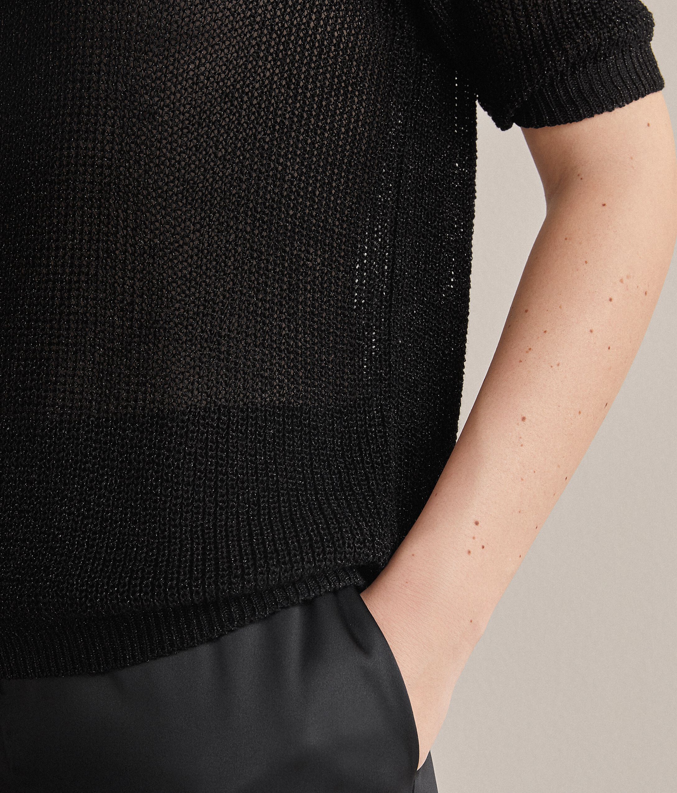 上質な天然繊維を芸術的なデザインと組み合わせたアイテム。洗練された加工を施し、細部まで入念にサルトリア風のディテールをあしらいました。襟はラウンドネックで、バランスがとれたスタイリッシュなボリューム感が特徴。爽やかなリネンとコットンを使用しており、ラメの糸がキラキラと輝いて、ライトのような独特の効果を演出します。オフショルダーで、柔らかな着心地。モデルの身長は179cmでMサイズを着用バスト: 88cm / ウエスト: 67cm / ヒップ: 94cm