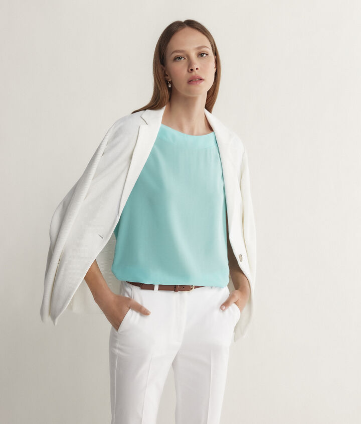 Les mailles sont le cœur de métier de Falconeri : gilets, hauts et pulls réalisés avec des fils d'excellente qualité.