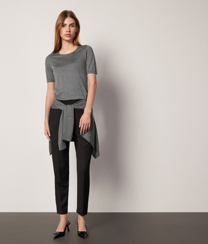 T-shirt à manches courtes et col rond en cachemire ultra-fin