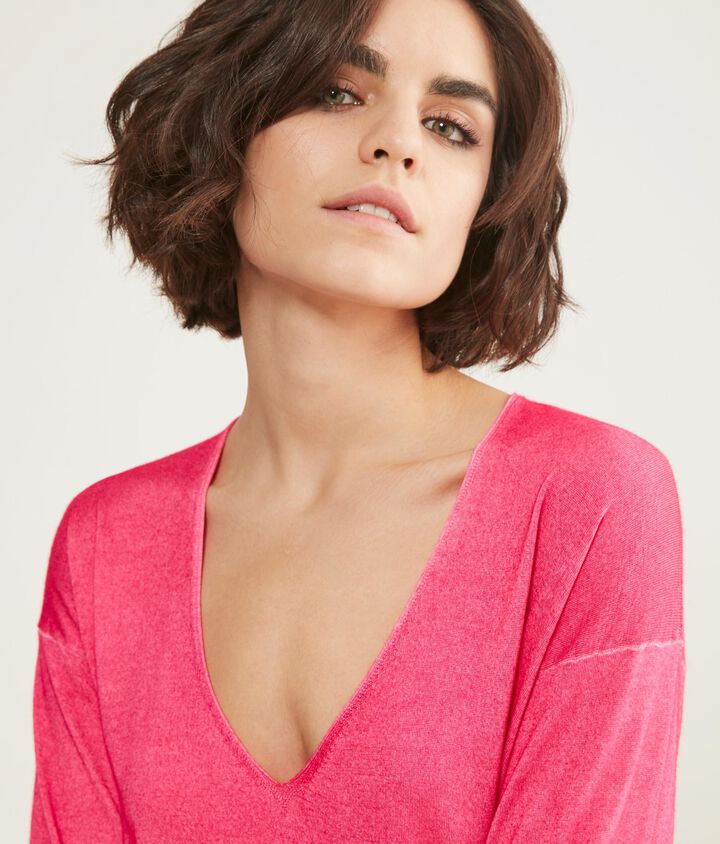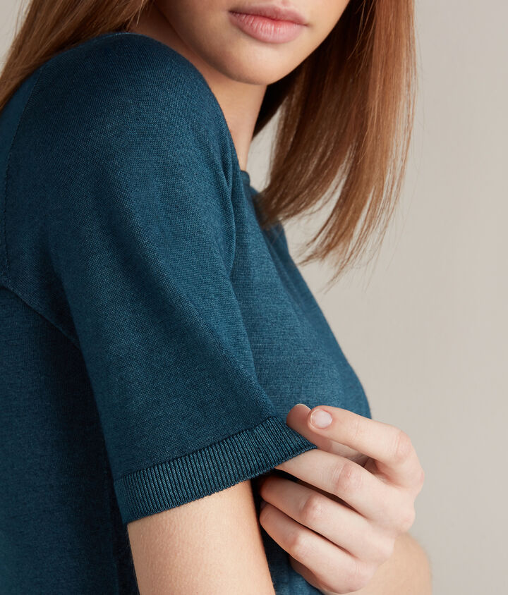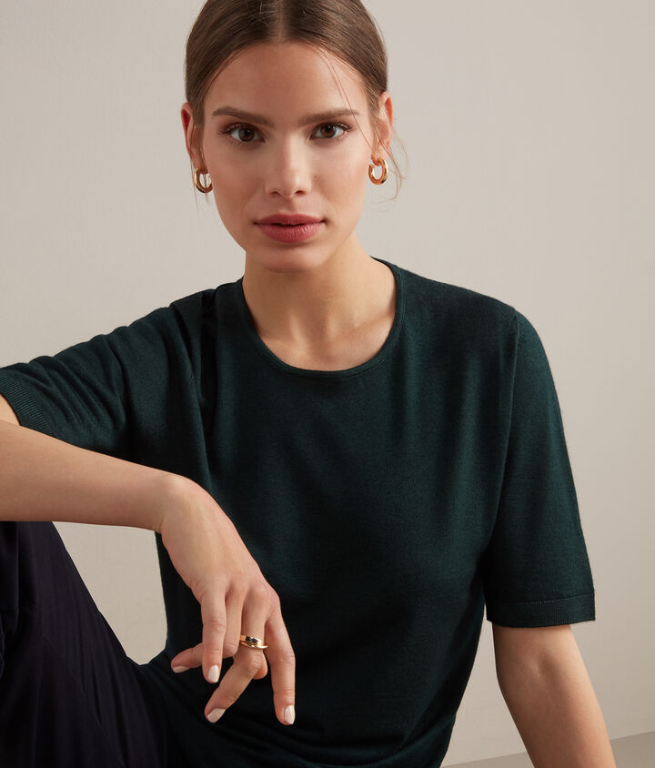 Pull à col rond et manches courtes en Cachemire ultra-fin