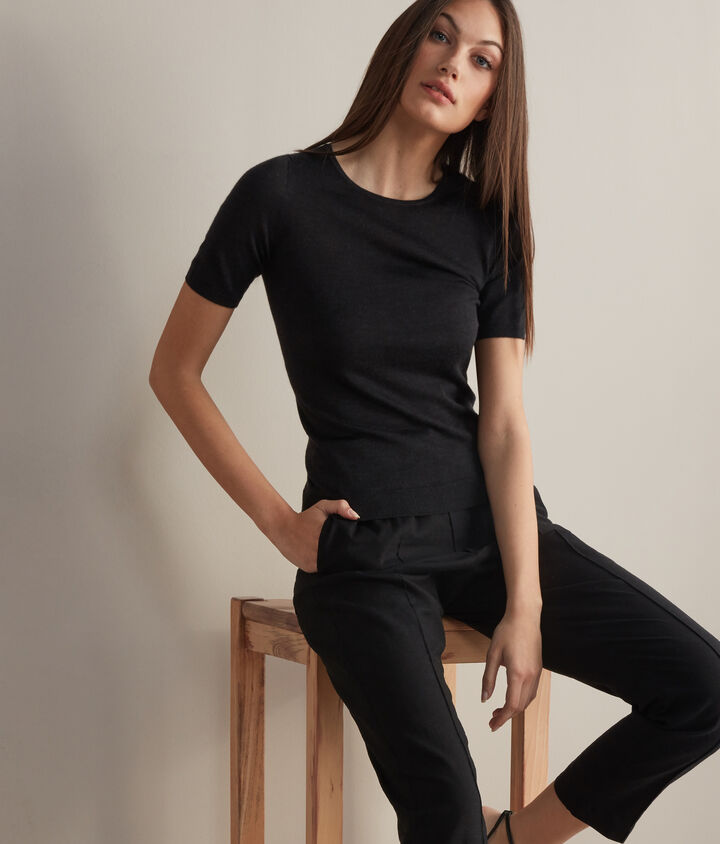 T-shirt à manches courtes et col rond en cachemire ultra-fin