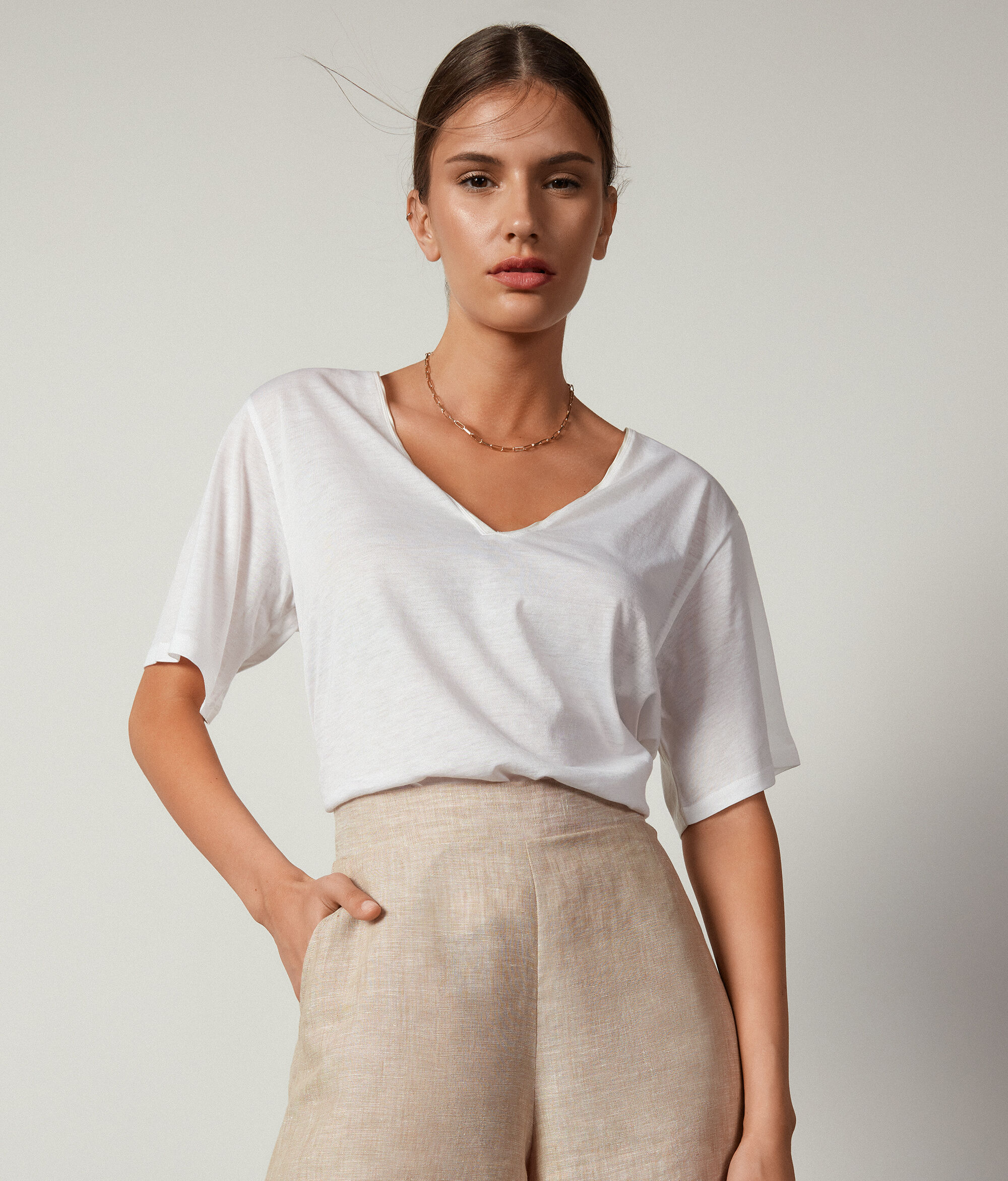 Pull à col rond et manches courtes en Cachemire ultra-fin