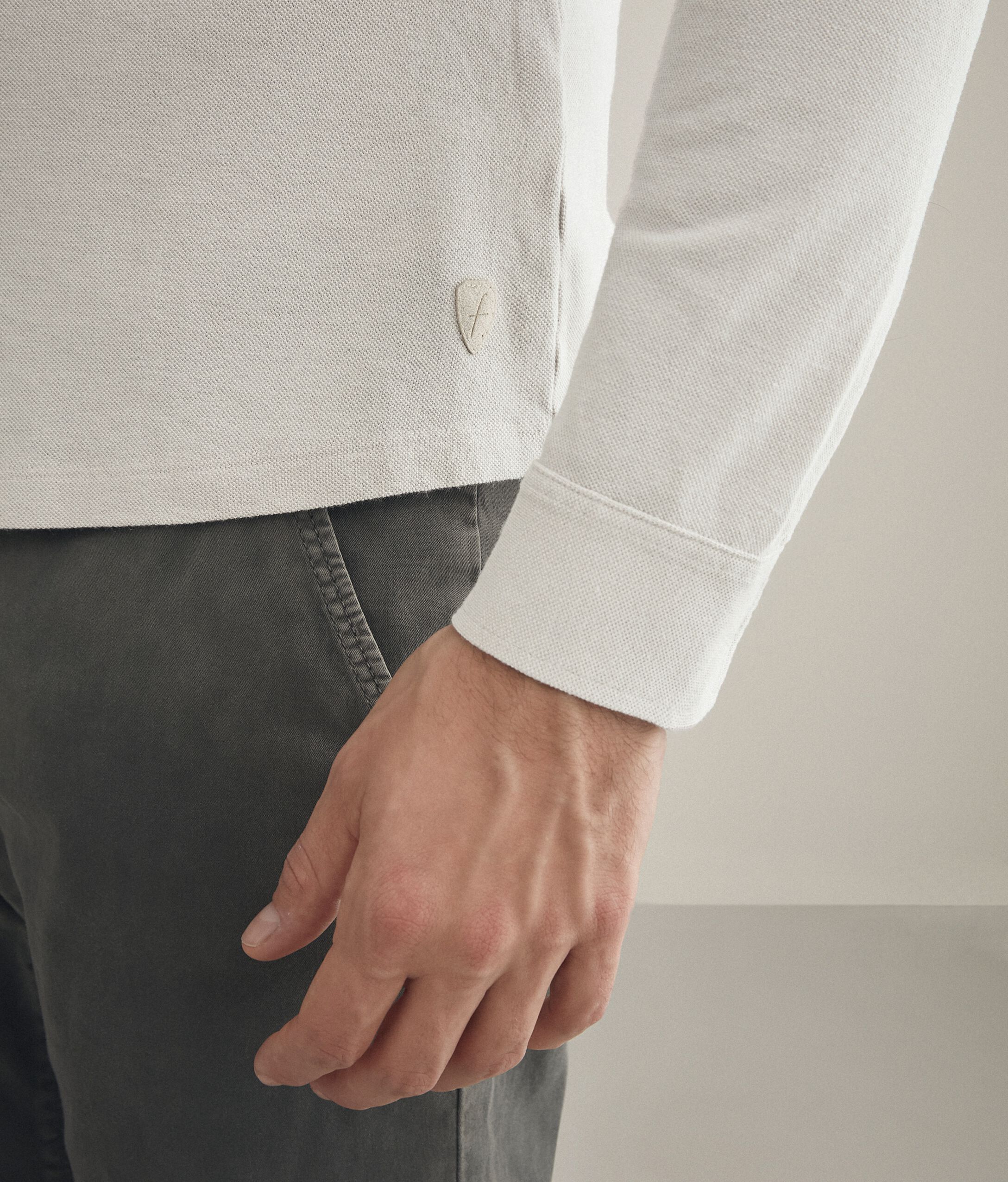 Chemise en piqué de coton et soie. La texture en piqué et la noble association entre le coton et la soie subliment le style décontracté de cette chemise à manches longues. Coupe régulière. Poitrine : 98 cm / Taille : 82 cm / Bassin : 99 cm