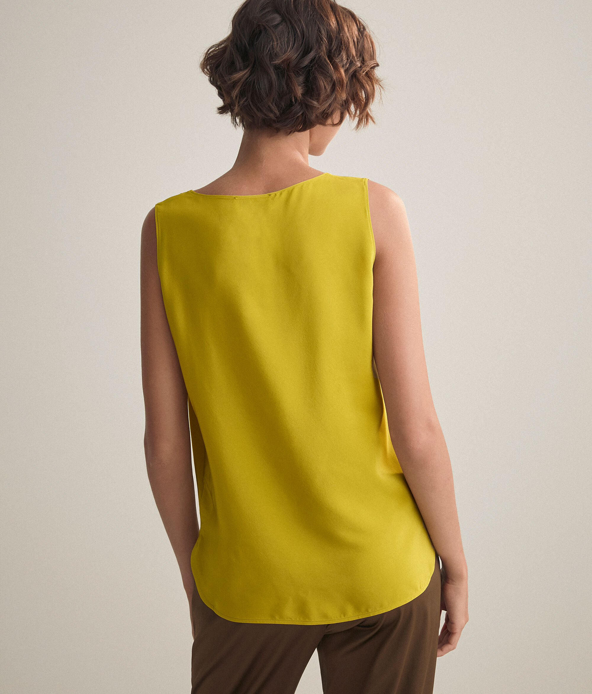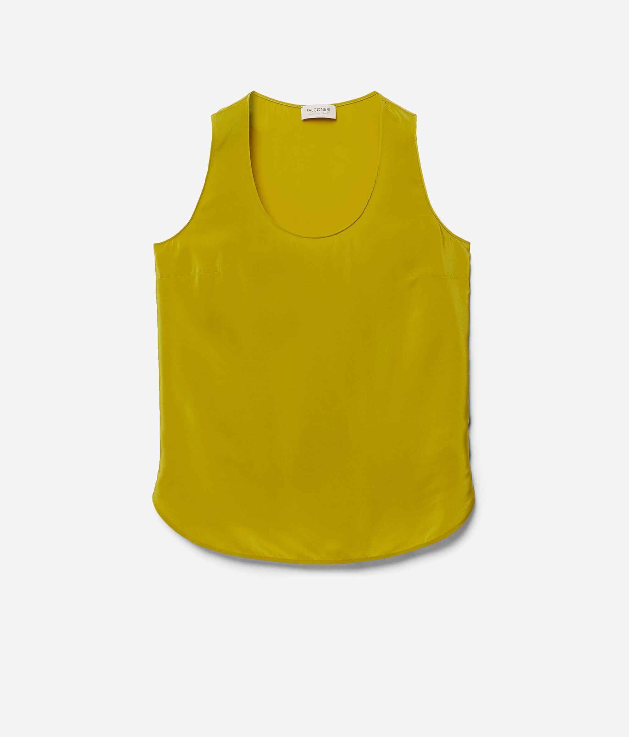 Pour celles qui recherchent un look sophistiqué où les détails sont mis en valeur, Falconeri propose un débardeur entièrement en soie avec un décolleté spécialement conçu pour souligner la fluidité du tissu.