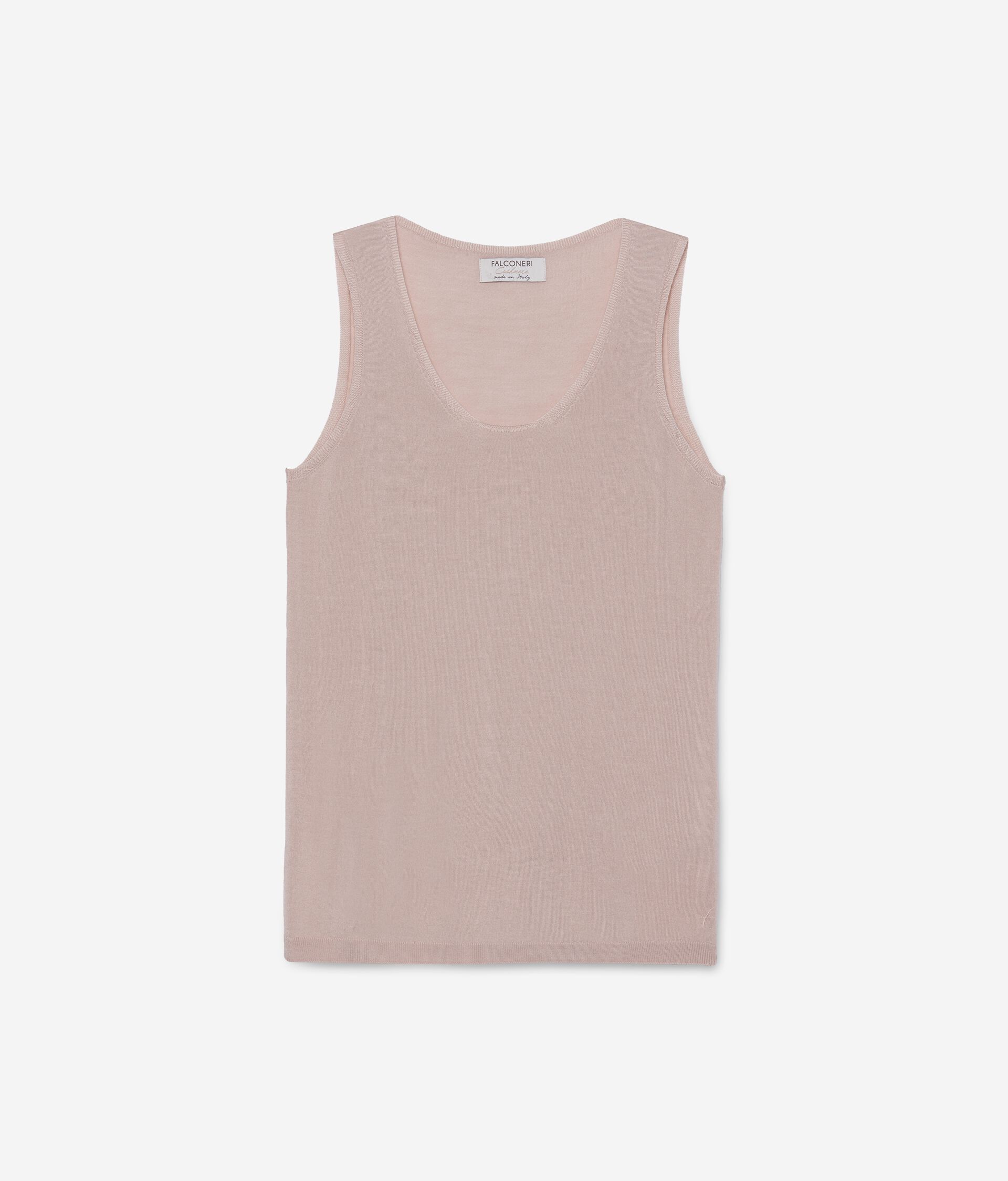 Débardeur à bretelles larges, encolure large, 100% cachemire léger, sans coutures. Coupe droite. Parfait sous une veste. Le Mannequin Mesure 178 Cm Et Porte Une Taille M
