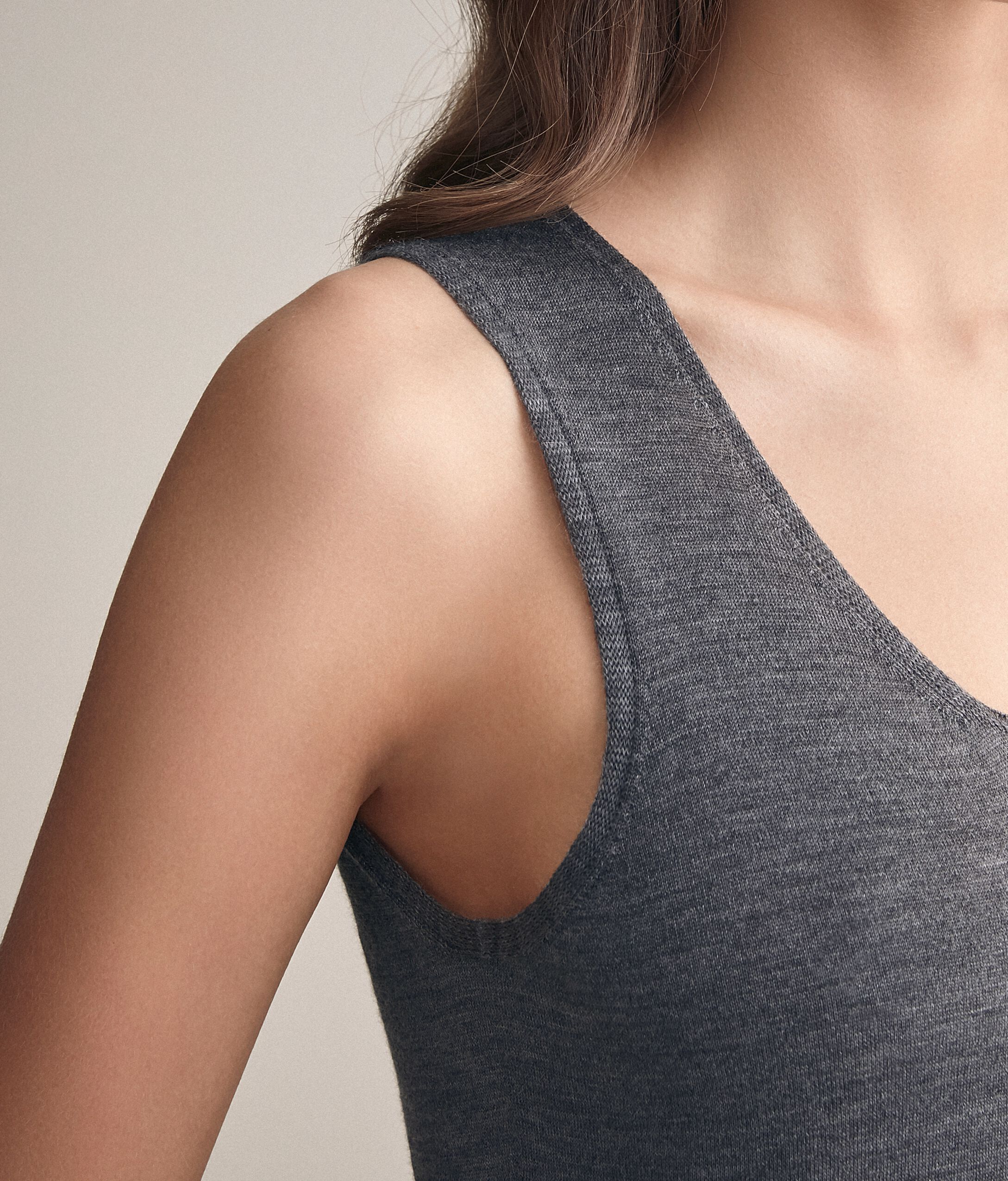 Débardeur à bretelles larges, encolure large, 100% cachemire léger, sans coutures. Coupe droite. Parfait sous une veste. Le Mannequin Mesure 178 Cm Et Porte Une Taille M
