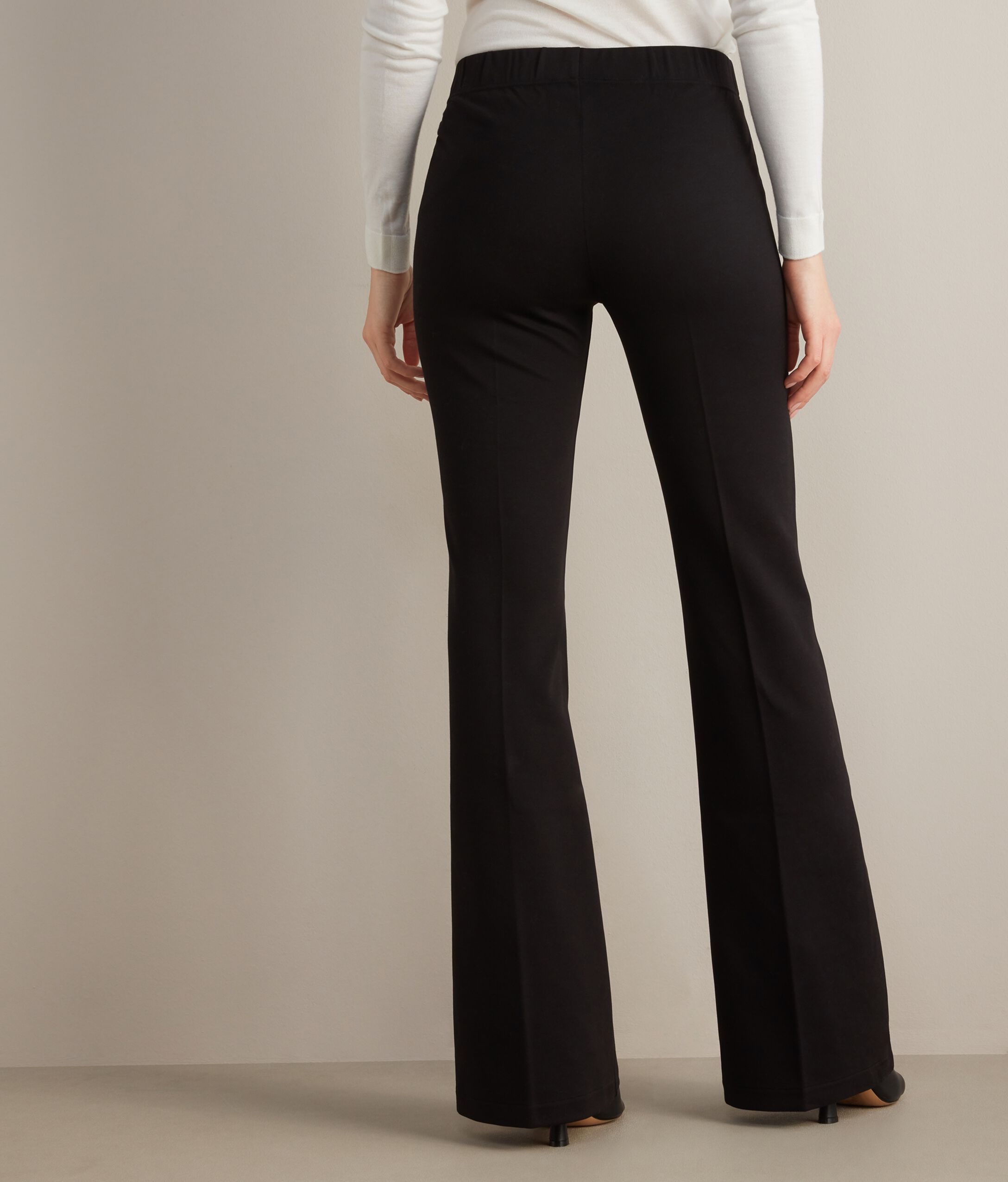 La fraîcheur naturelle du coton légèrement élastique s'associe à la modernité d'un style contemporain. Ce pantalon évasé est idéal pour toutes celles qui aiment surprendre grâce à un look envoûtant et dynamique. Une ceinture élastiquée fine souligne confortablement le tour de taille.