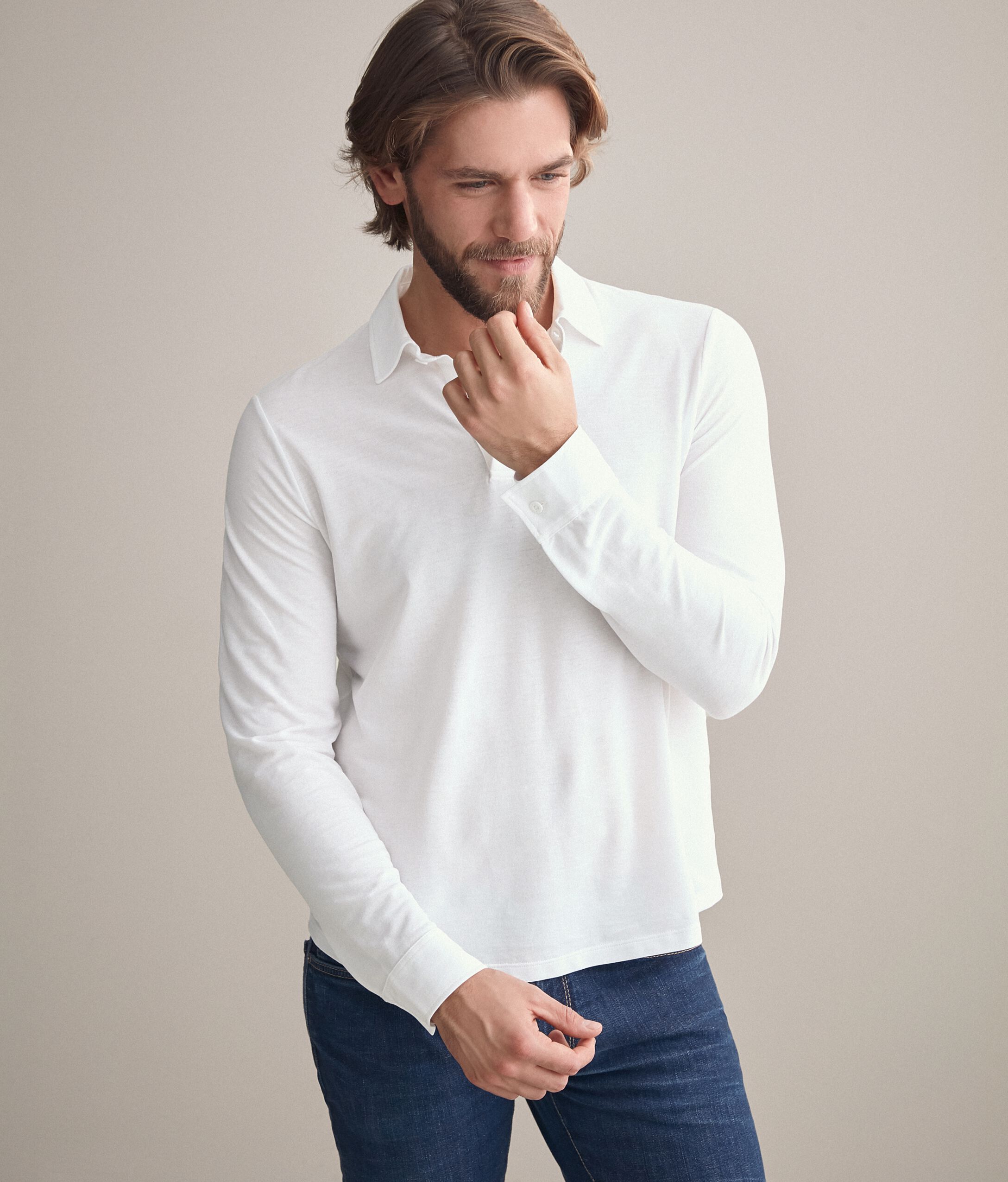 Les lignes classiques et le nouveau tissu crêpe de coton 100 %, particulièrement frais et sec, rendent ce polo à manches longues Falconeri une proposition idéale pour la saison estivale. La torsion particulière du filé donne au tissu un toucher croquant, l'aspect irrégulier et les imperfections du tissu flammé constituent une caractéristique prestigieuse qui rend chaque vêtement unique. Il présente une coupe et une longueur standard. Ouverture avant à 3 boutons. Le mannequin mesure 184 cm et porte une taille 50