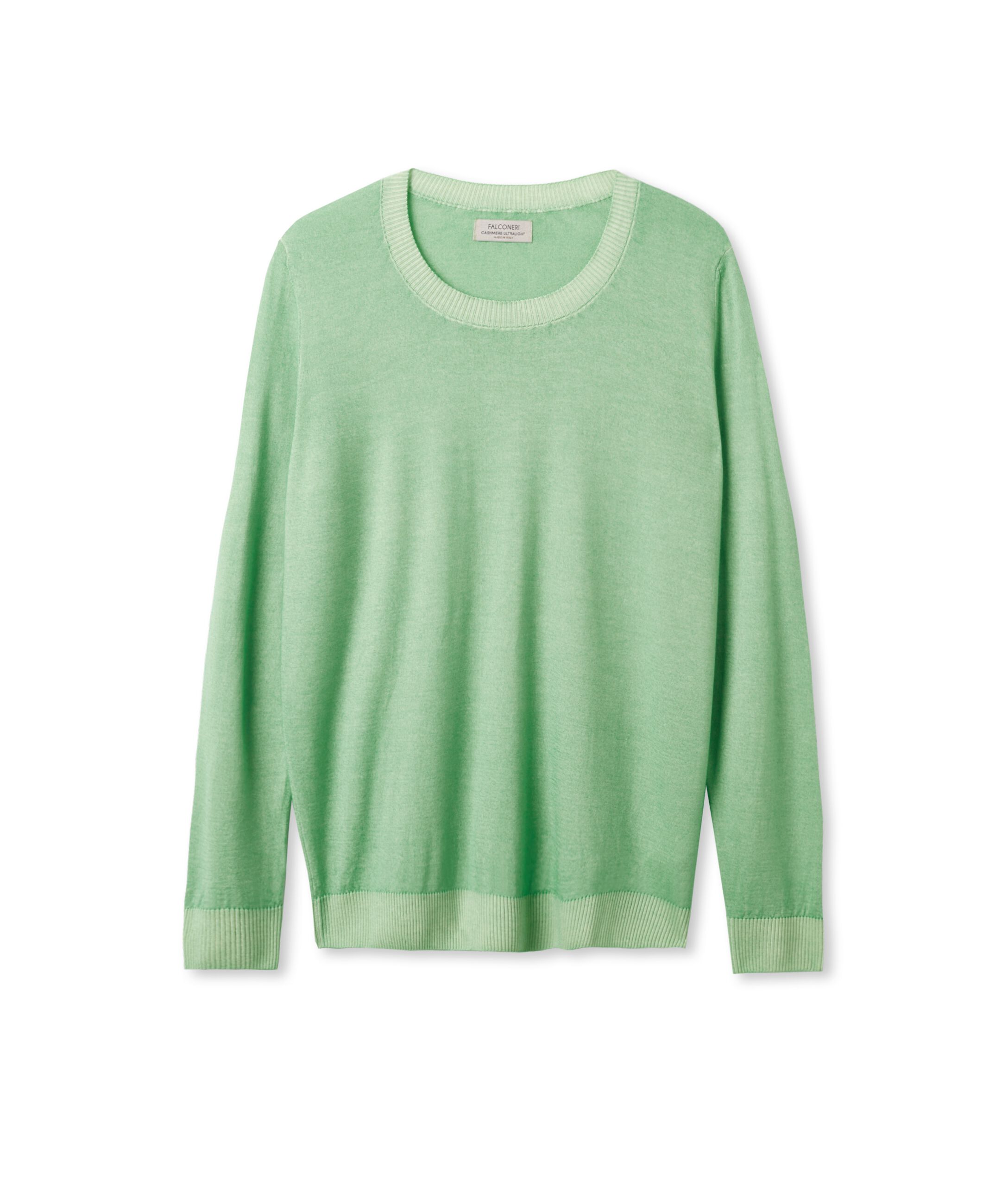 Pull à col bateau en Cachemire ultra-fin. Le bas et les poignets et le col présentent une finition côtelée. Coupe ample.